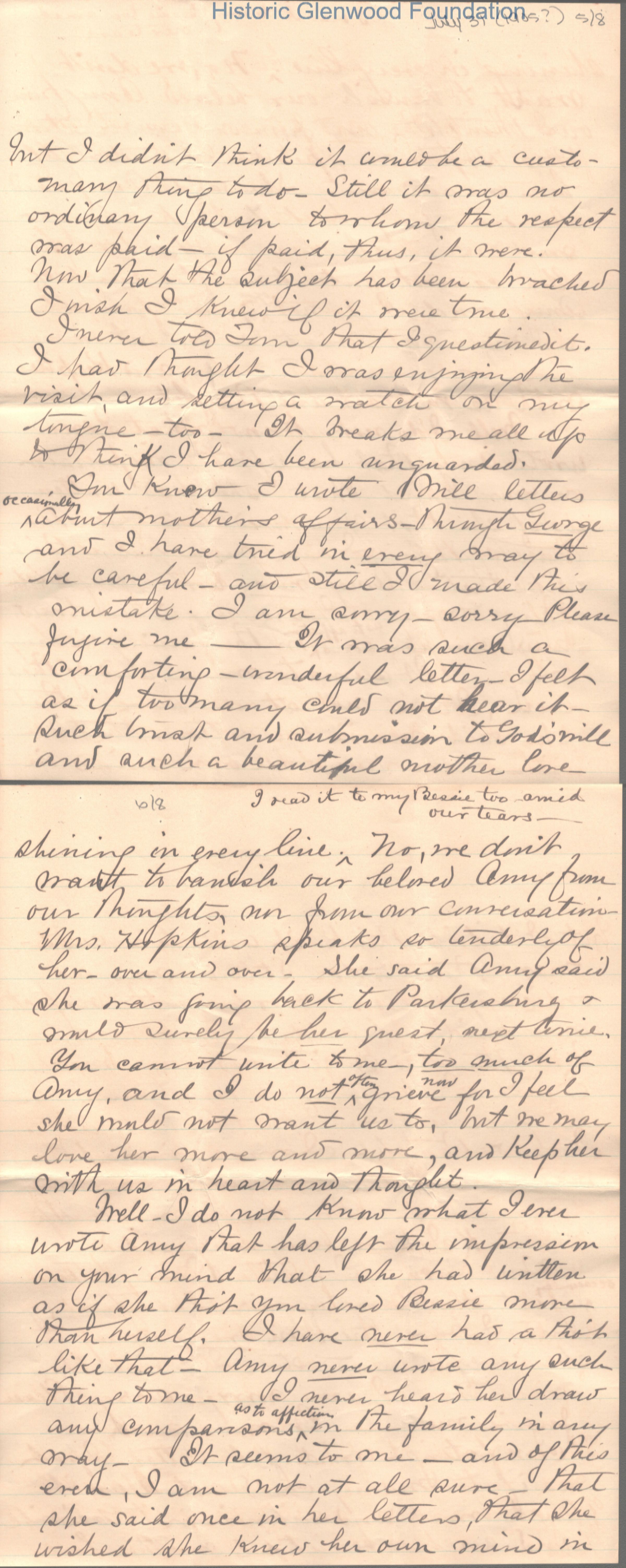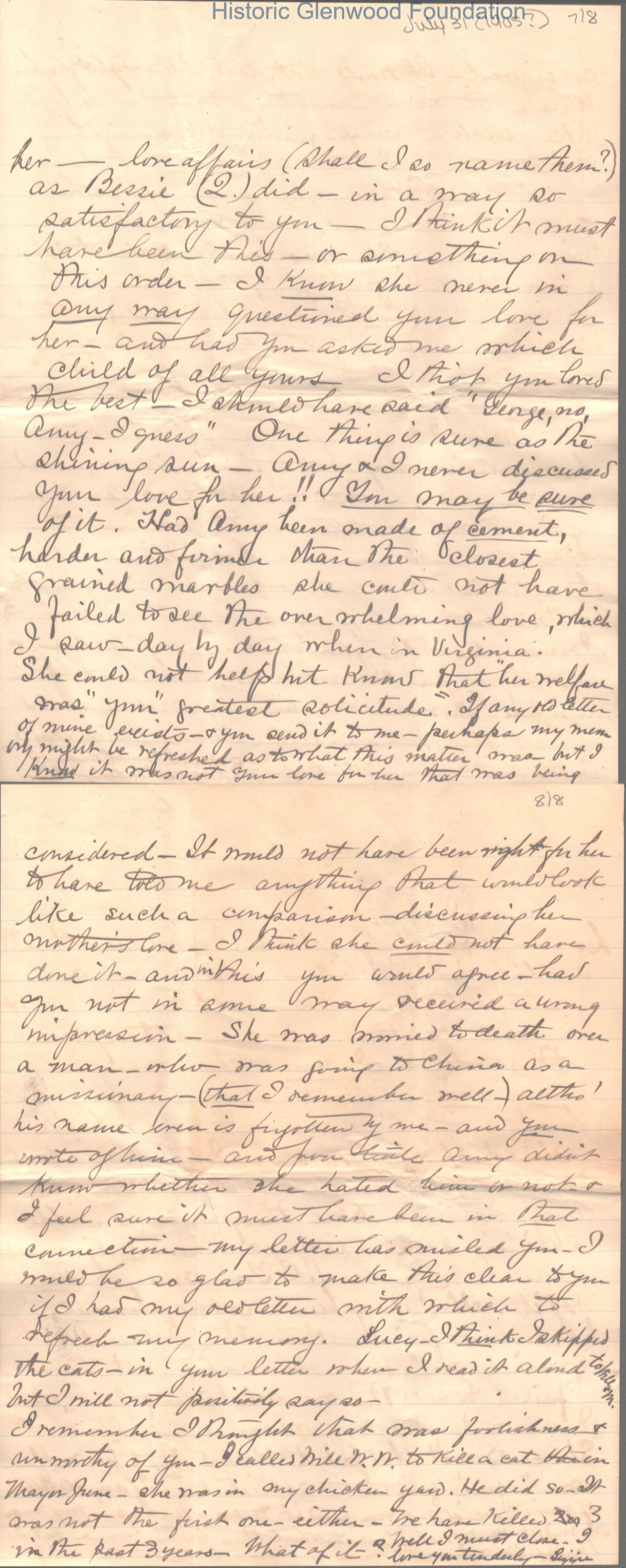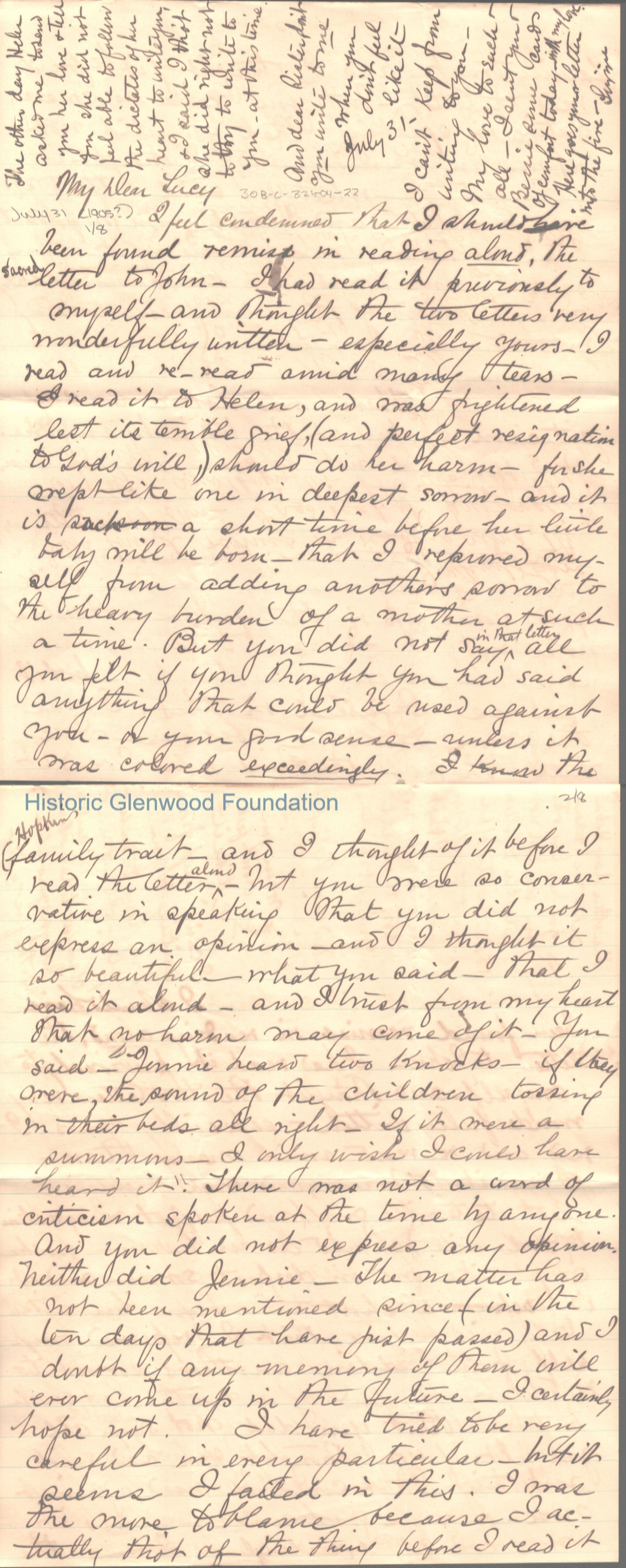 Lucy W. Summers from Elizabeth "Lizzie" W. Wickes; July 31, 1905