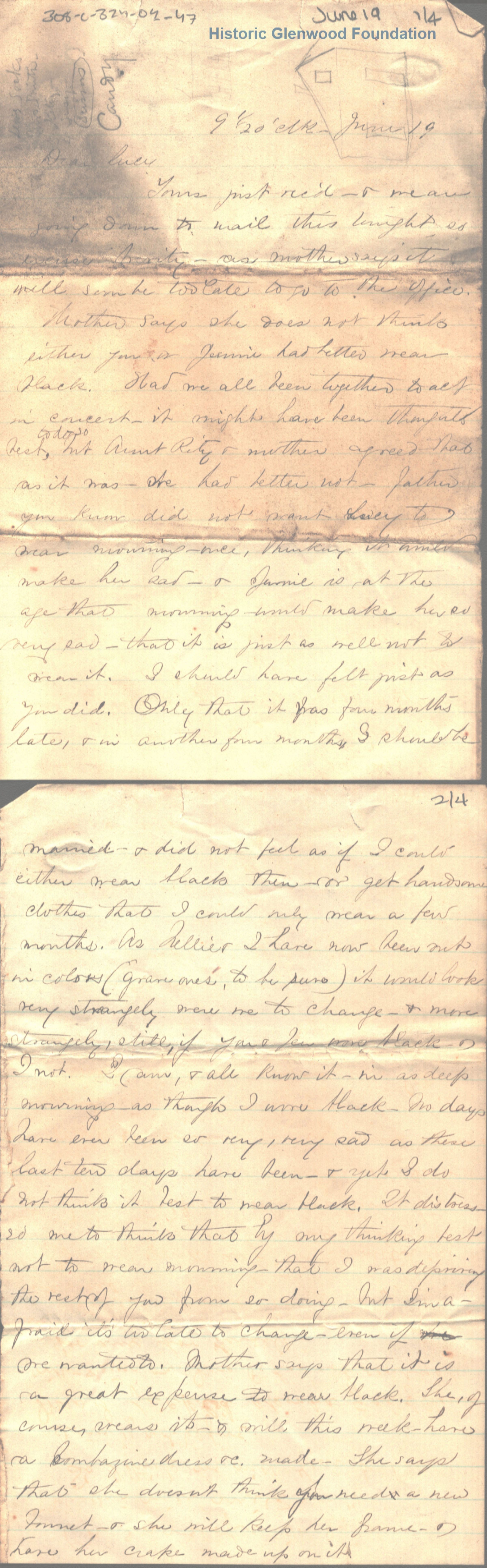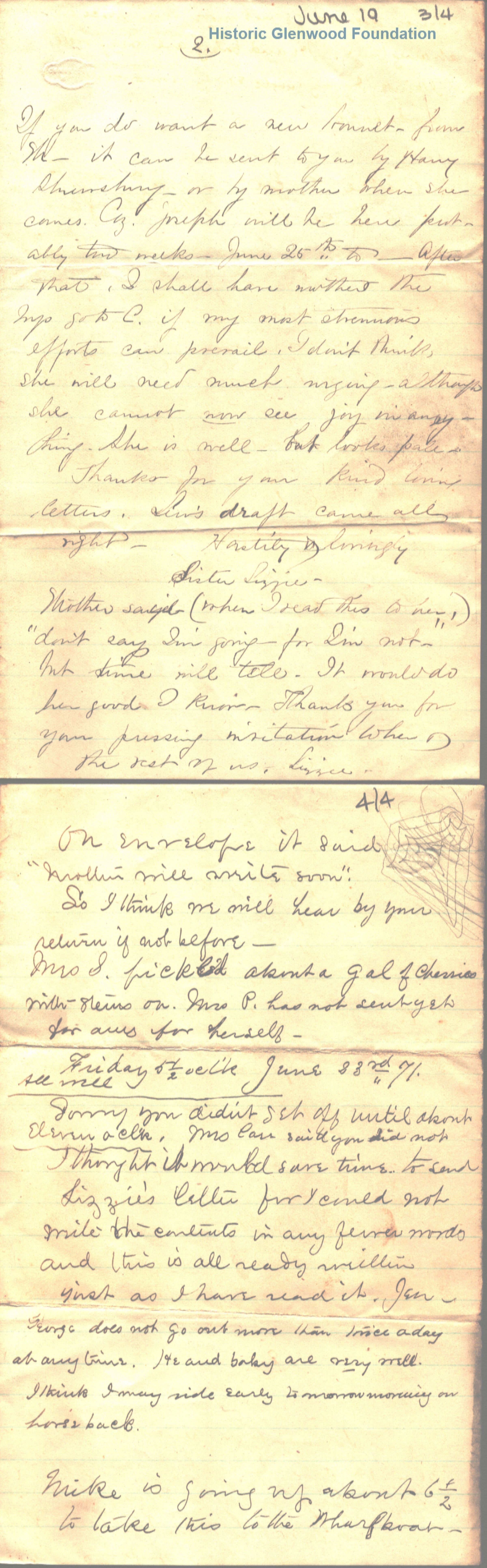 4-page letter to Lucy W. Summers from her sister, Elizabeth "Lizzie" W. Wickes
