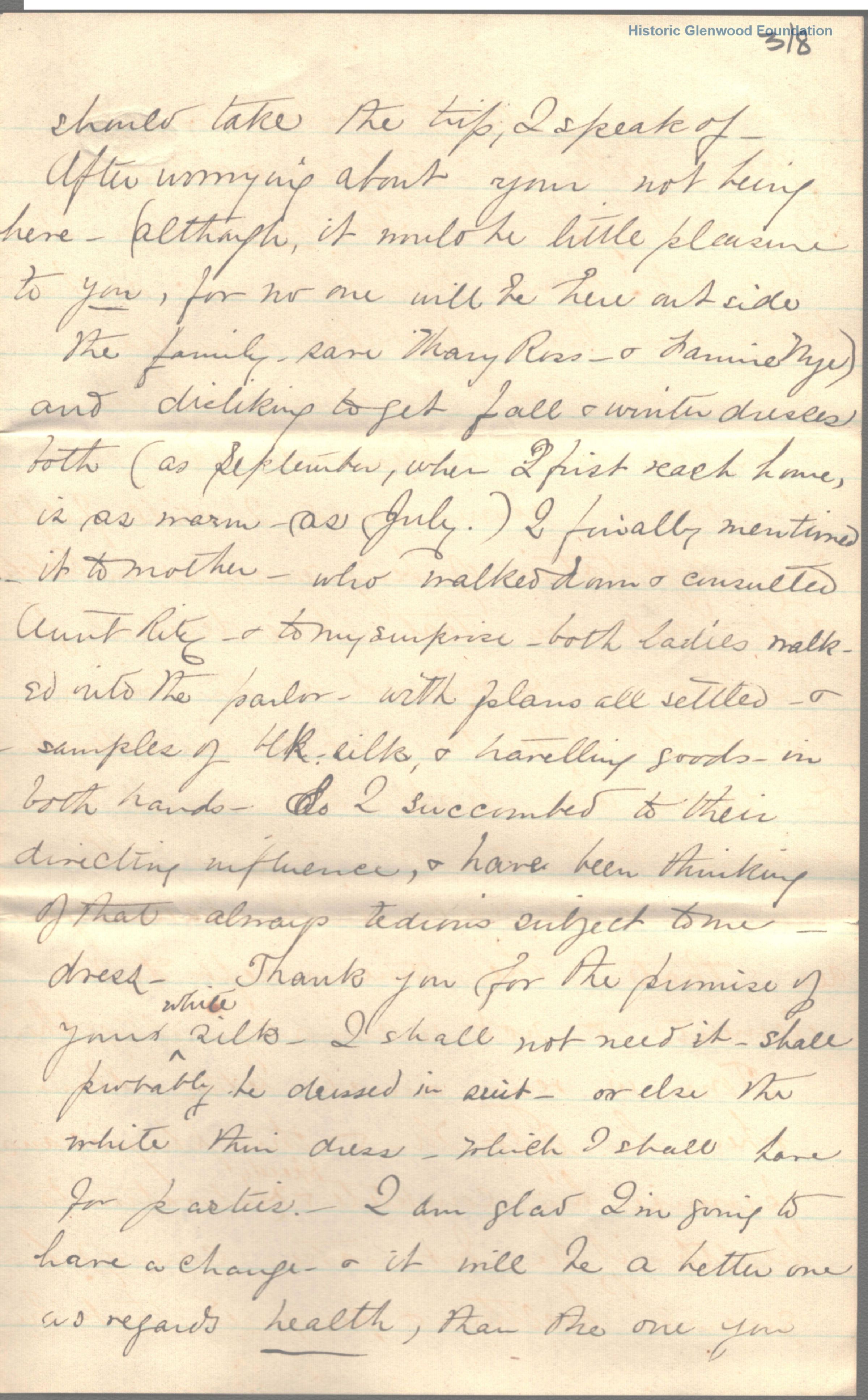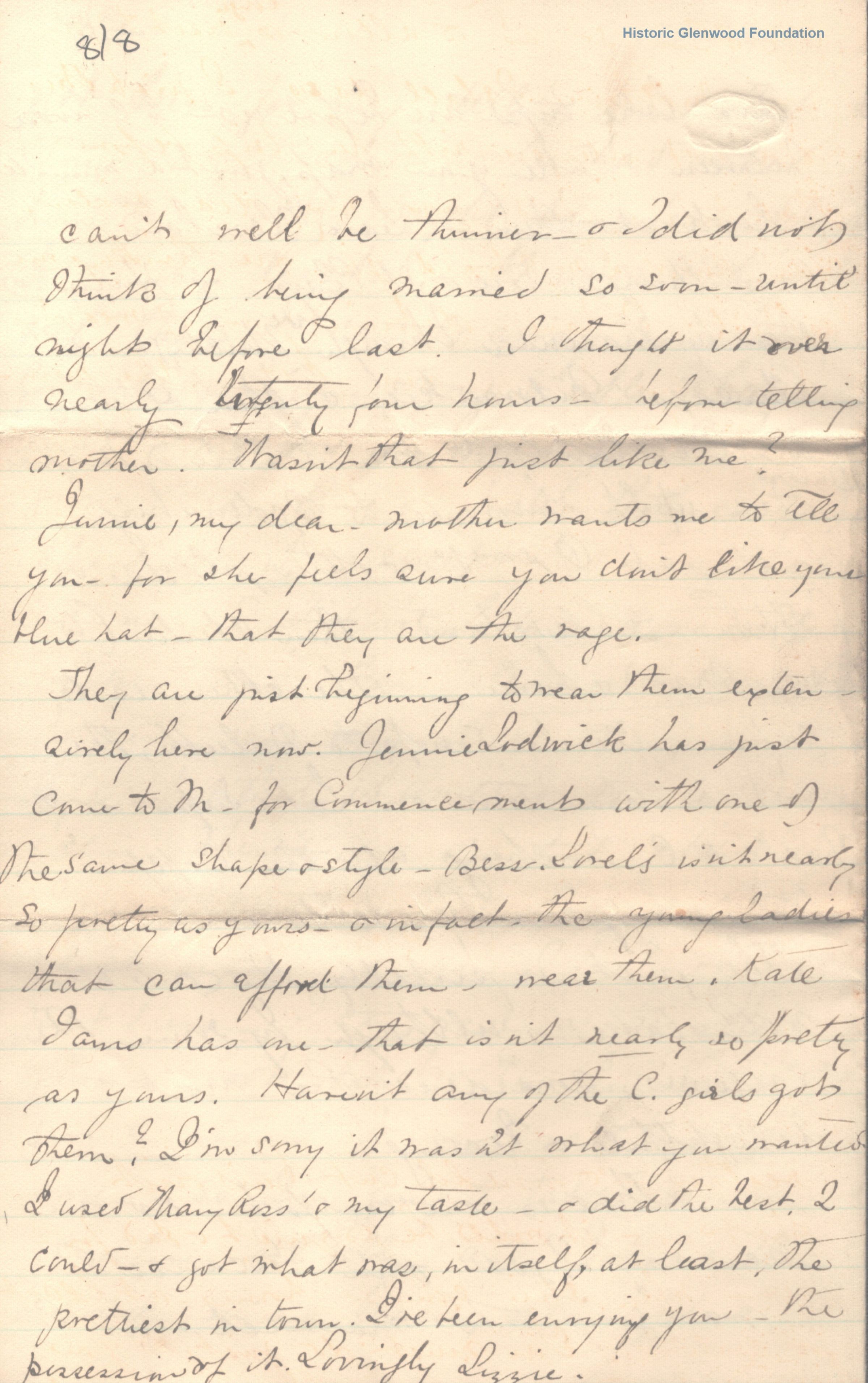 8-page letter to Lucy W. Summers from her sister, Elizabeth "Lizzie" W. Wickes