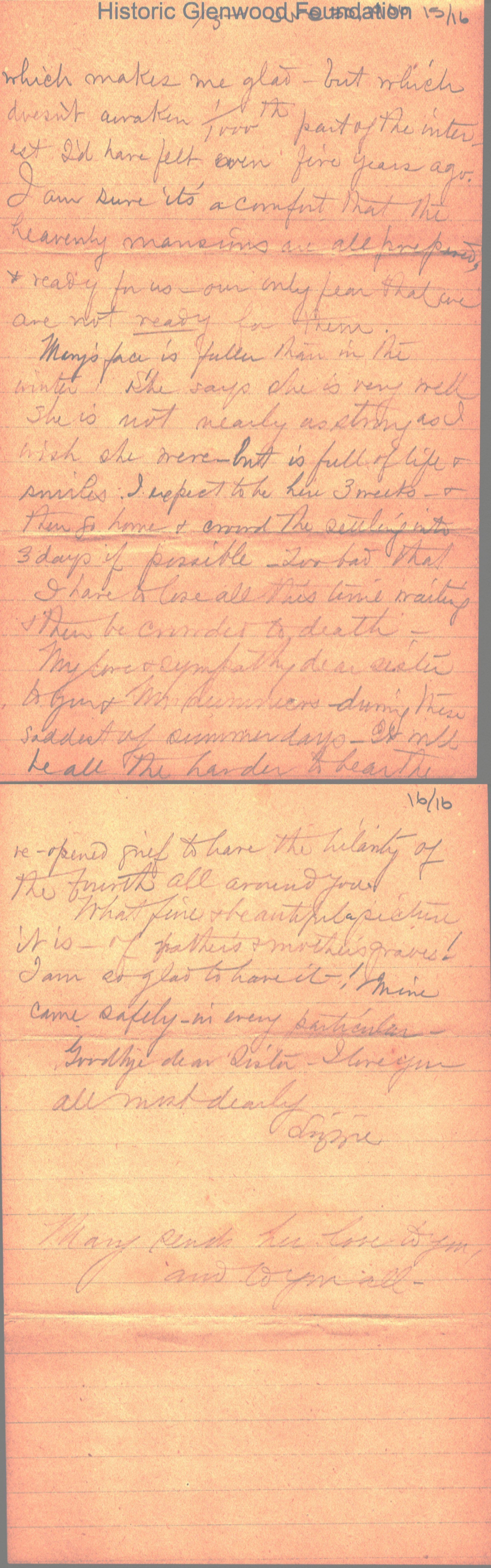 Lucy W. Summers from Elizabeth "Lizzie" W. Wickes; June 30, 1906