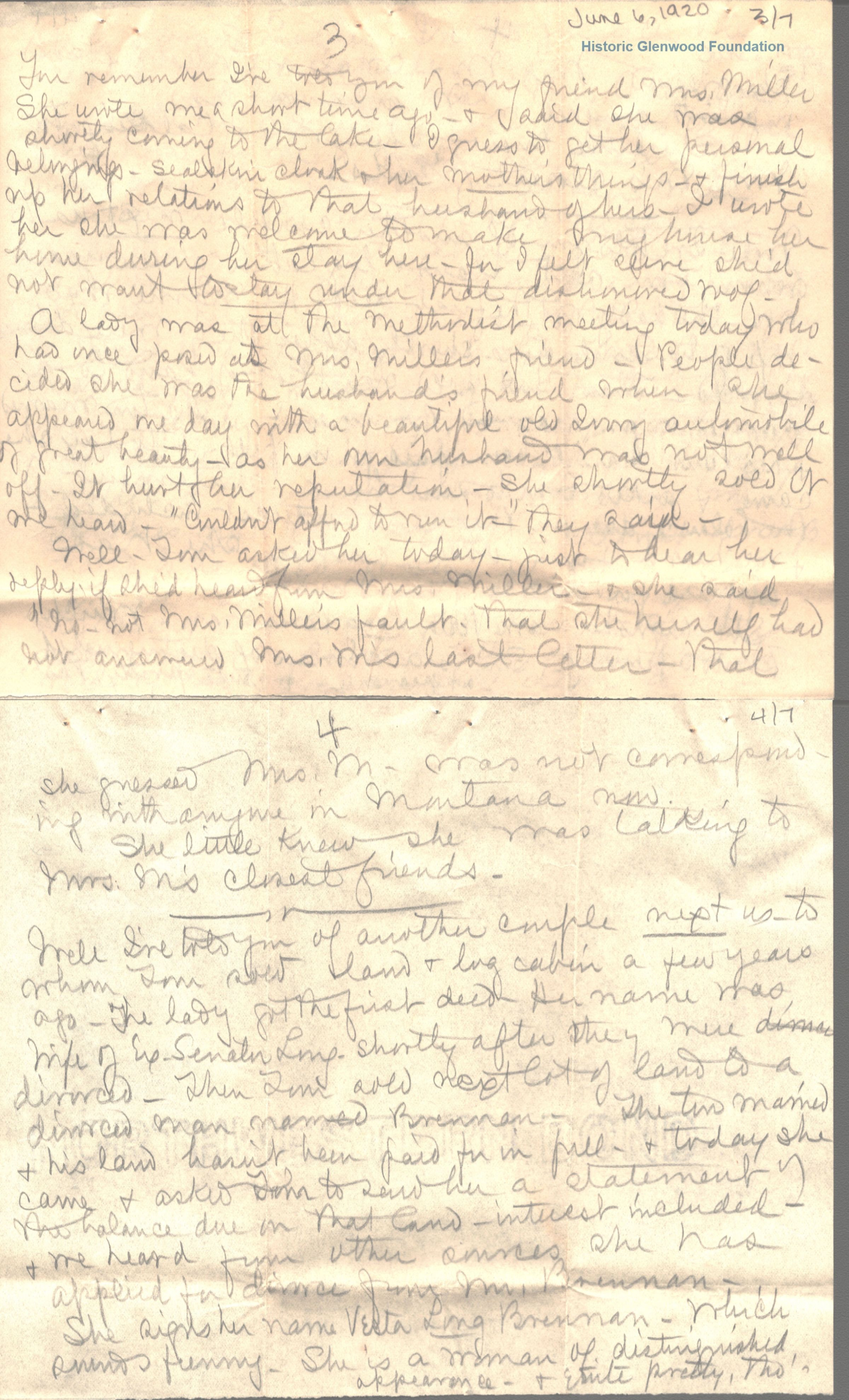 Lucy W. Summers from Elizabeth "Lizzie" W. Wickes; June 6, 1920