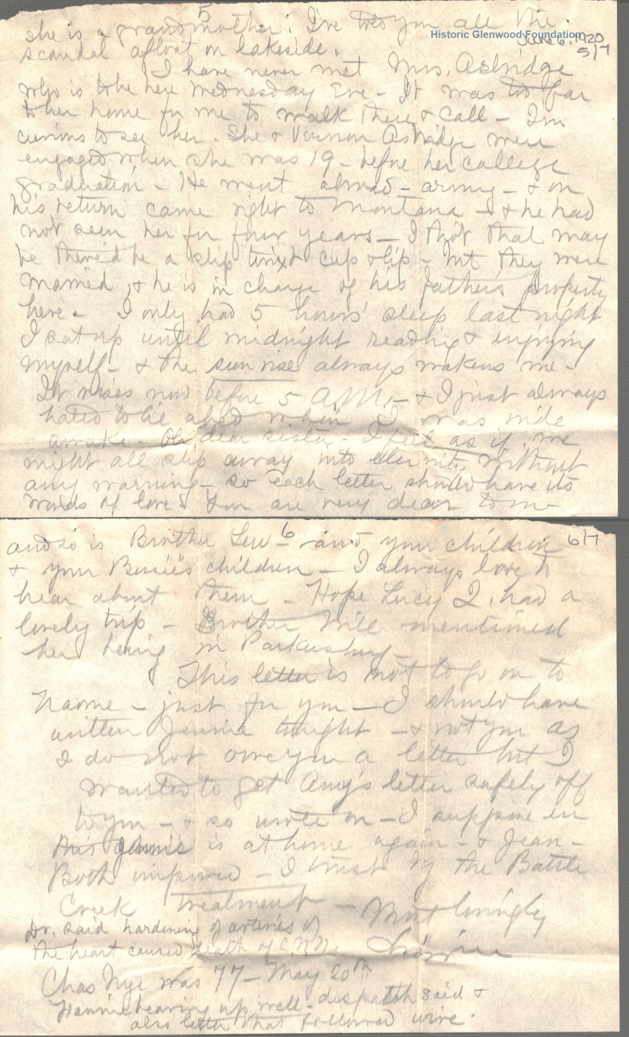 Lucy W. Summers from Elizabeth Lizzie W. Wickes; June 6, 1920