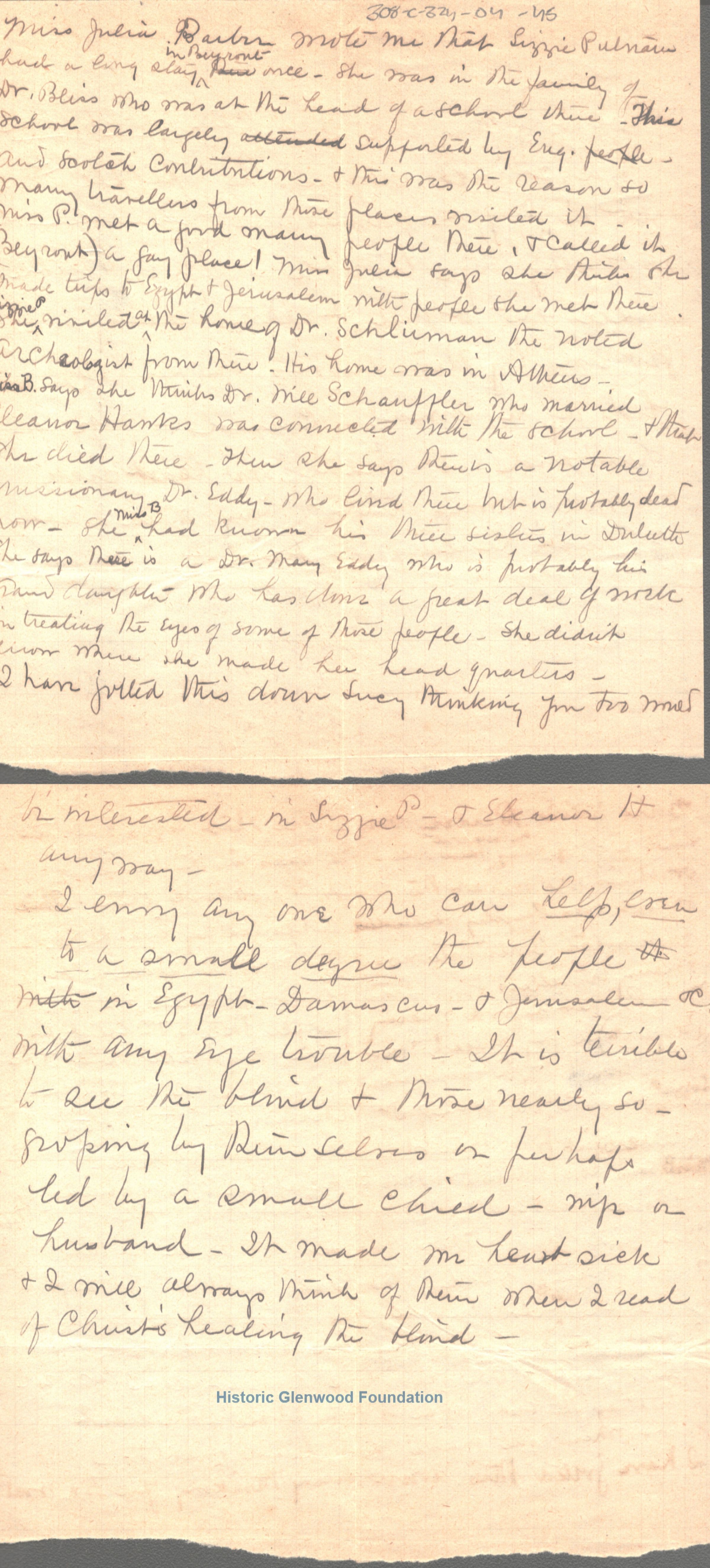 2-pages of an incomplete letter to Lucy W. Summers from her sister, Elizabeth "Lizzie" W. Wickes