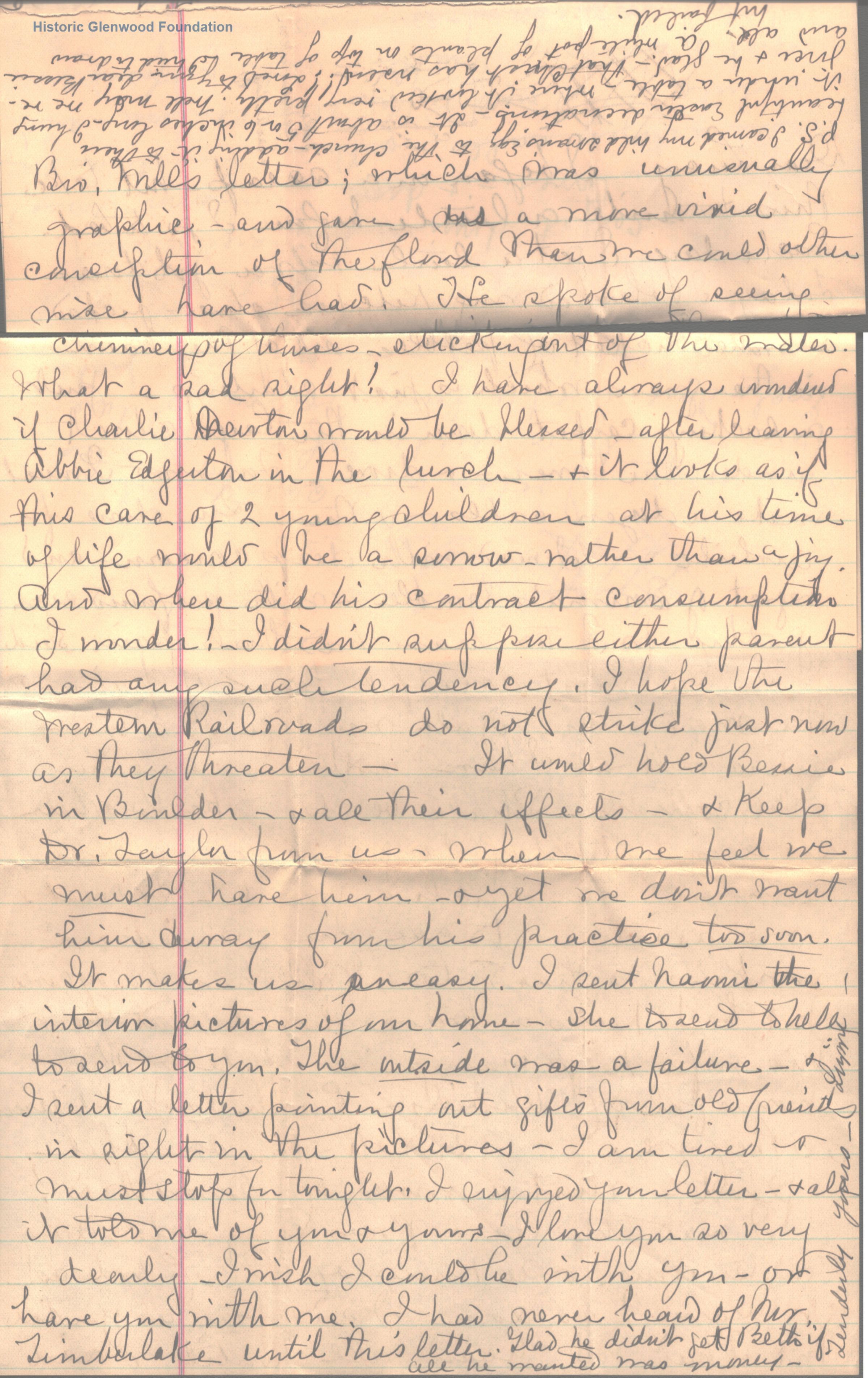 2-page letter to Lucy W. Summers from her sister, Elizabeth "Lizzie" W. Wickes