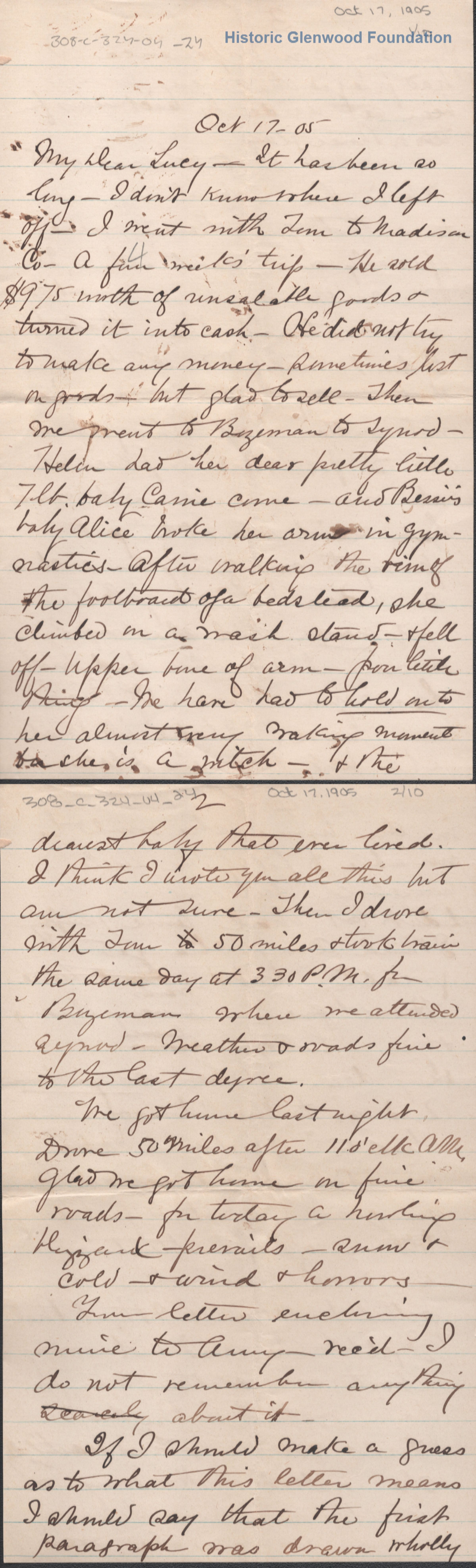 Lucy W. Summers from Elizabeth Lizzie W. Wickes; October 17, 1905