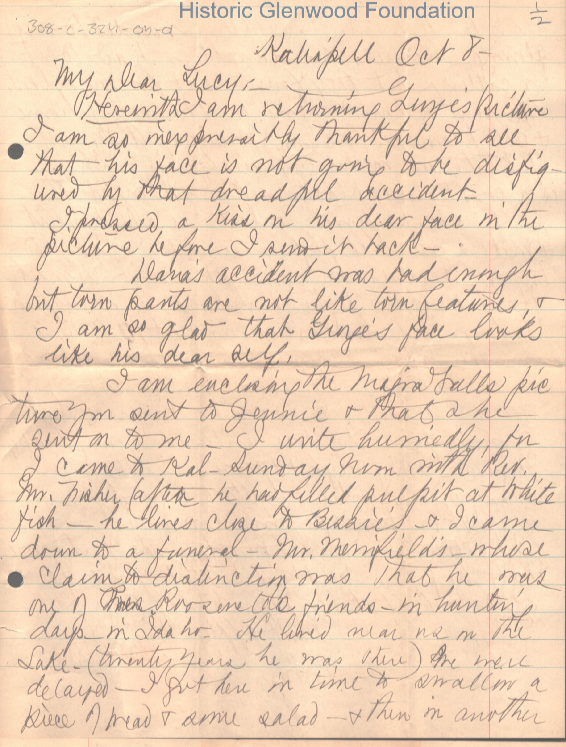 Lucy W. Summers from Elizabeth Lizzie W. Wickes; October 8, no year