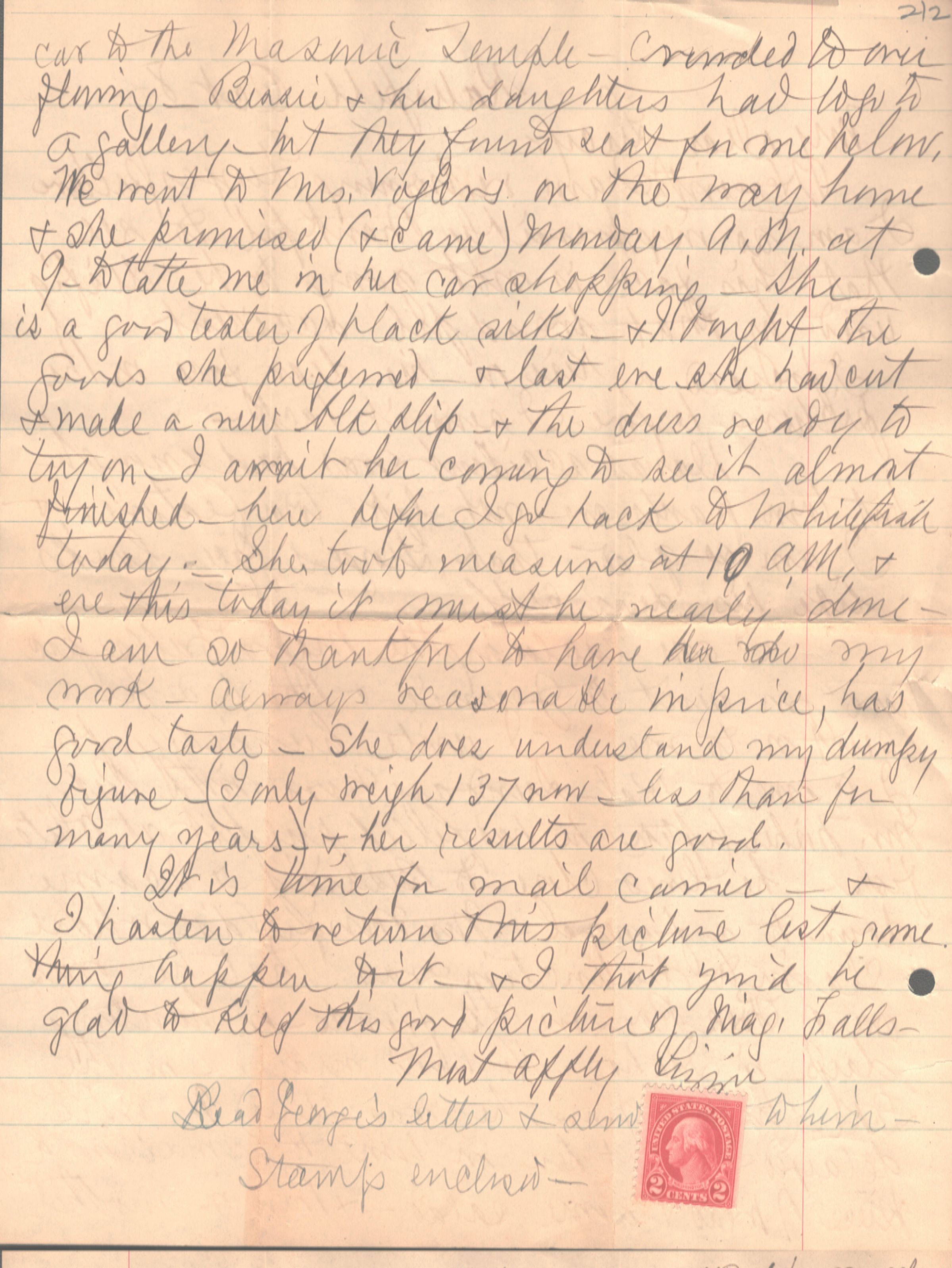2-page letter to Lucy W. Summers from her sister Elizabeth "Lizzie" W. Wickes