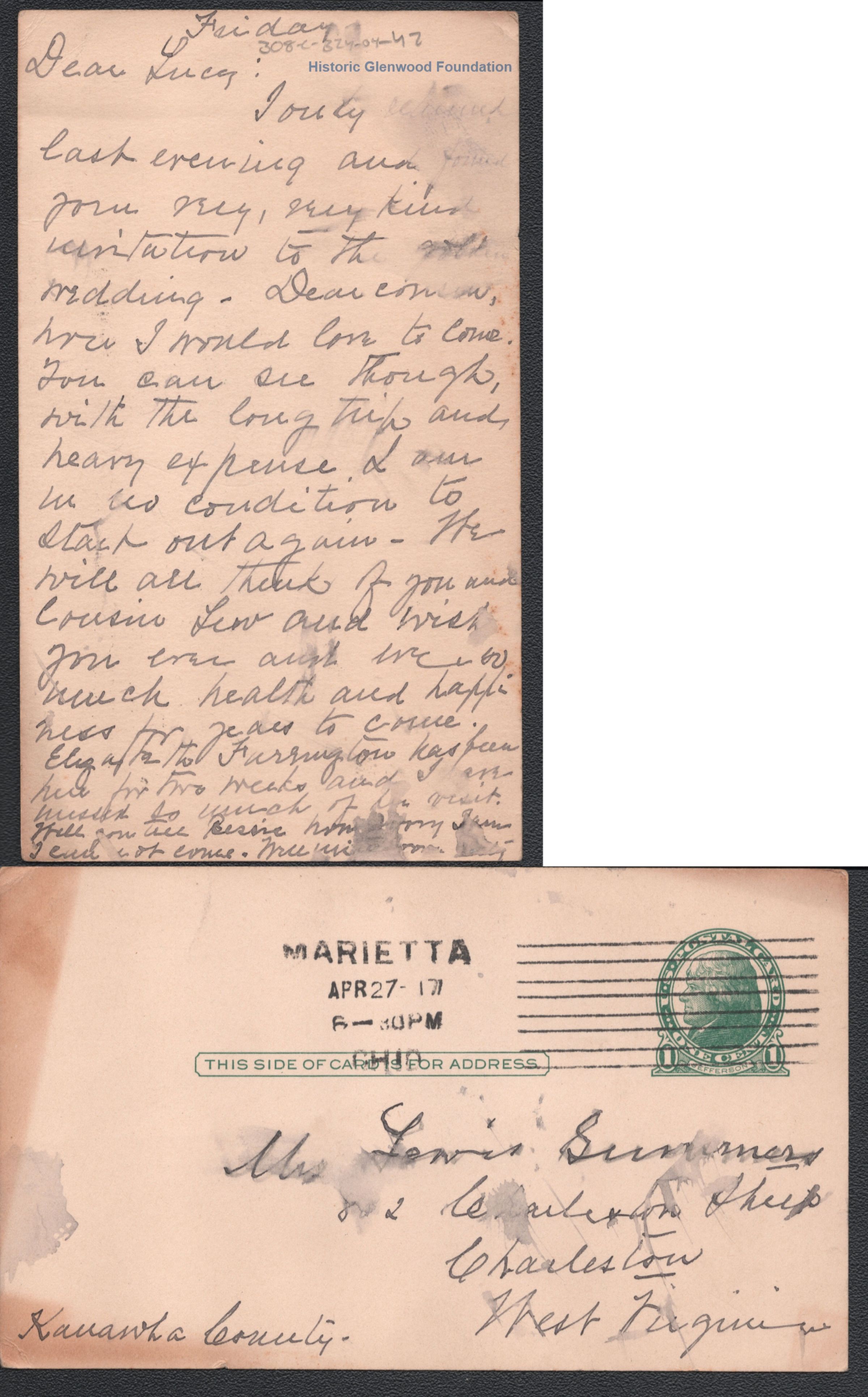 Lucy W. Summers from Elizabeth Lizzie W. Wickes; postmarked April 27, 1917