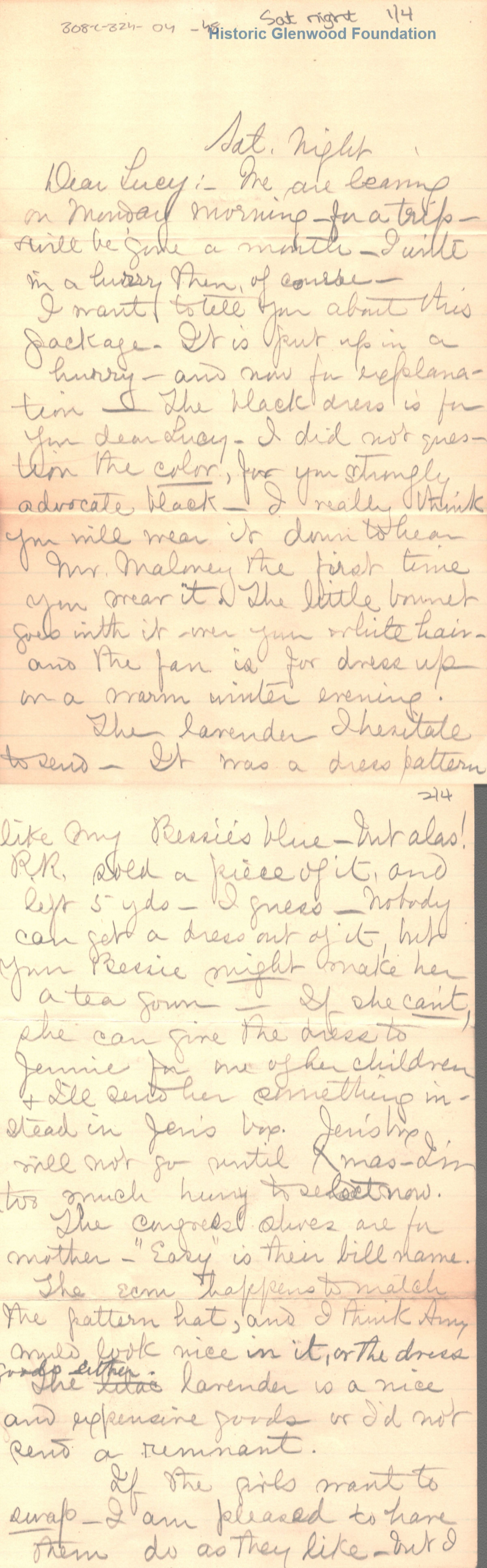 Lucy W. Summers from Elizabeth "Lizzie" W. Wickes; "Saturday night"