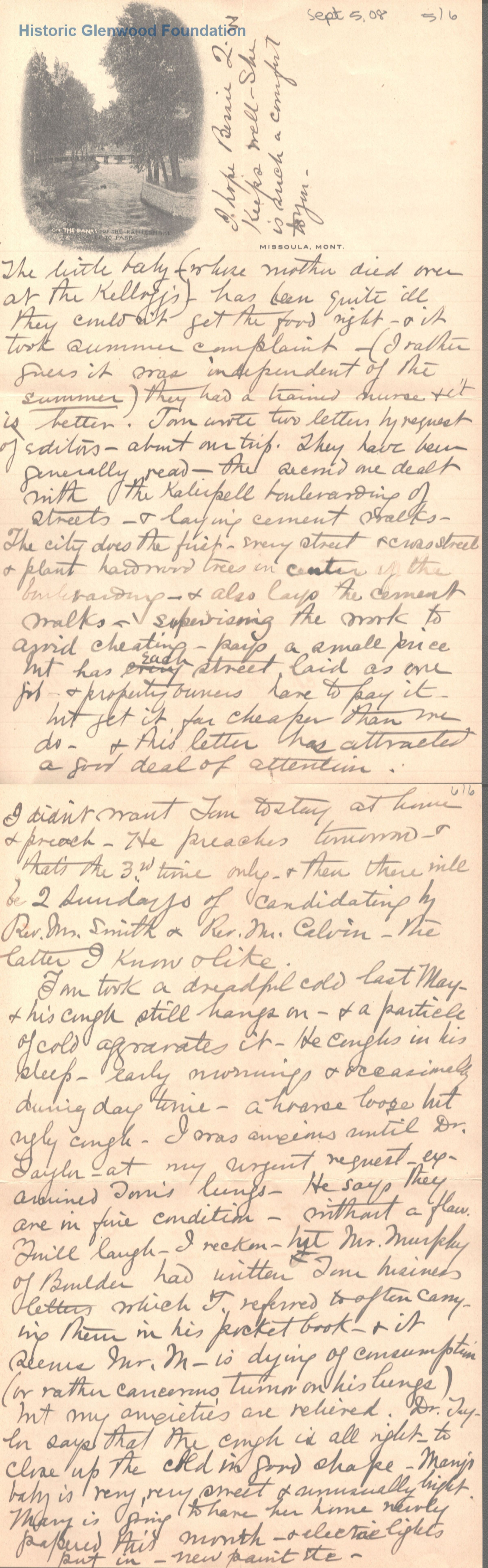 Lucy W. Summers from Elizabeth "Lizzie" W. Wickes; September 5, 1908