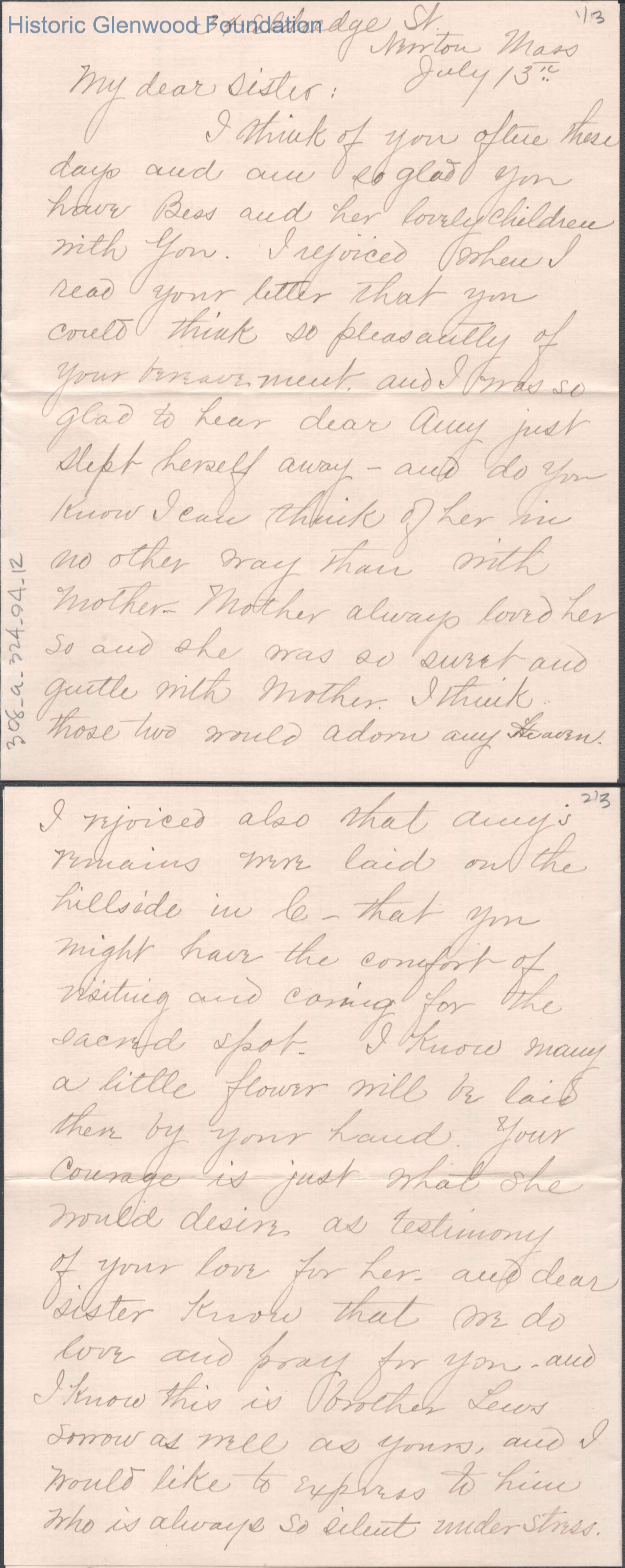 Three-page letter to Lucy W. Summers from sister Ellen W. Follett, unknown year ("July 13th" is noted).Creator