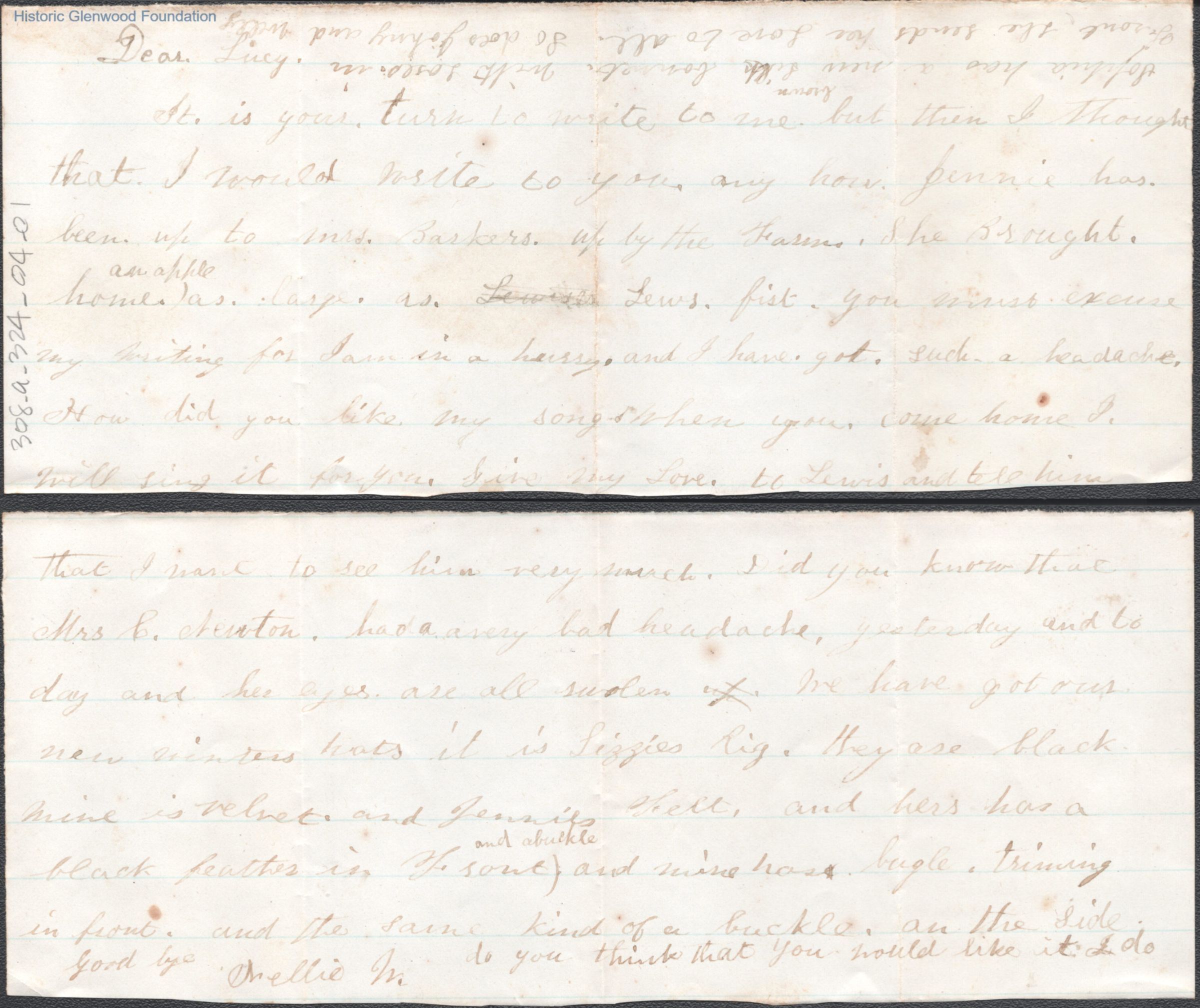 Two-page letter to Lucy W. Summers from sister Ellen W. Follett, no date.
