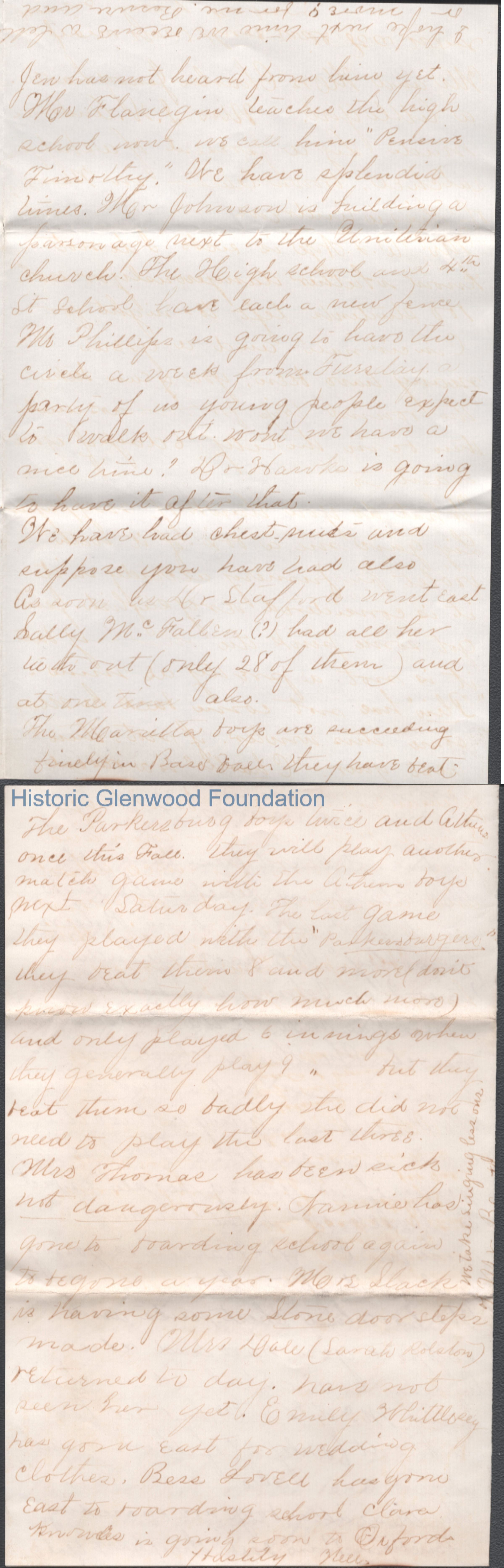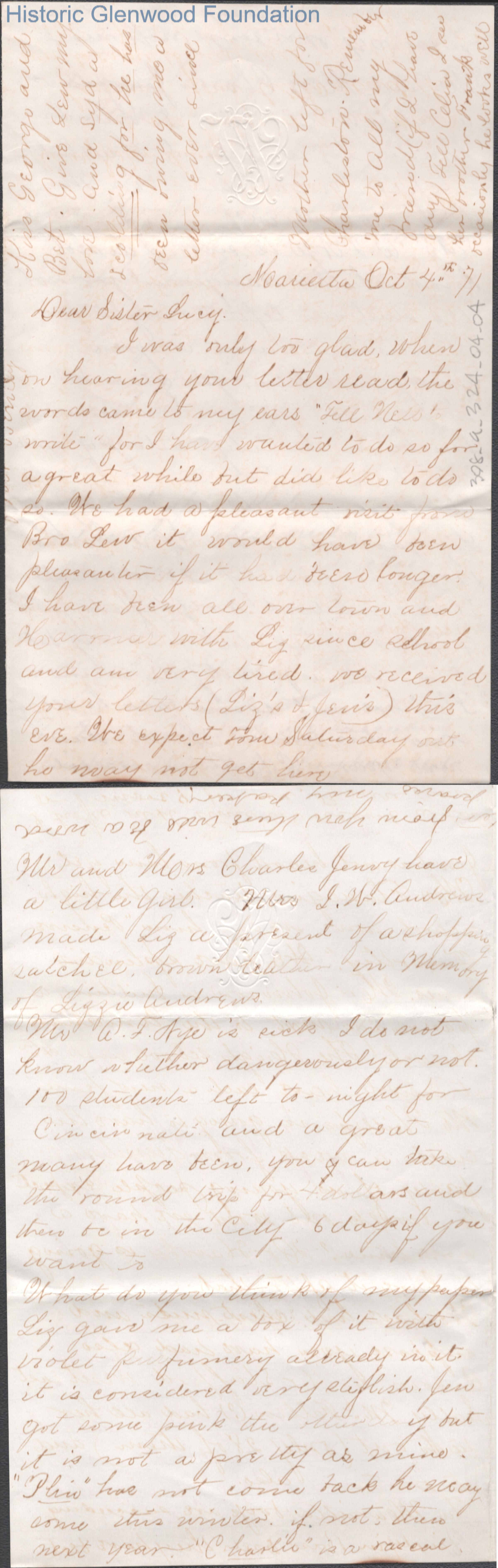 Four-page letter to Lucy W. Summers from sister Ellen W. Follett, Oct 4, 1871.