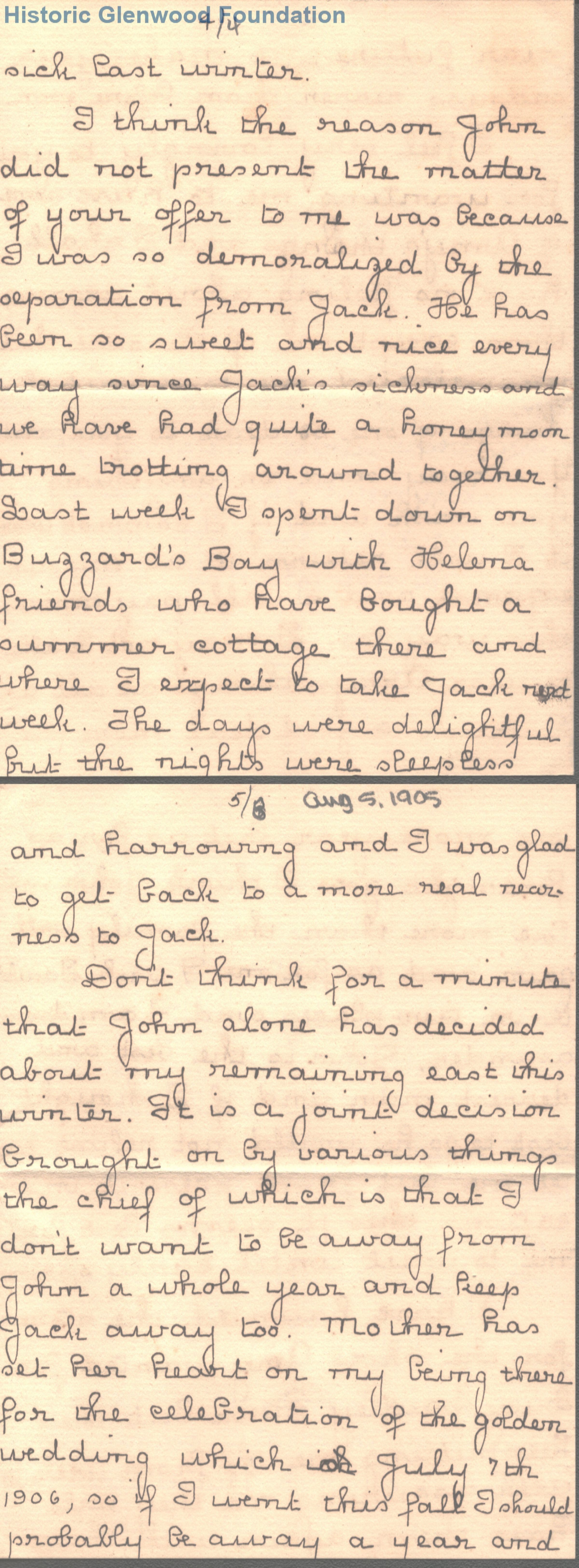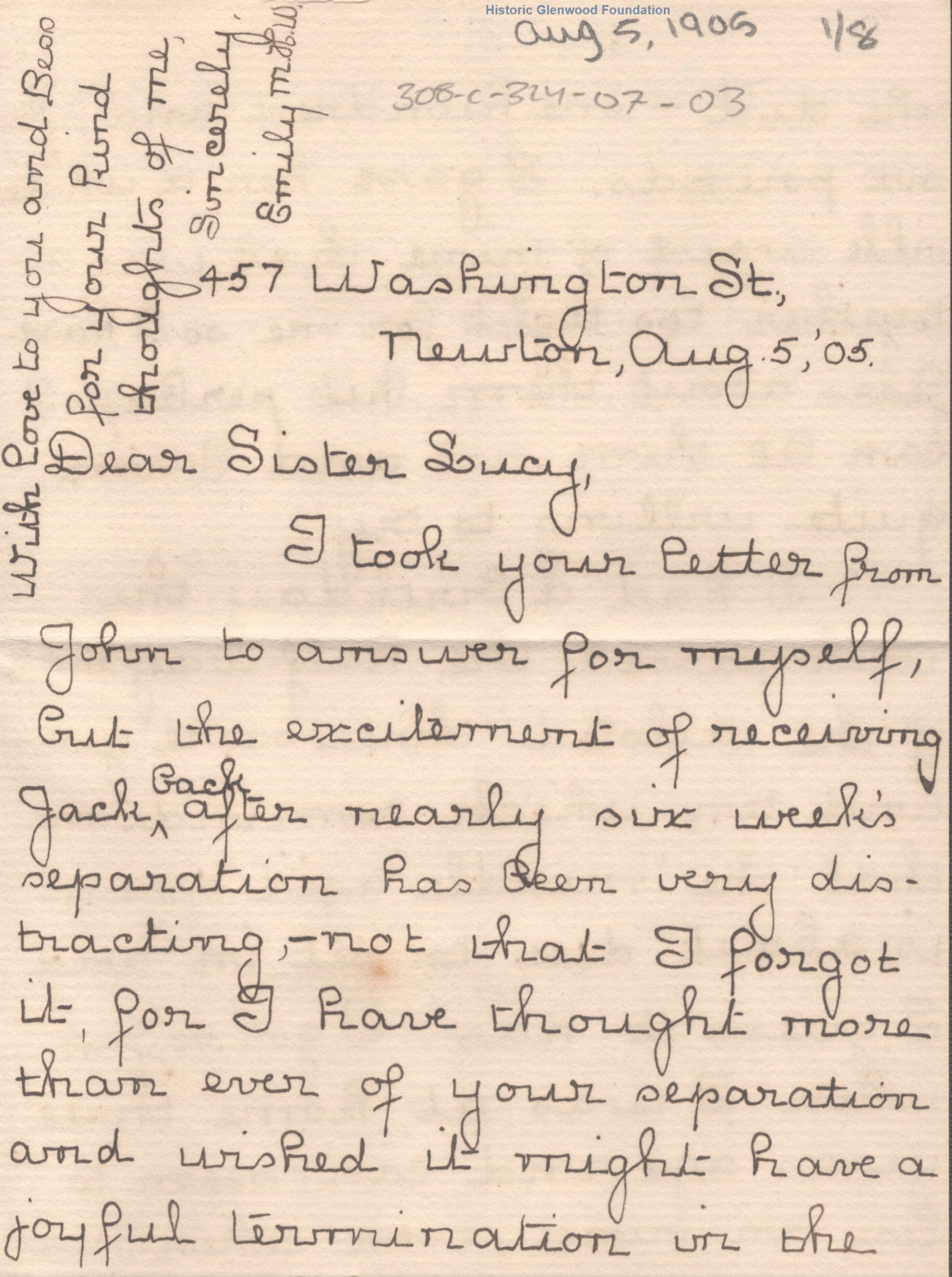 Lucy W. Summers from Emily H. Woodbridge; August 5, 1905