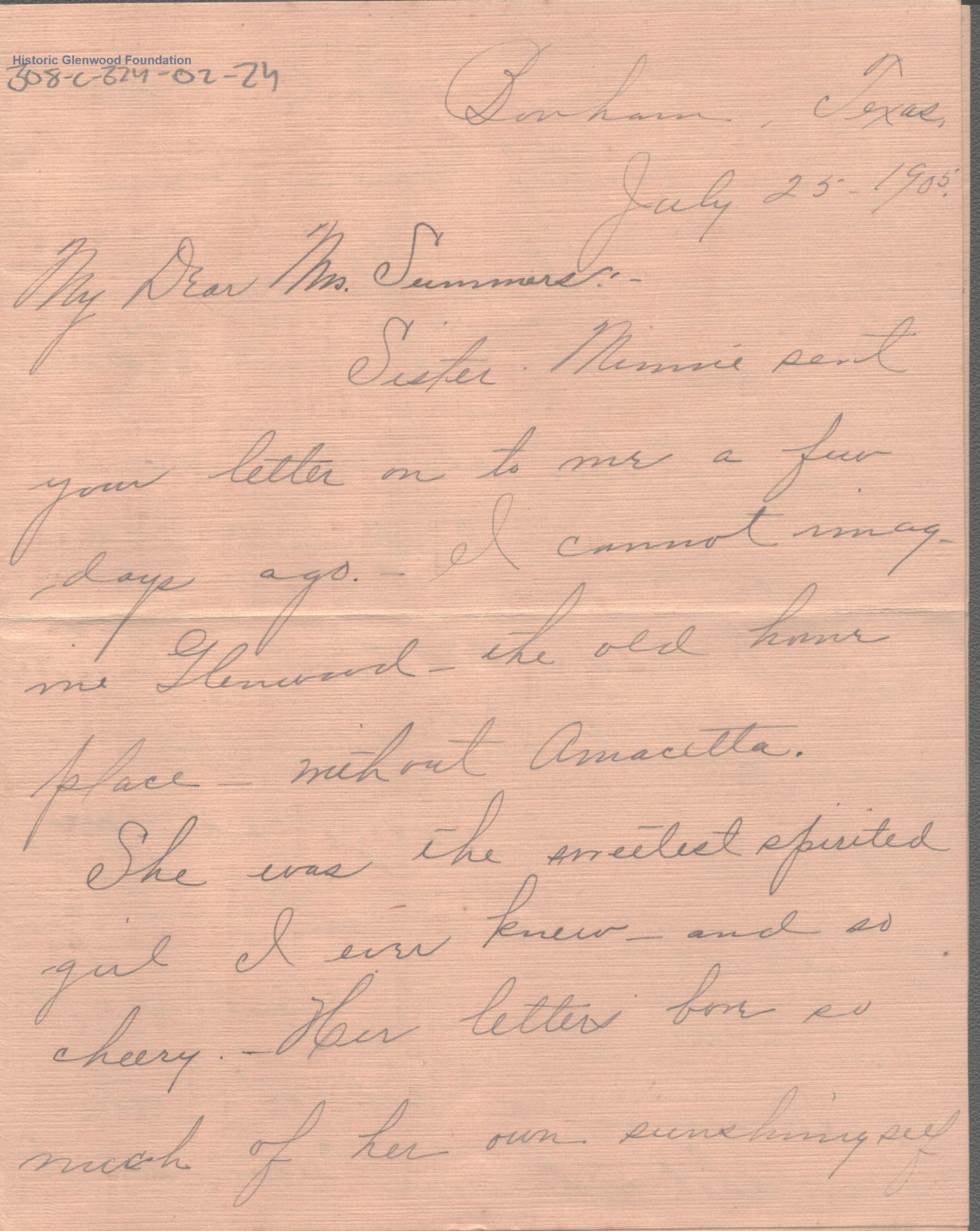 Lucy W. Summers from Fannie Baird Spivy; July 25, 1905