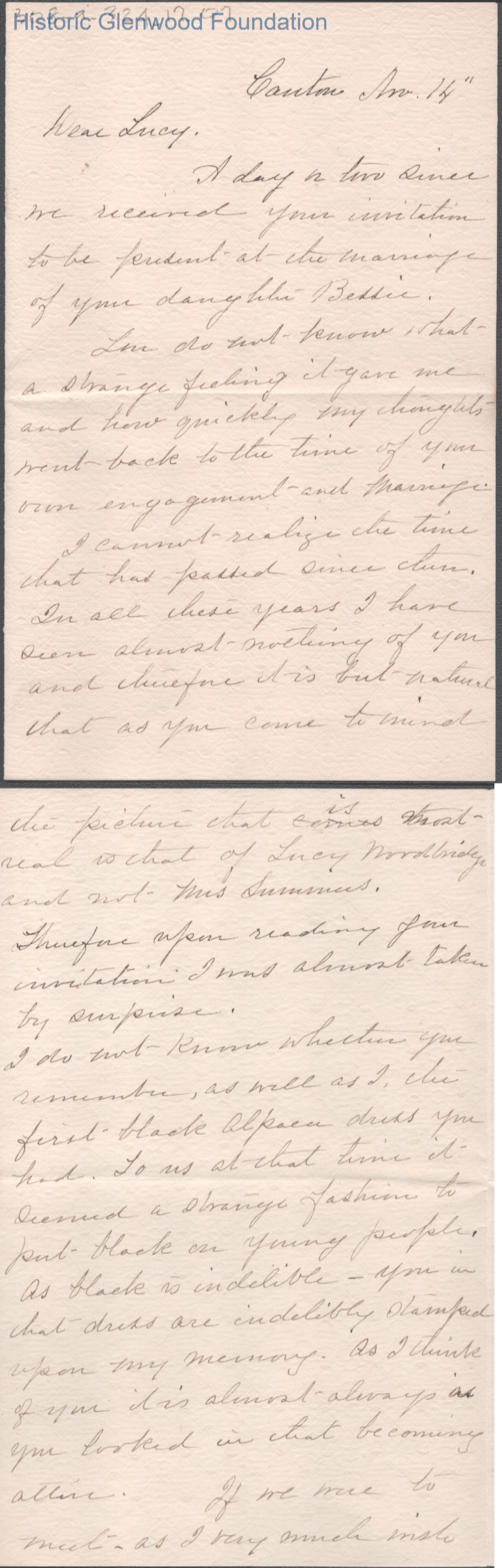 Four-page letter to Lucy W. Summers from Frances W. "Fannie" Nye, unknown year ("Nov. 14th" is noted).