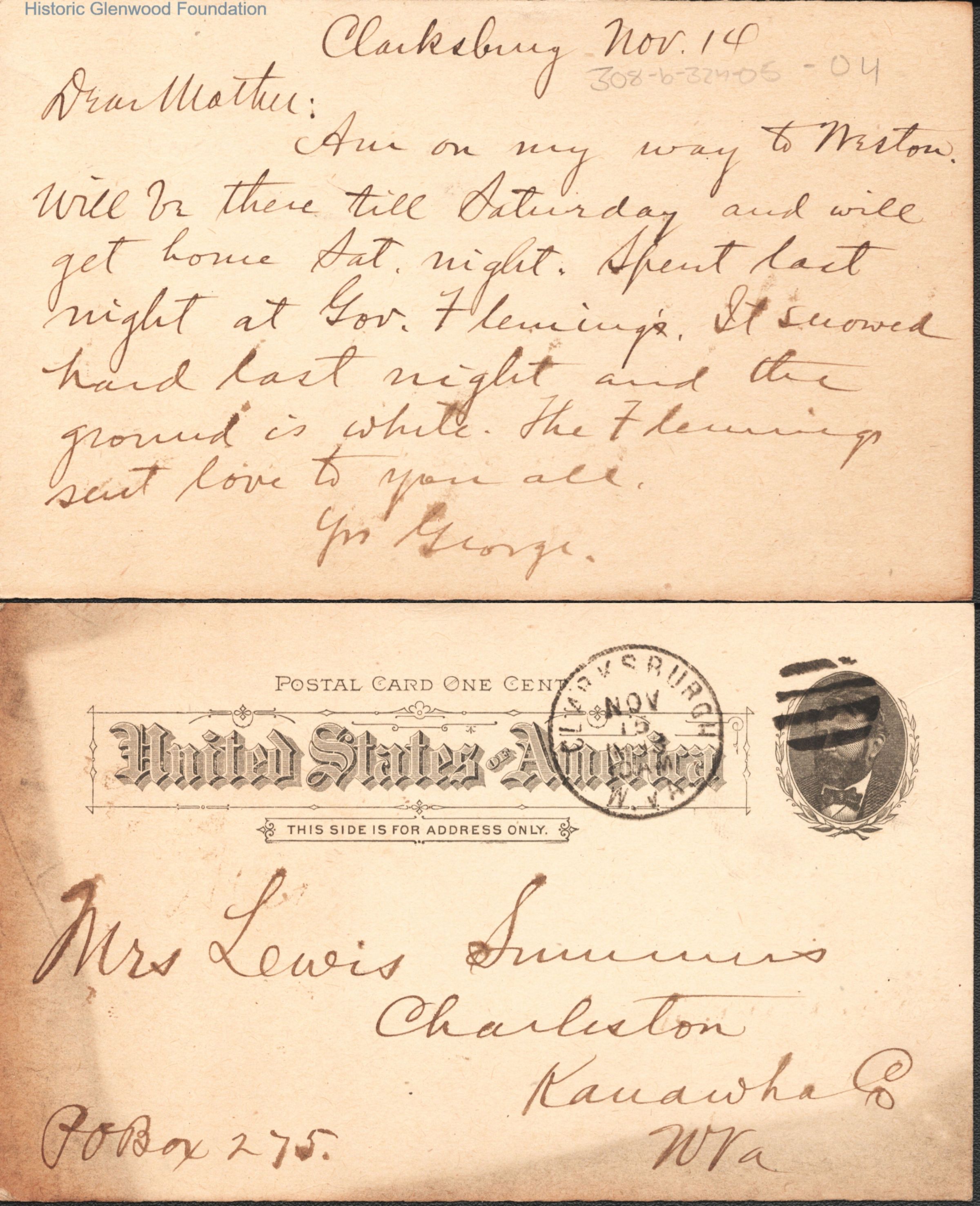 One page letter to Lucy Summers from her son George Summers.