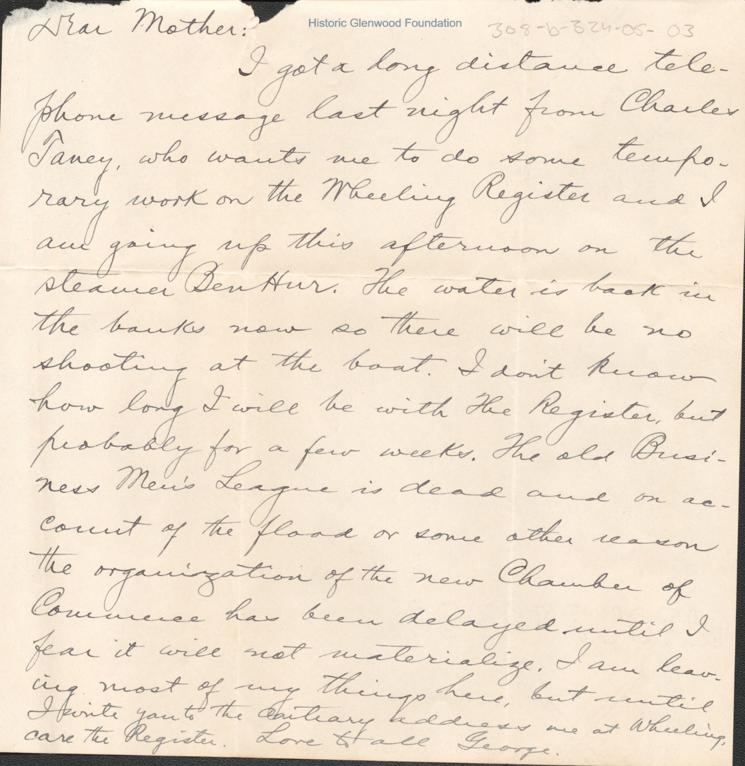 One page letter to Lucy Summers from her son George Summers.