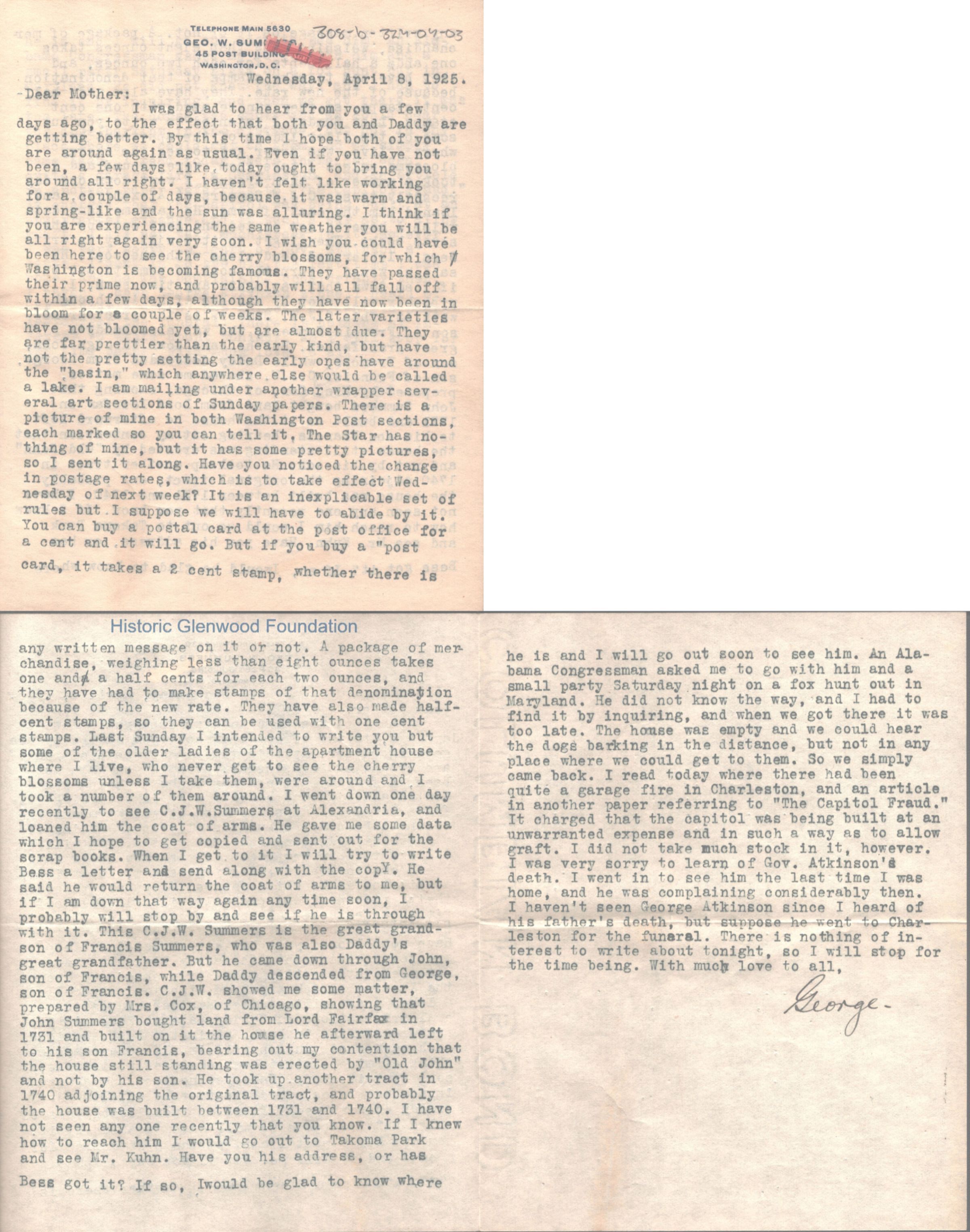 Lucy W. Summers from George W. Summers, April 8, 1925Entry/Object ID