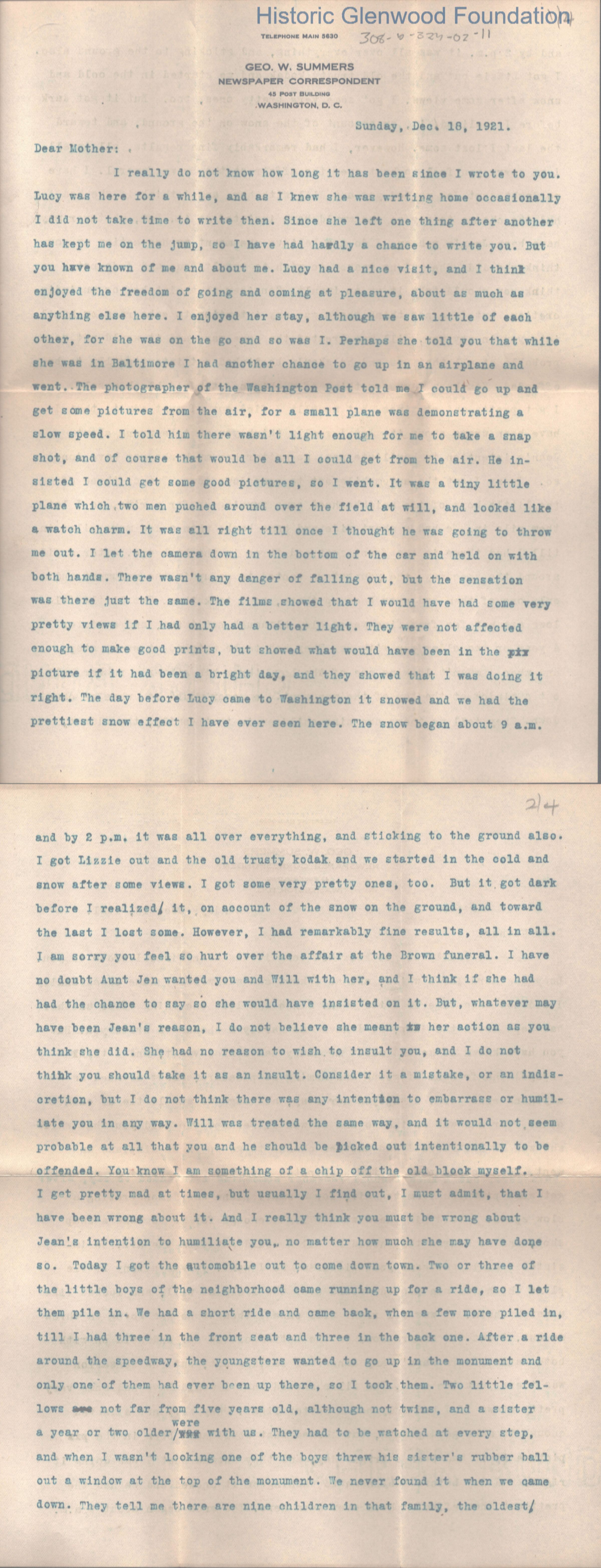 Lucy W. Summers from George W. Summers, December 18, 1921Entry/Object ID