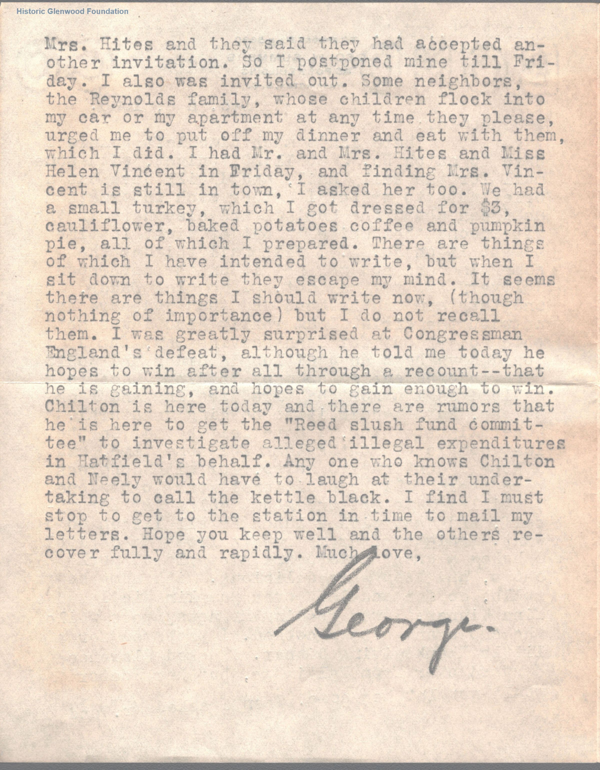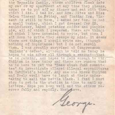 2-page typewritten letter to Lucy W. Summers from her son George W. Summers
