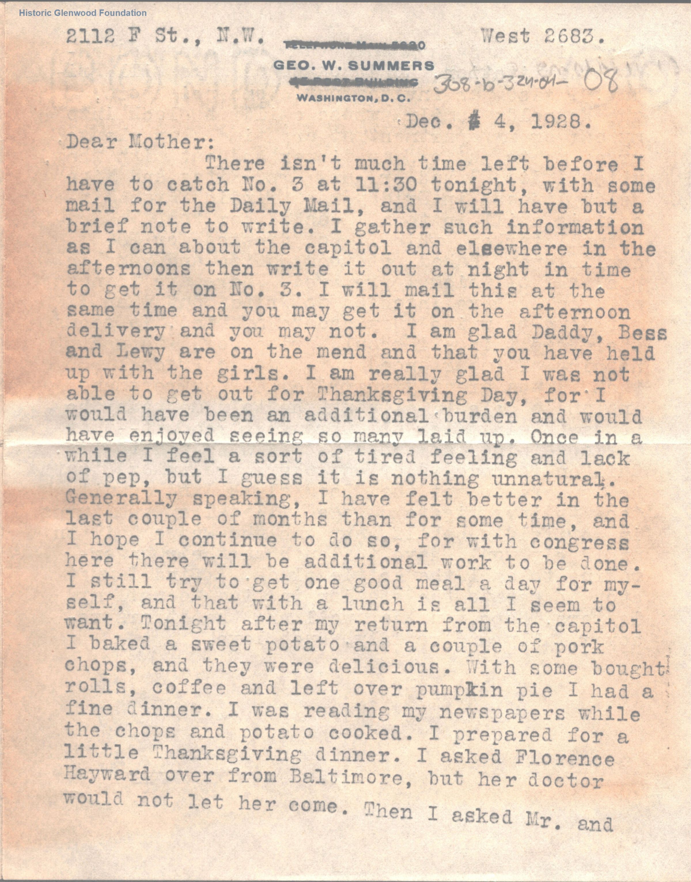 Lucy W. Summers from George W. Summers; December 4, 1928