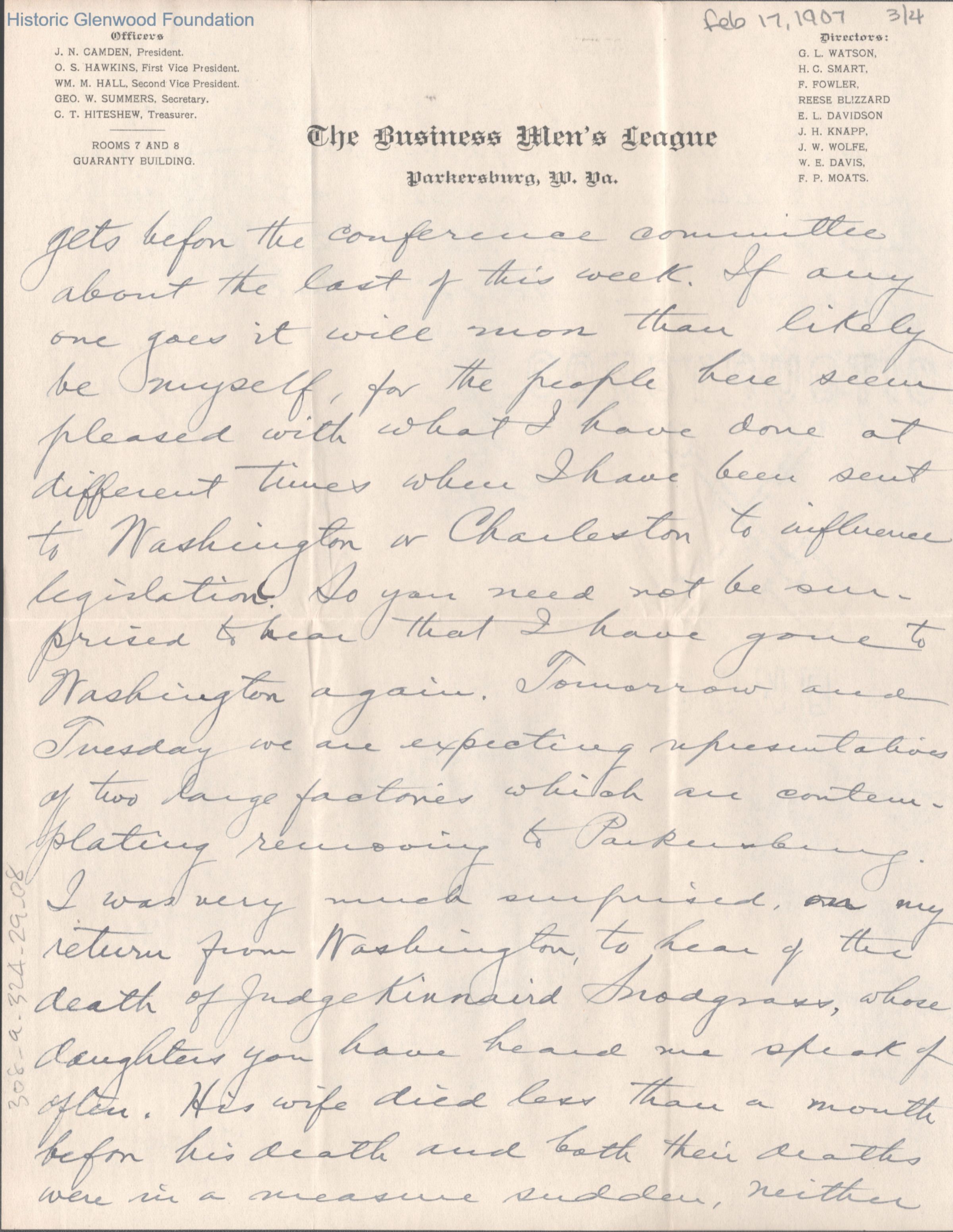 Lucy W. Summers from George W. Summers, Feb 17, 1907