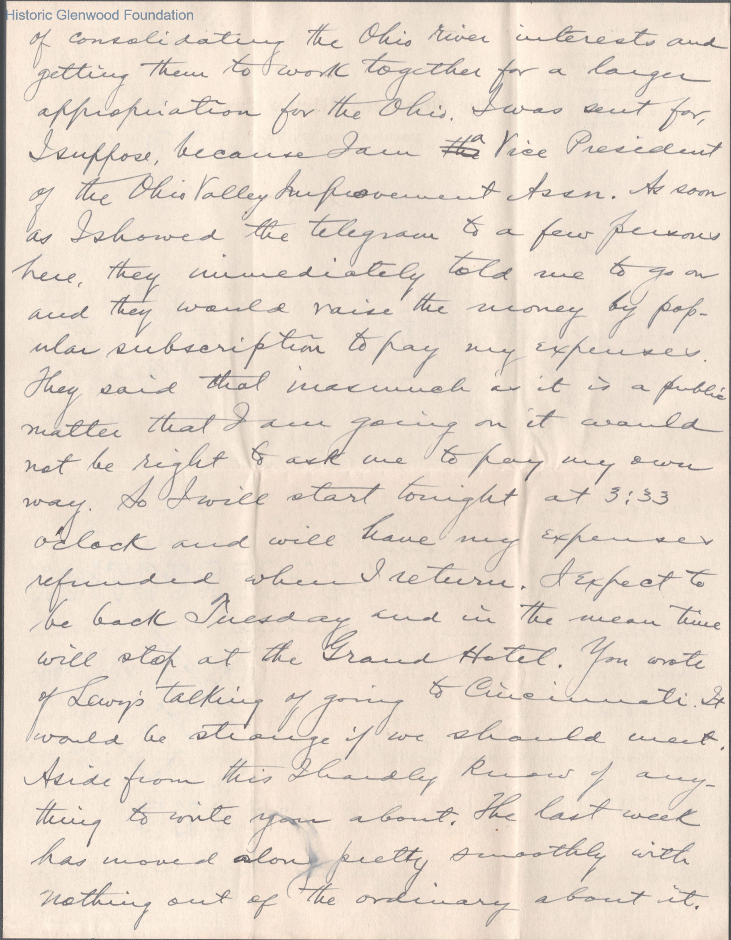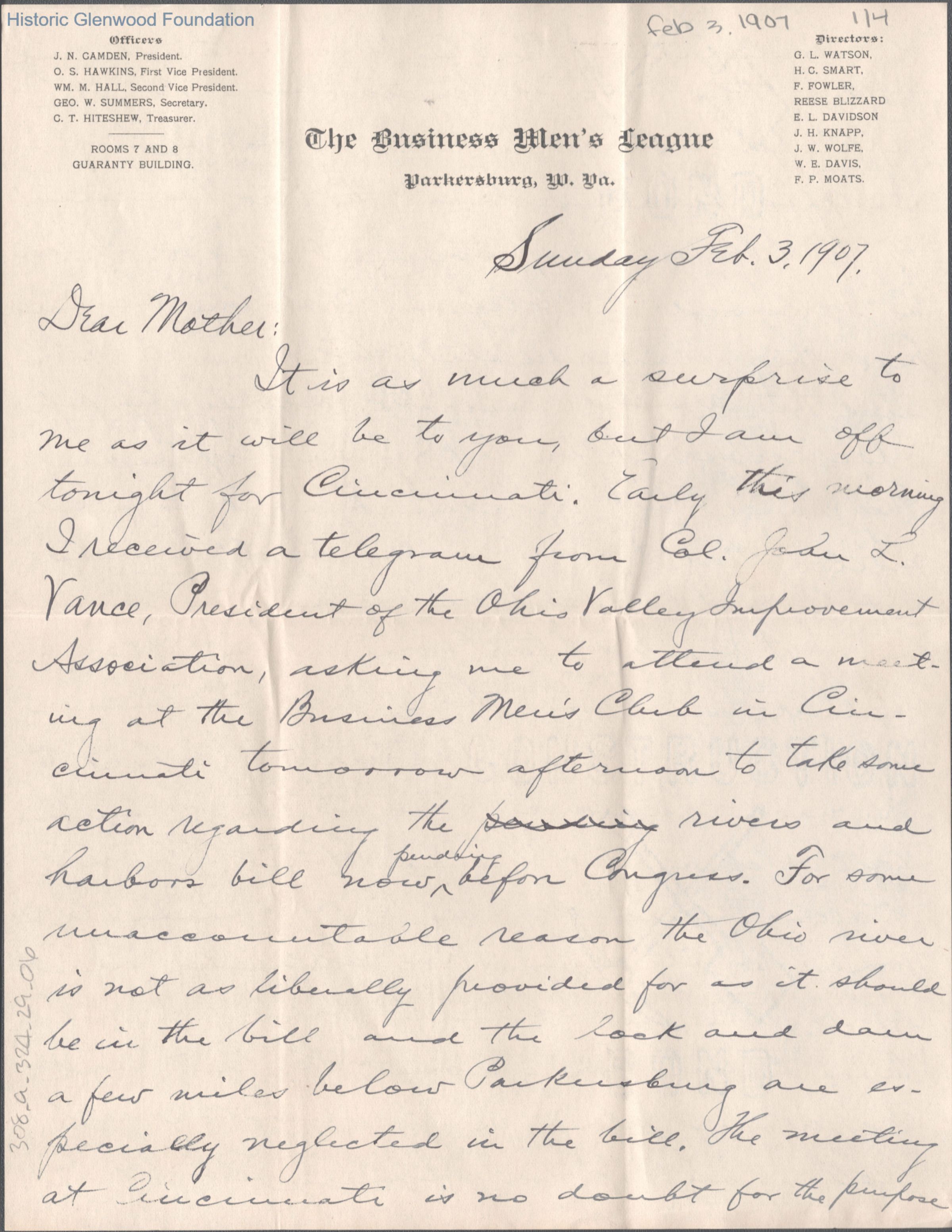 Four-page letter to Lucy W. Summers from her son George W. Summers, Feb 3, 1907.
