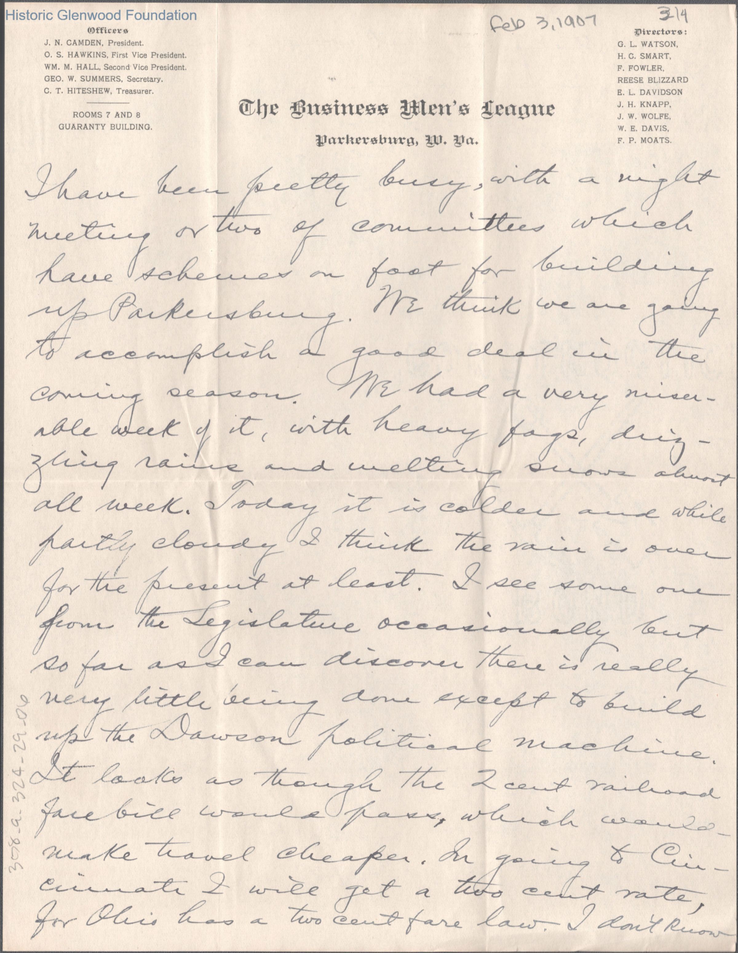 Lucy W. Summers from George W. Summers, Feb 3, 1907