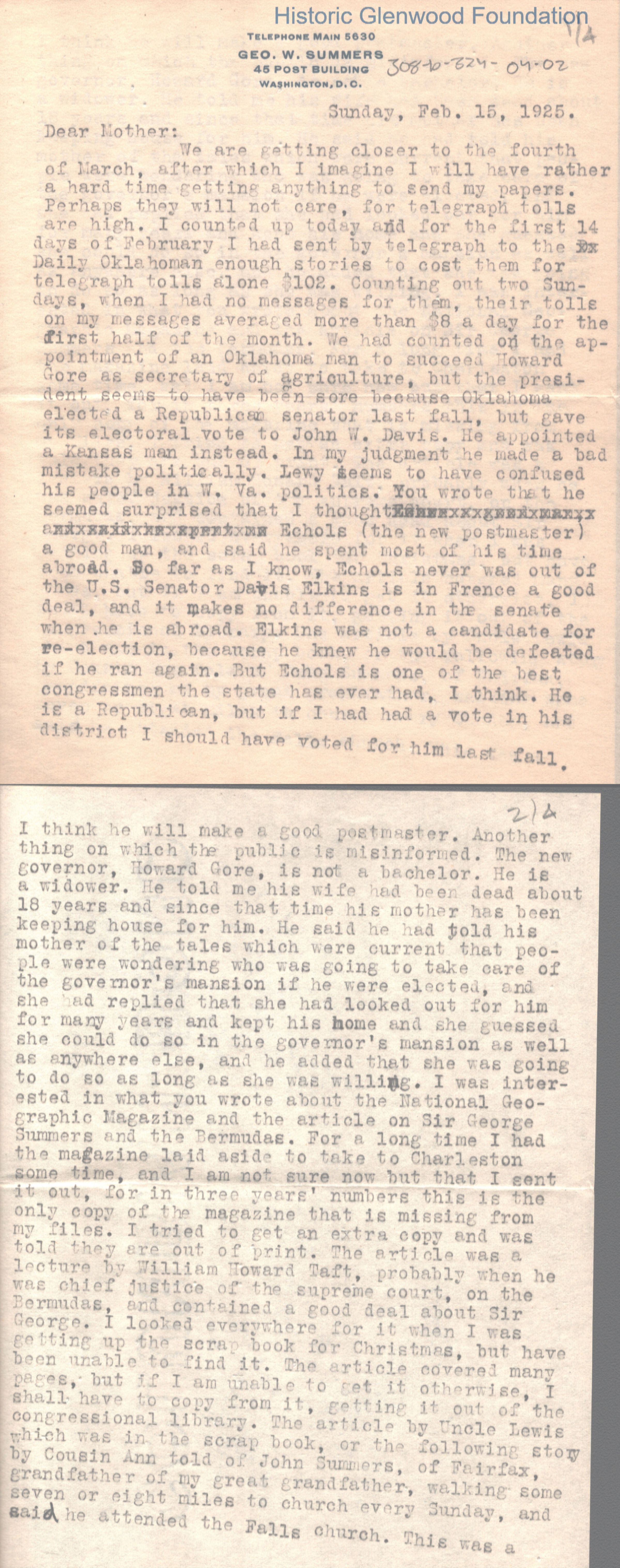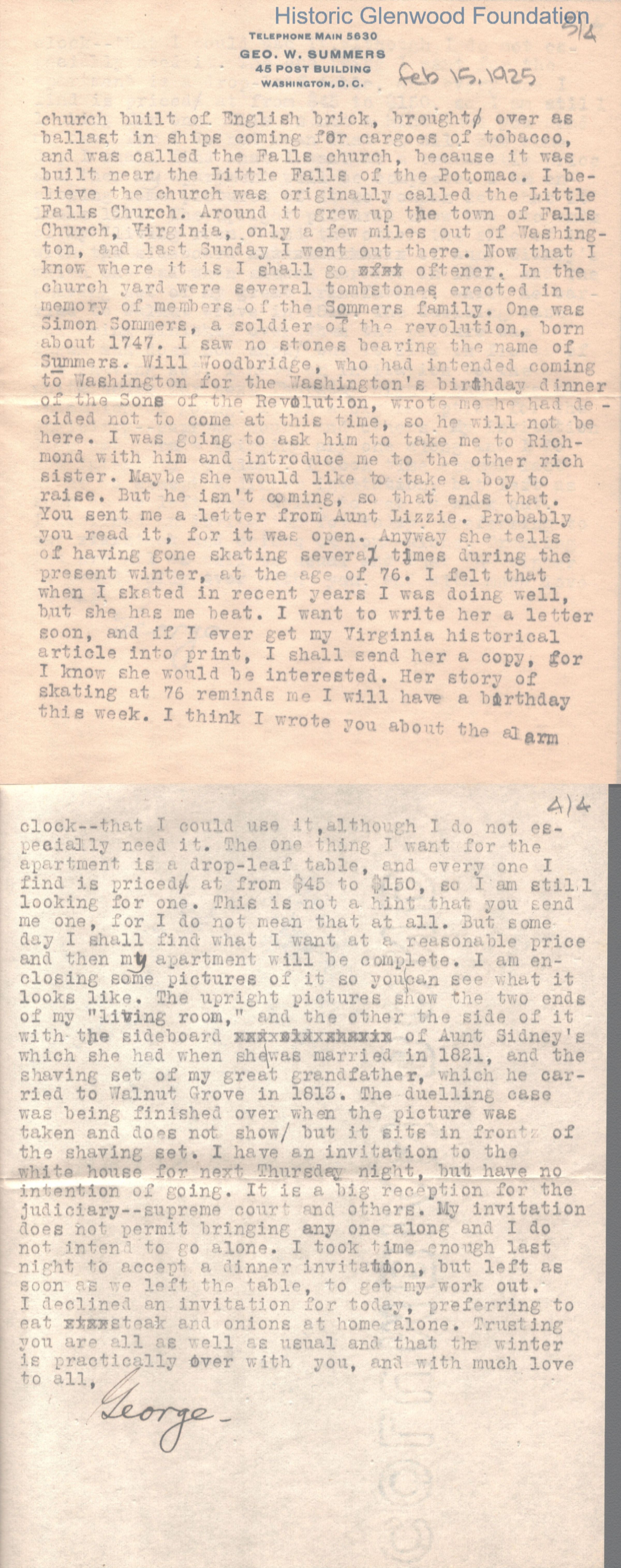 Lucy W. Summers, from George W. Summers, February 15, 1925Entry/Object ID