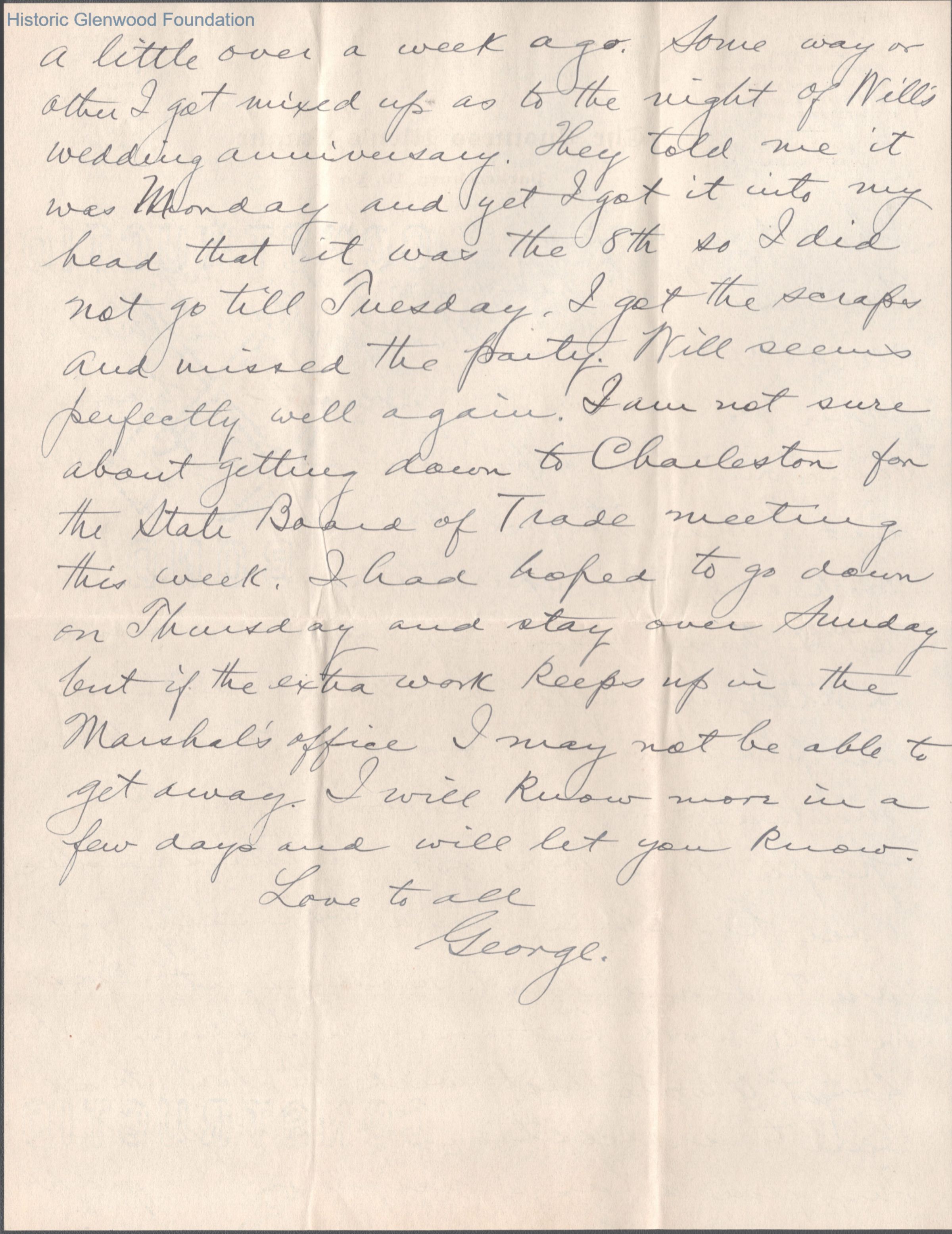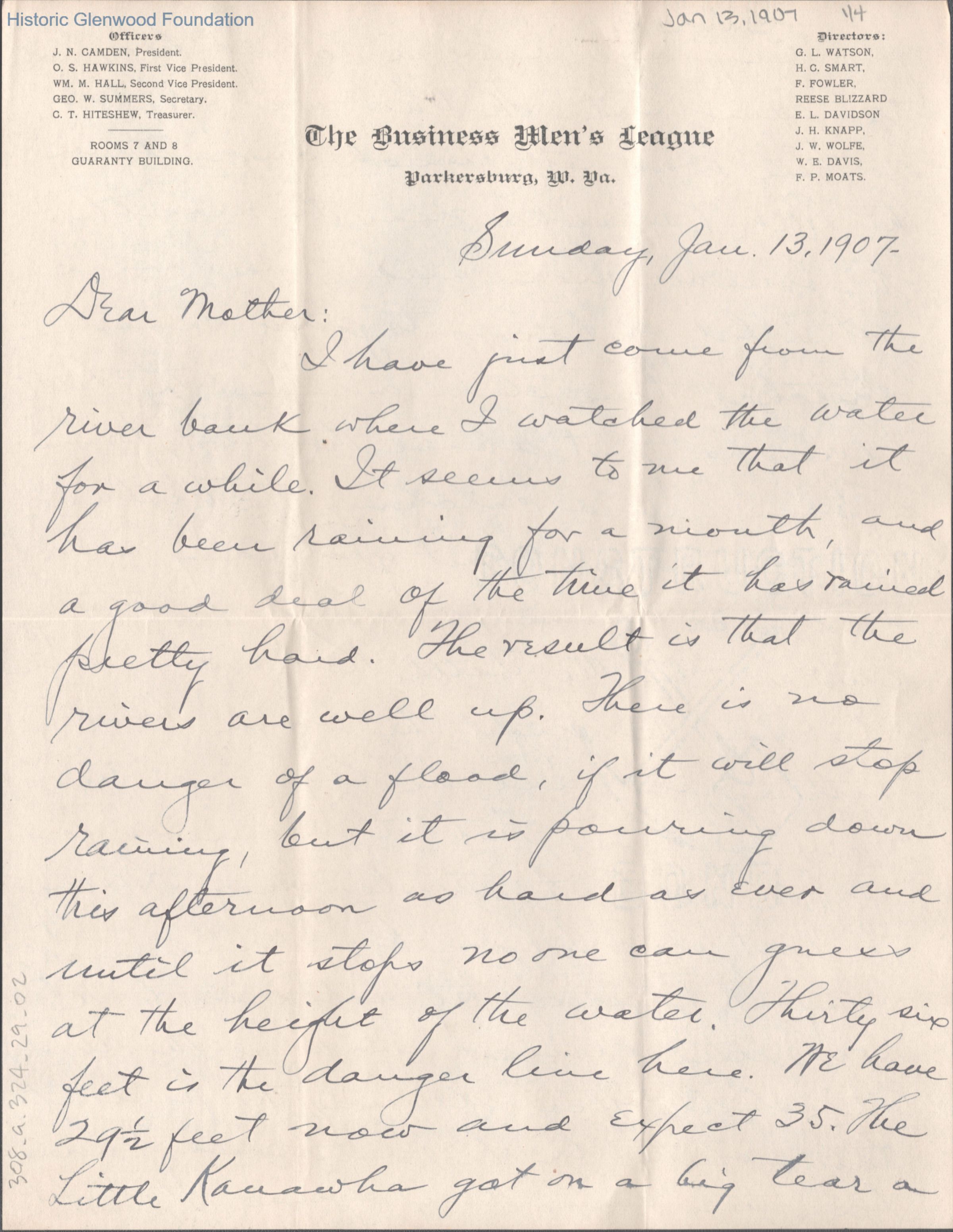 Four-page letter to Lucy W. Summers from her son George W. Summers, Jan 13, 1907.