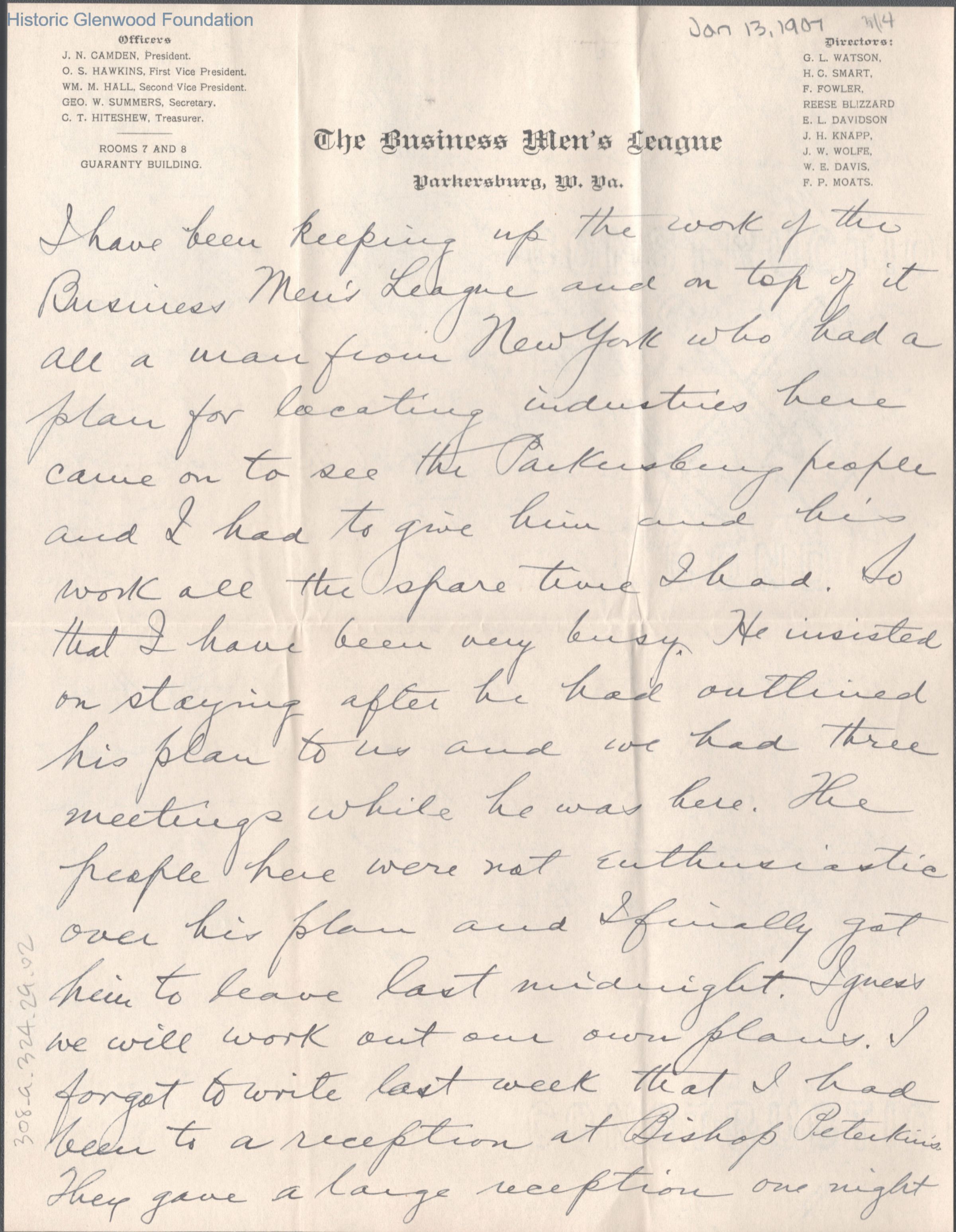 Lucy W. Summers from George W. Summers, Jan 13, 1907