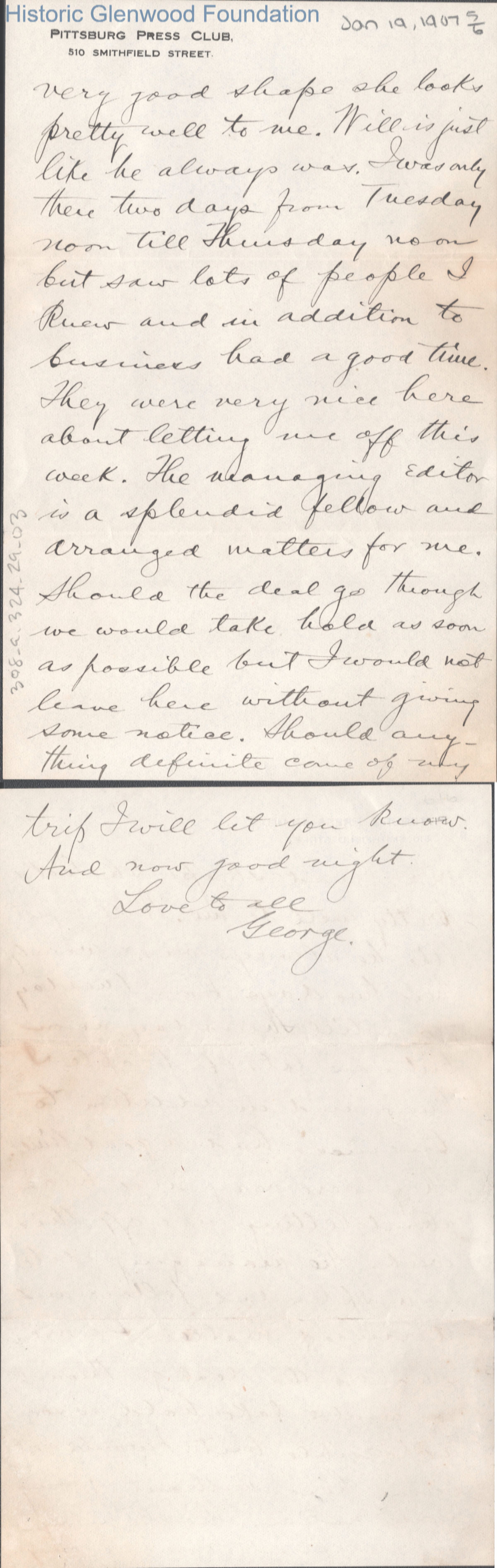 Lucy W. Summers from George W. Summers, Jan 19, 1907