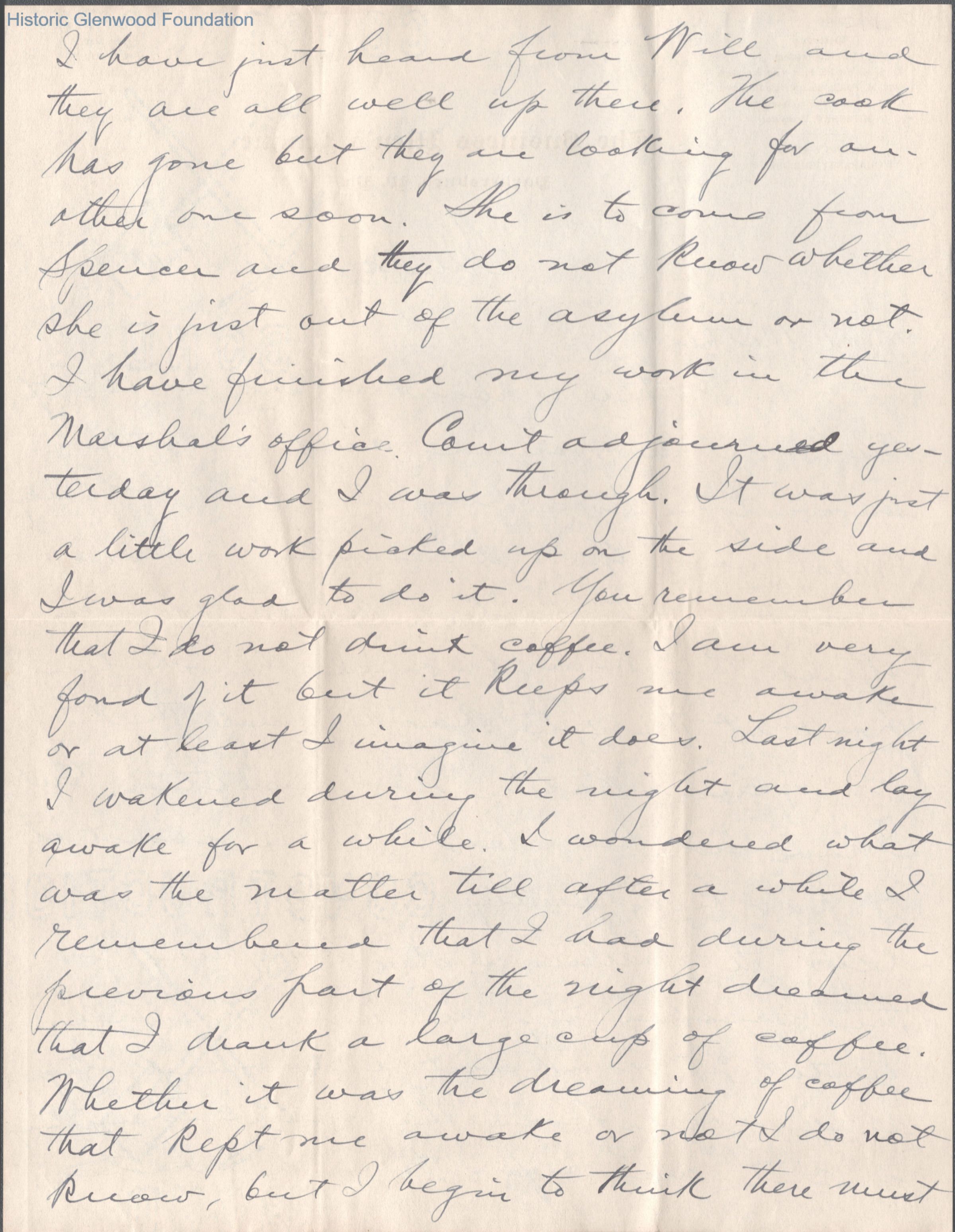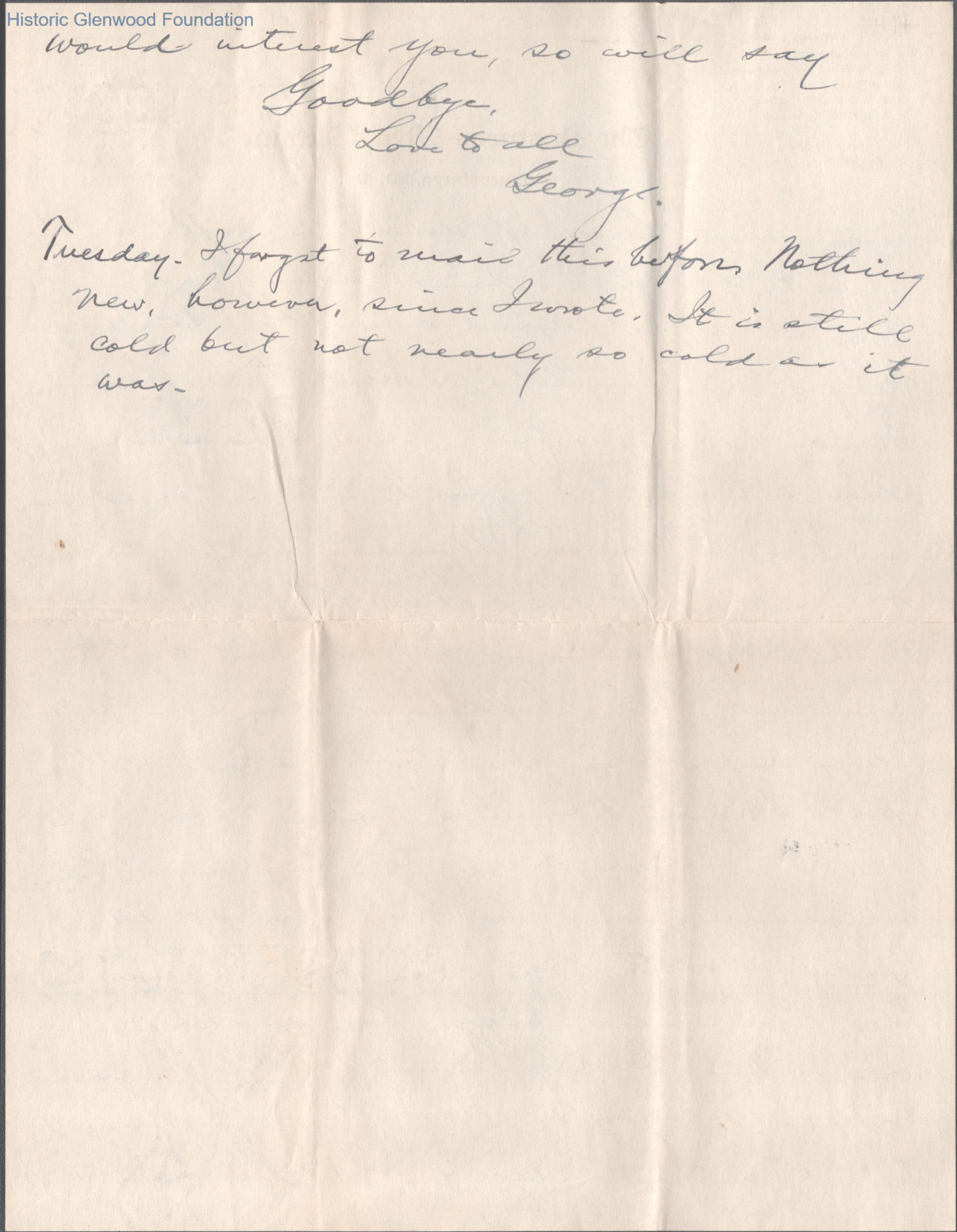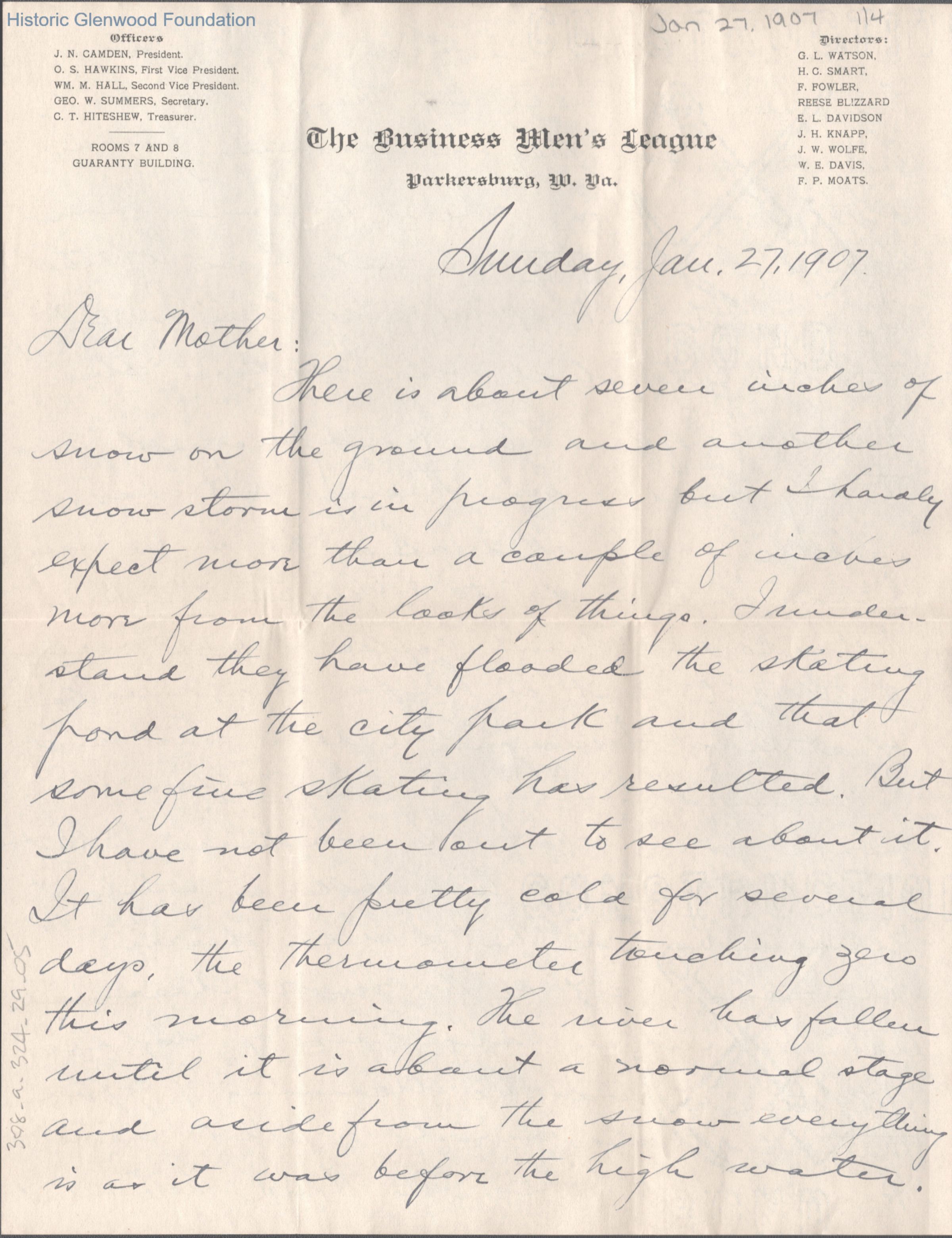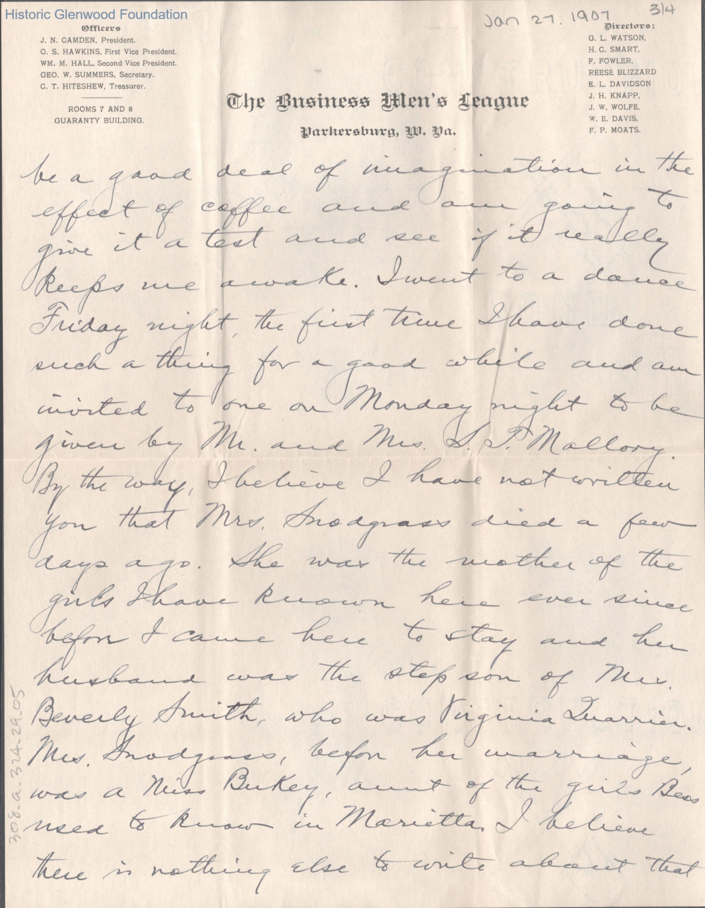 Four-page letter to Lucy W. Summers from her son George W. Summers, Jan 27, 1907.