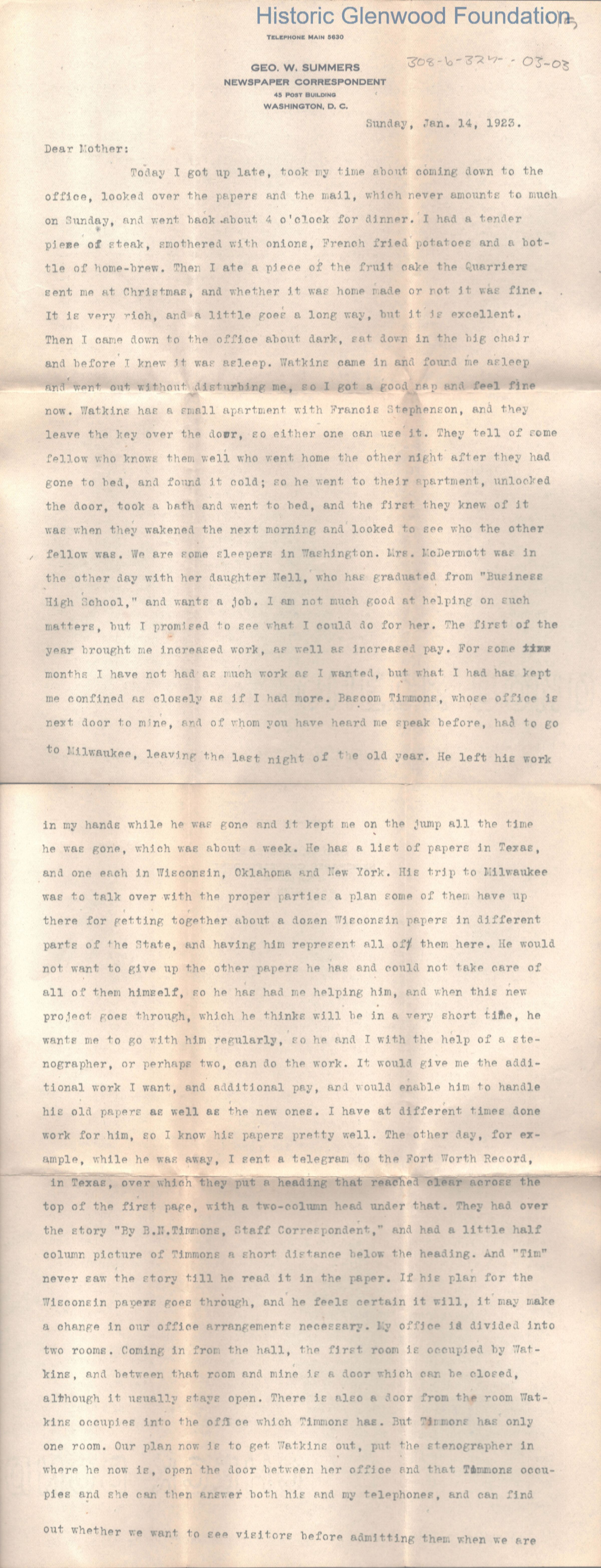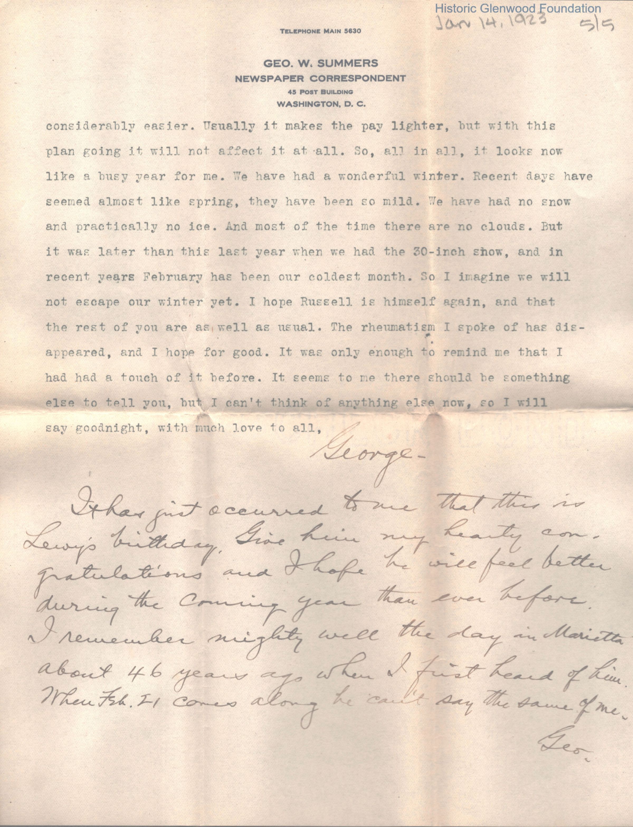 Lucy W. Summers from George W. Summers, January 14, 1923Entry/Object ID