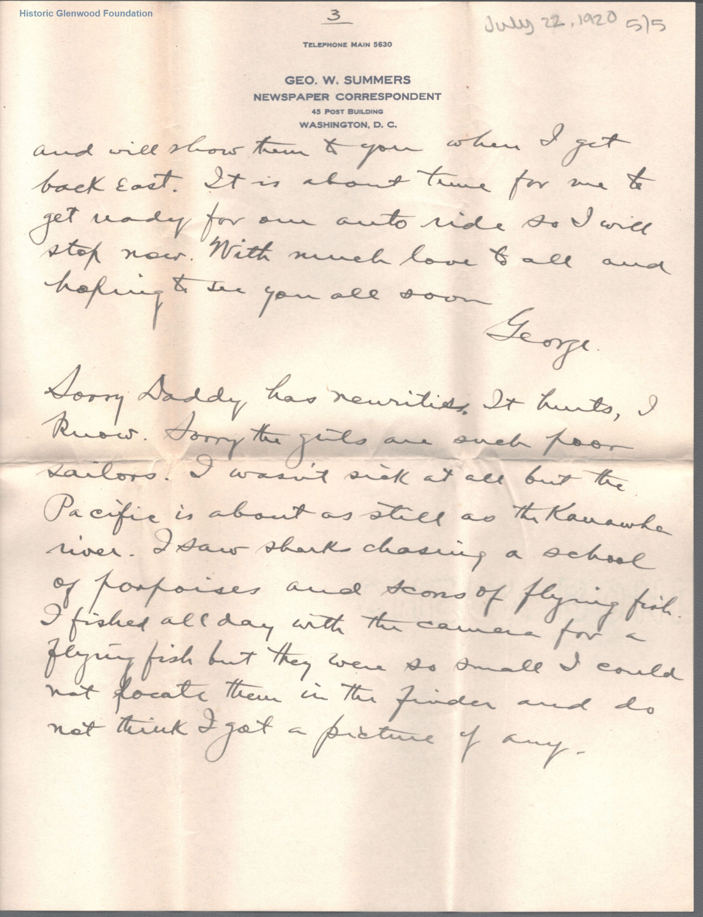 Lucy W. Summers from George W. Summers, July 22, 1920