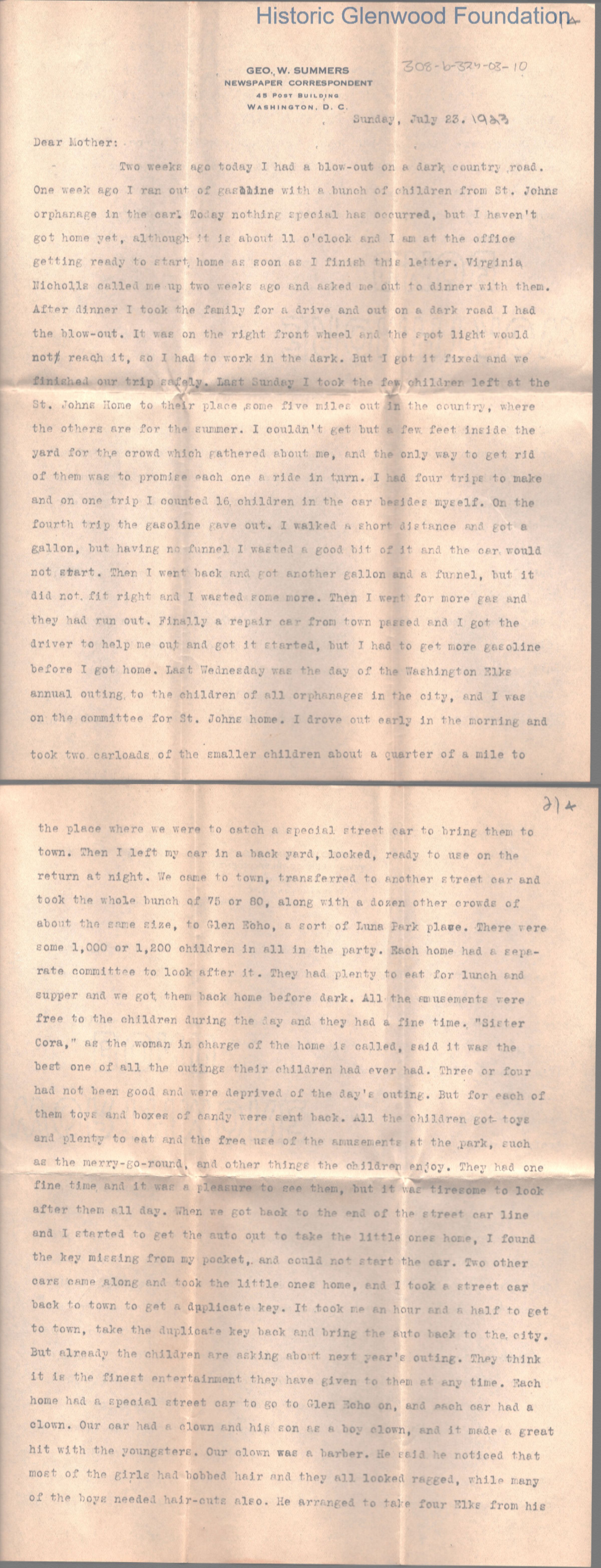 Lucy W. Summers from George W. Summers, July 23, 1923Entry/Object ID