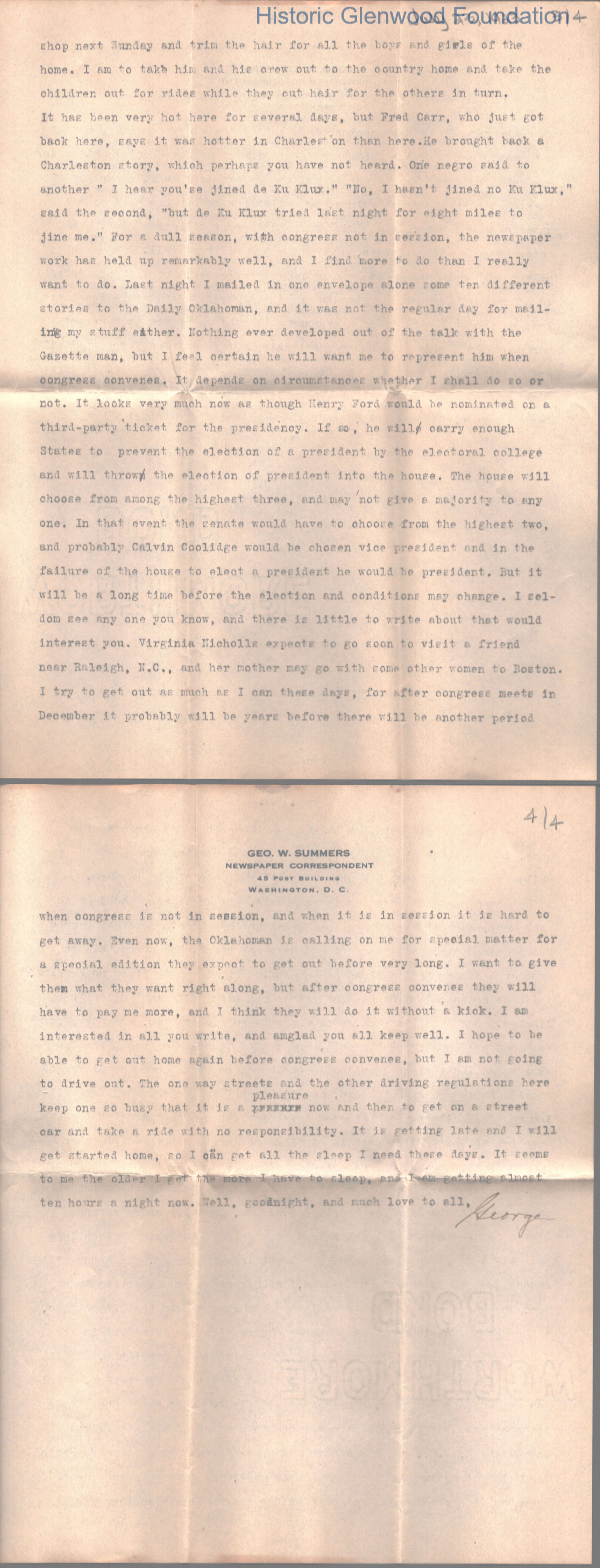 Four page letter to Lucy Summers from her son George Summers.Creator