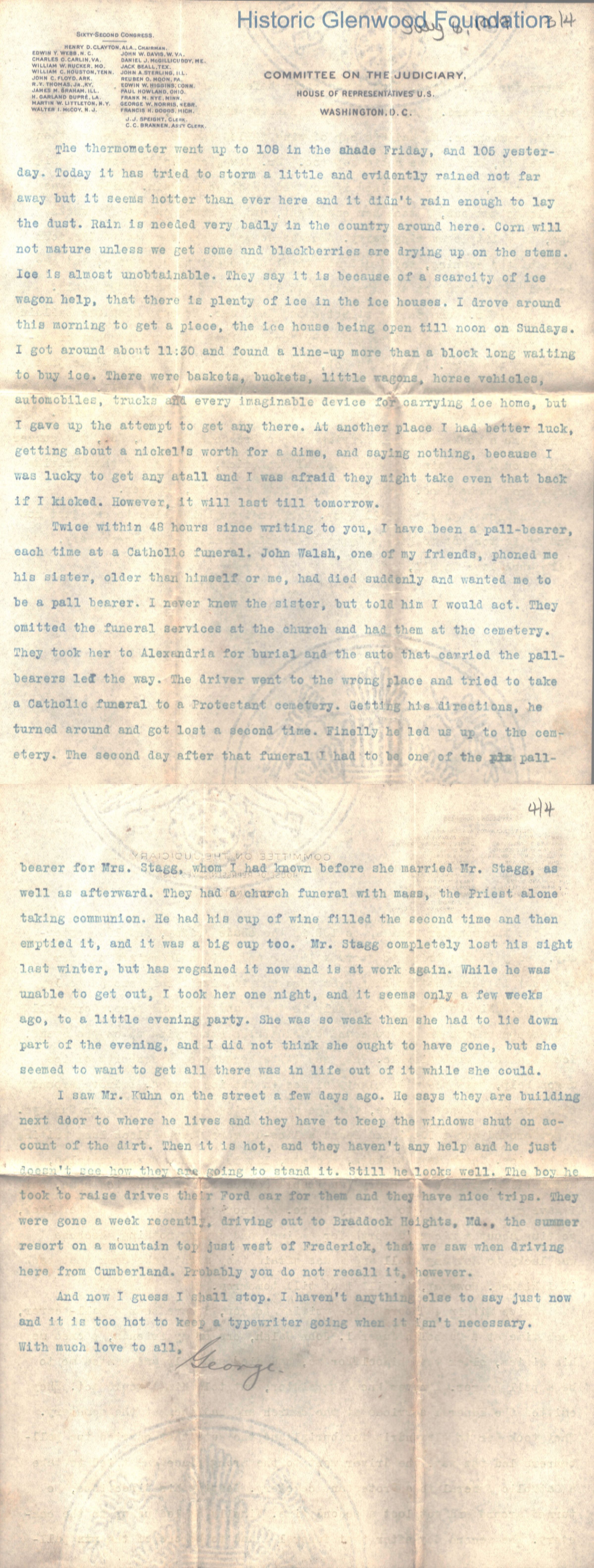 4-page typewritten letter to Lucy W. Summers from her son George W. Summers