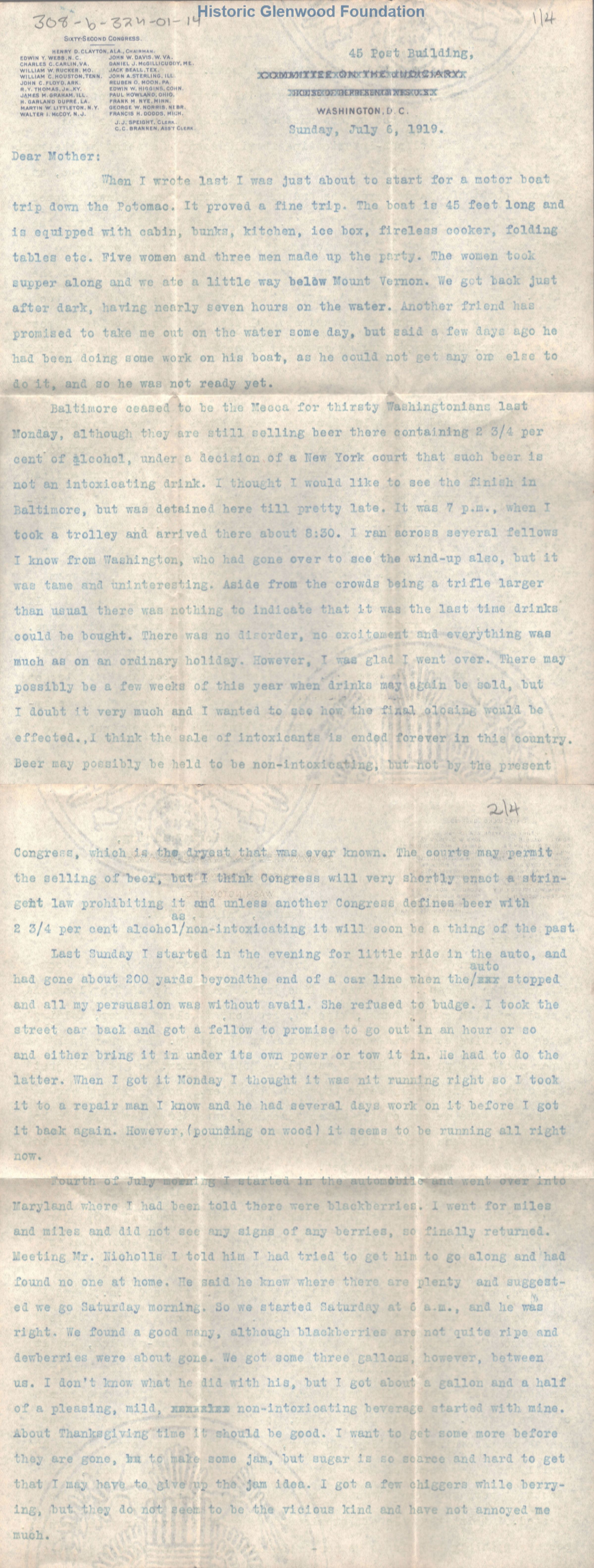 Lucy W. Summers from George W. Summers; July 6, 1919