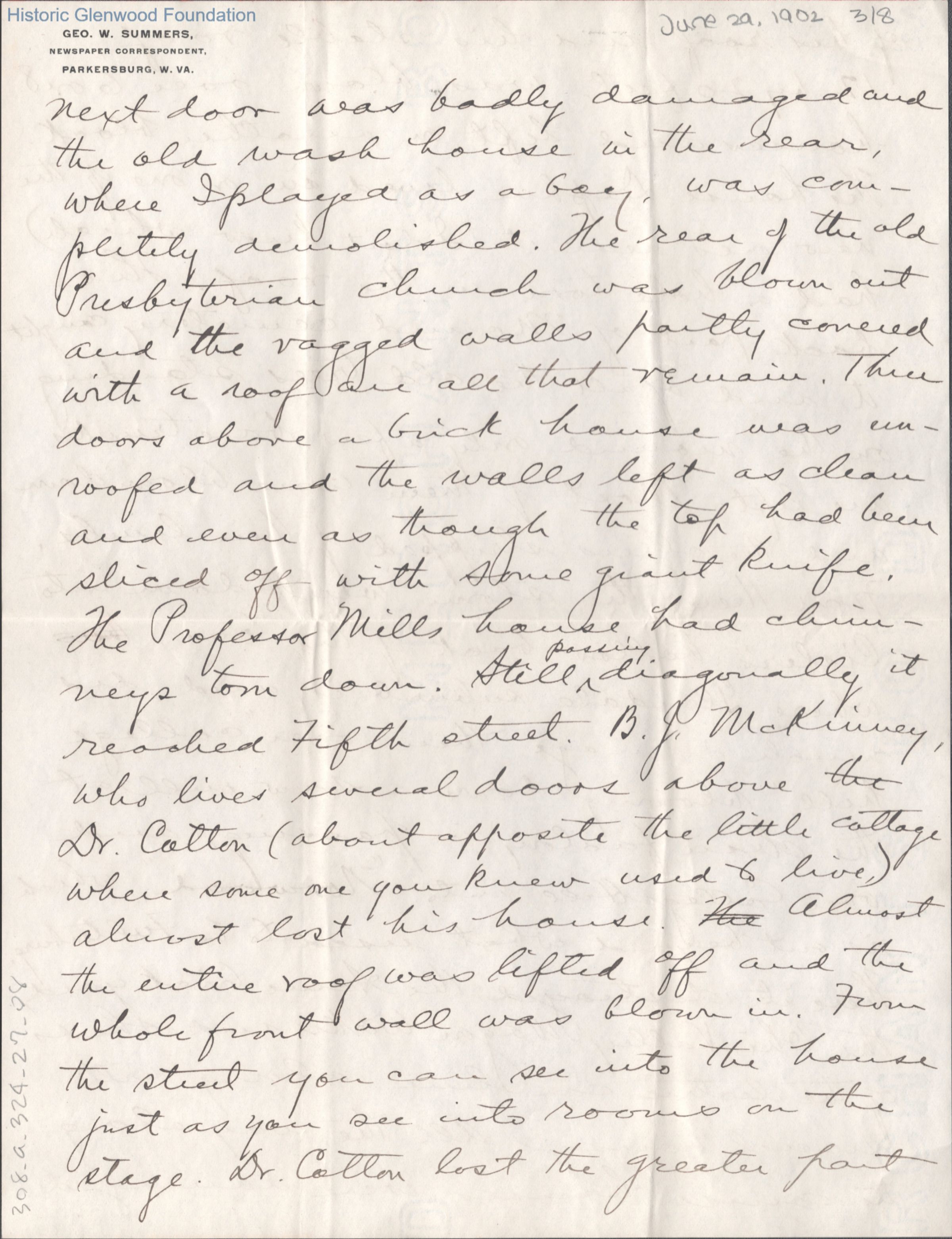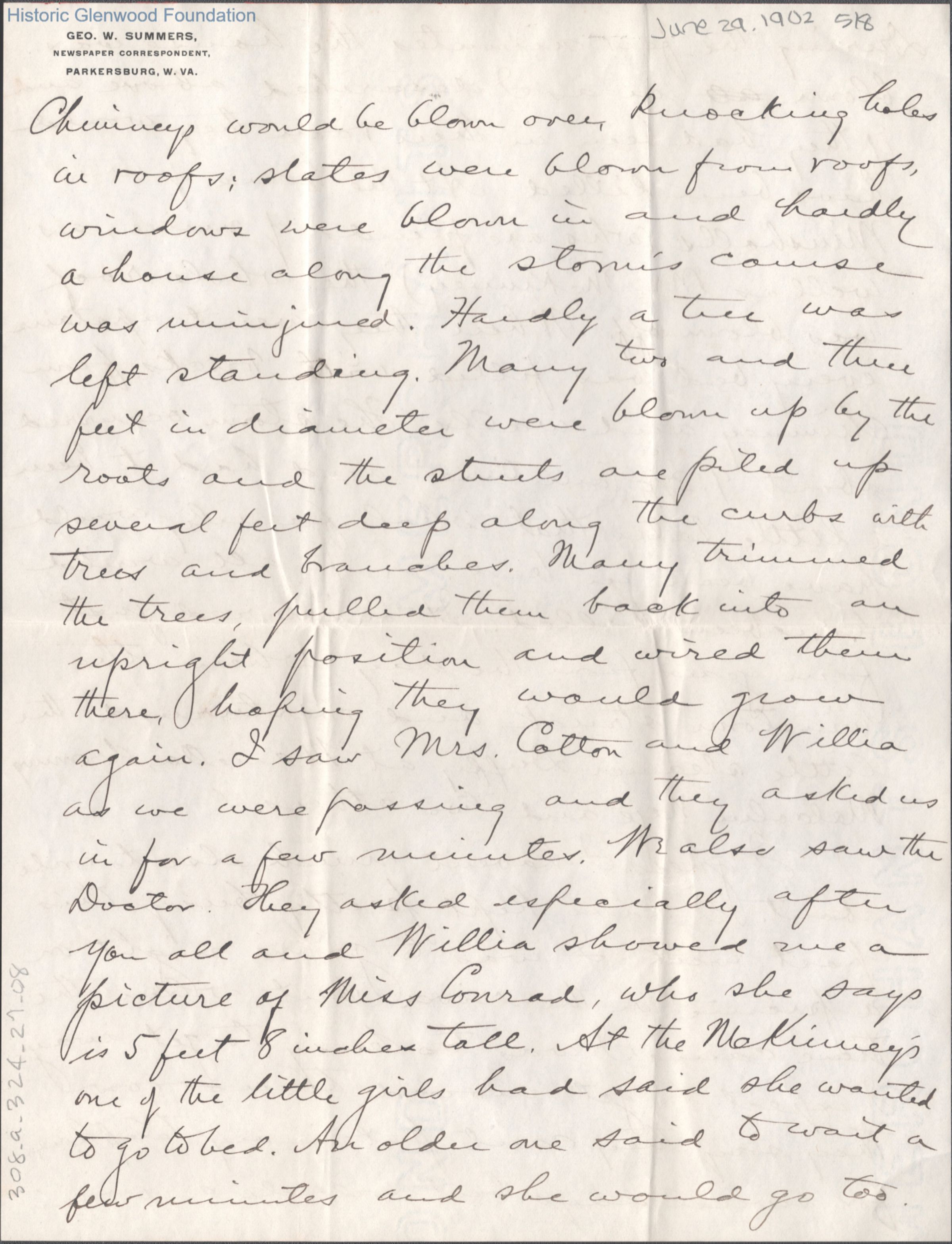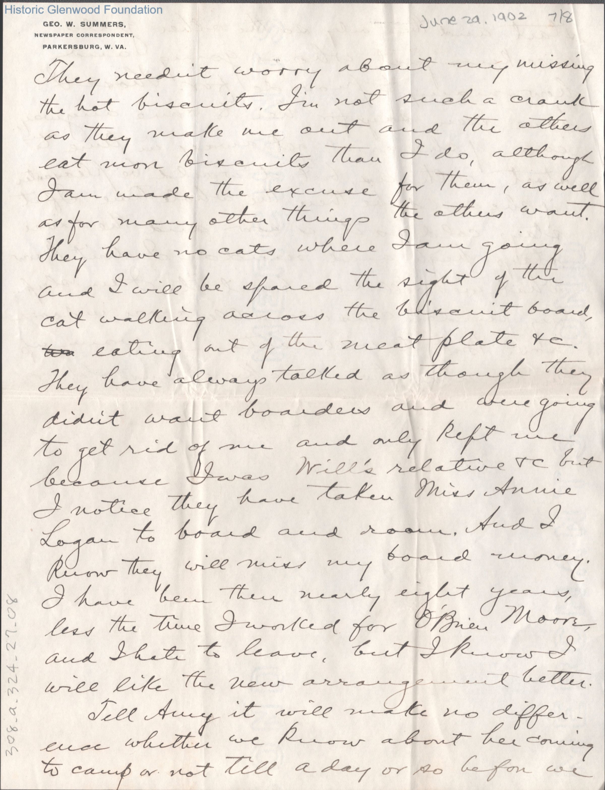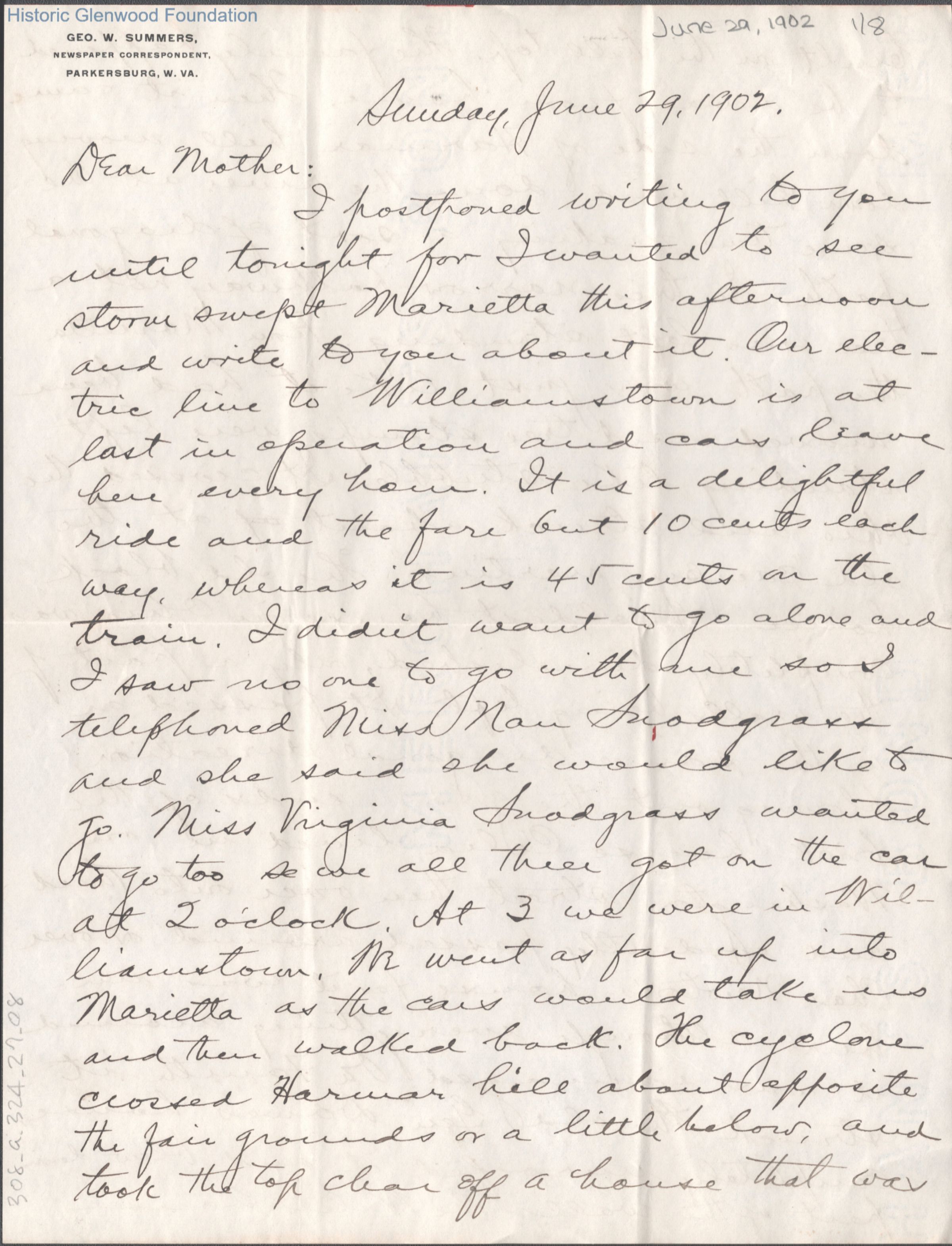 Eight-page letter to Lucy W. Summers from her son George W. Summers, Jun 29, 1902.