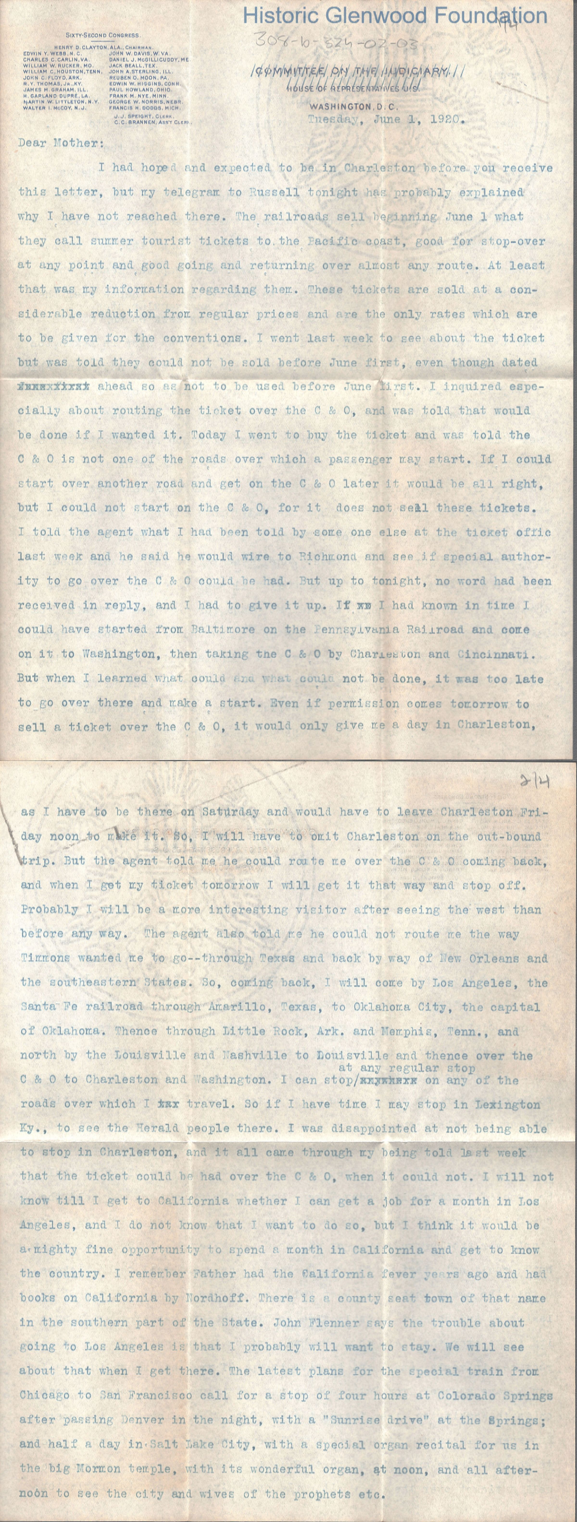 Lucy W. Summers from George W. Summers, June 1, 1920Entry/Object ID