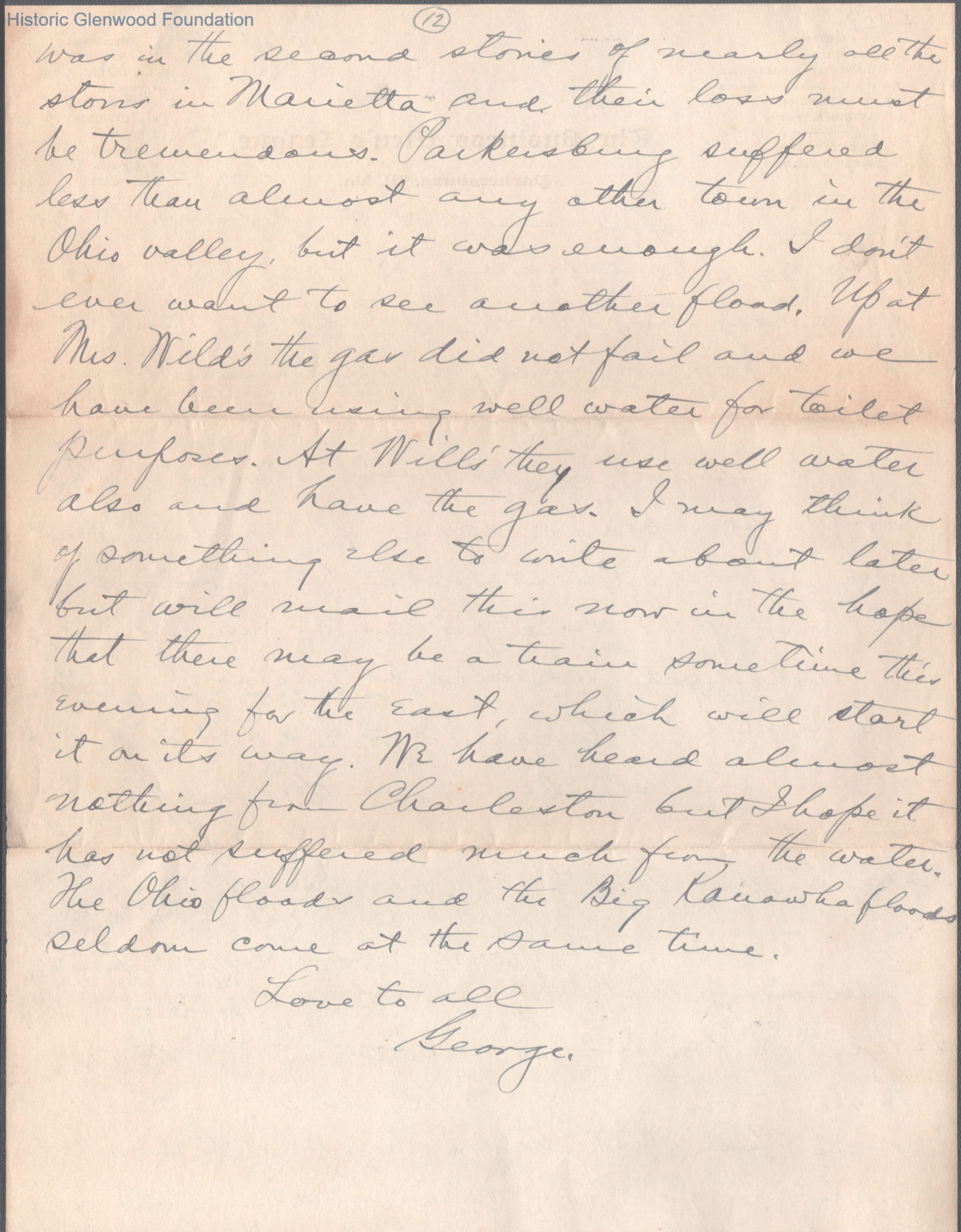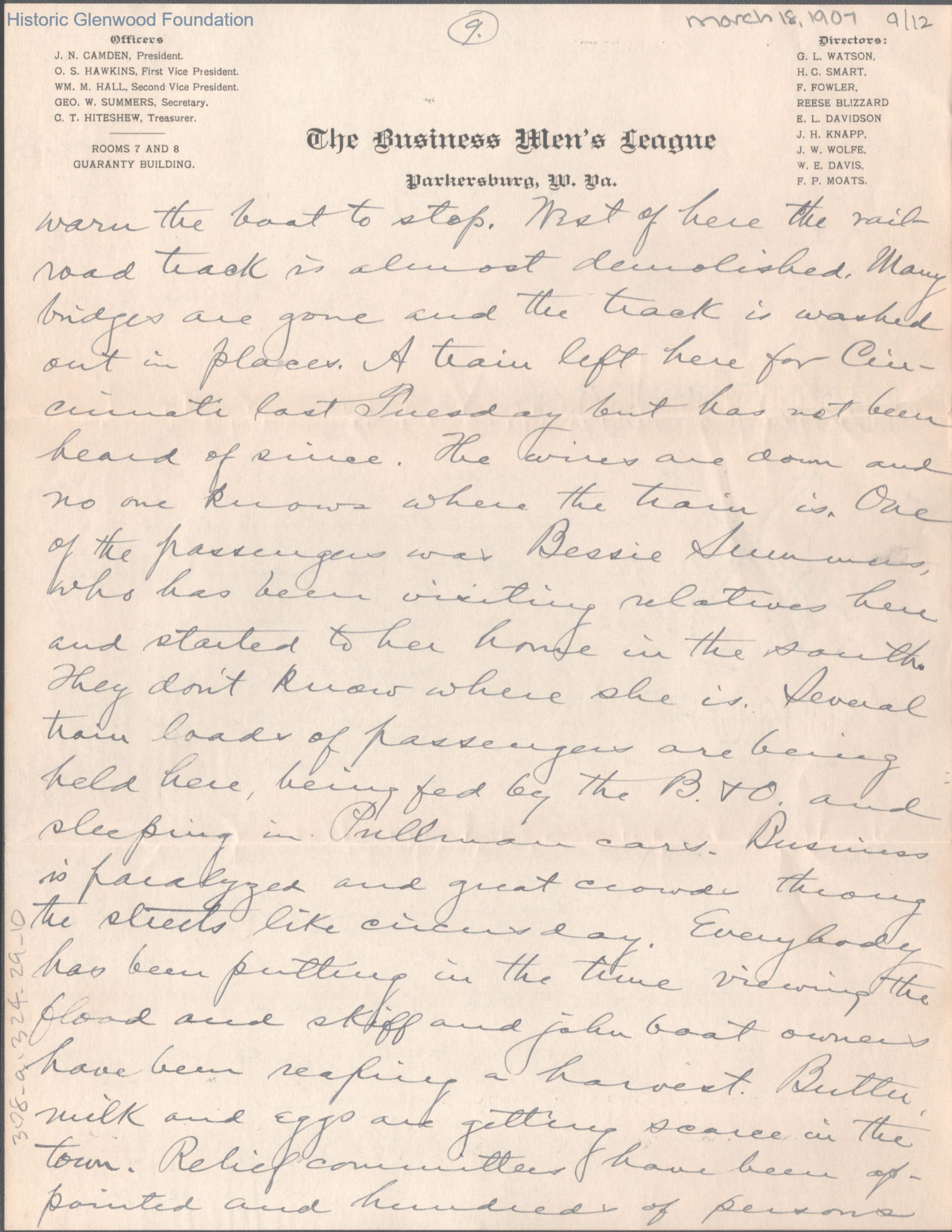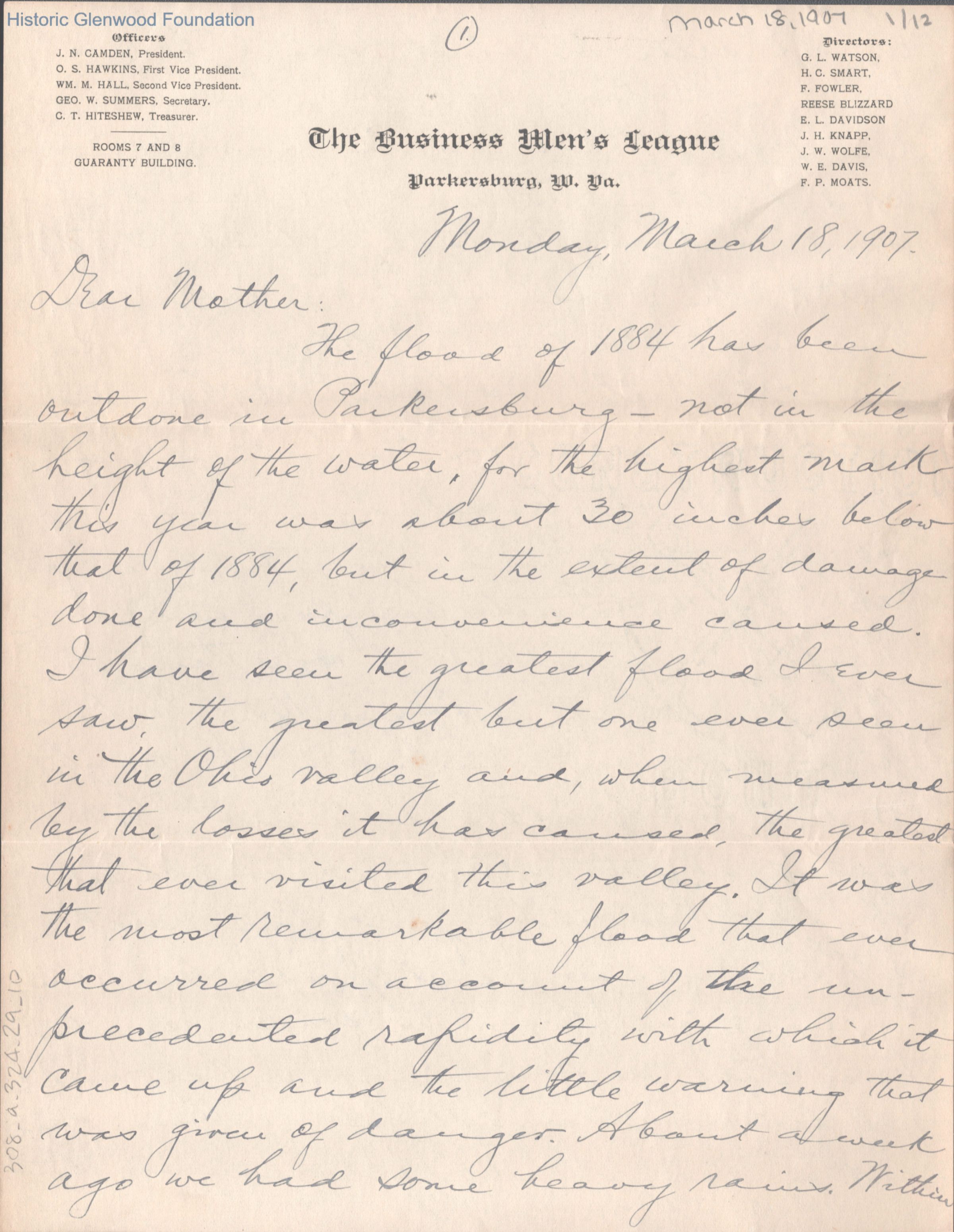 Twelve-page letter to Lucy W. Summers from her son George W. Summers, Mar 18, 1907.