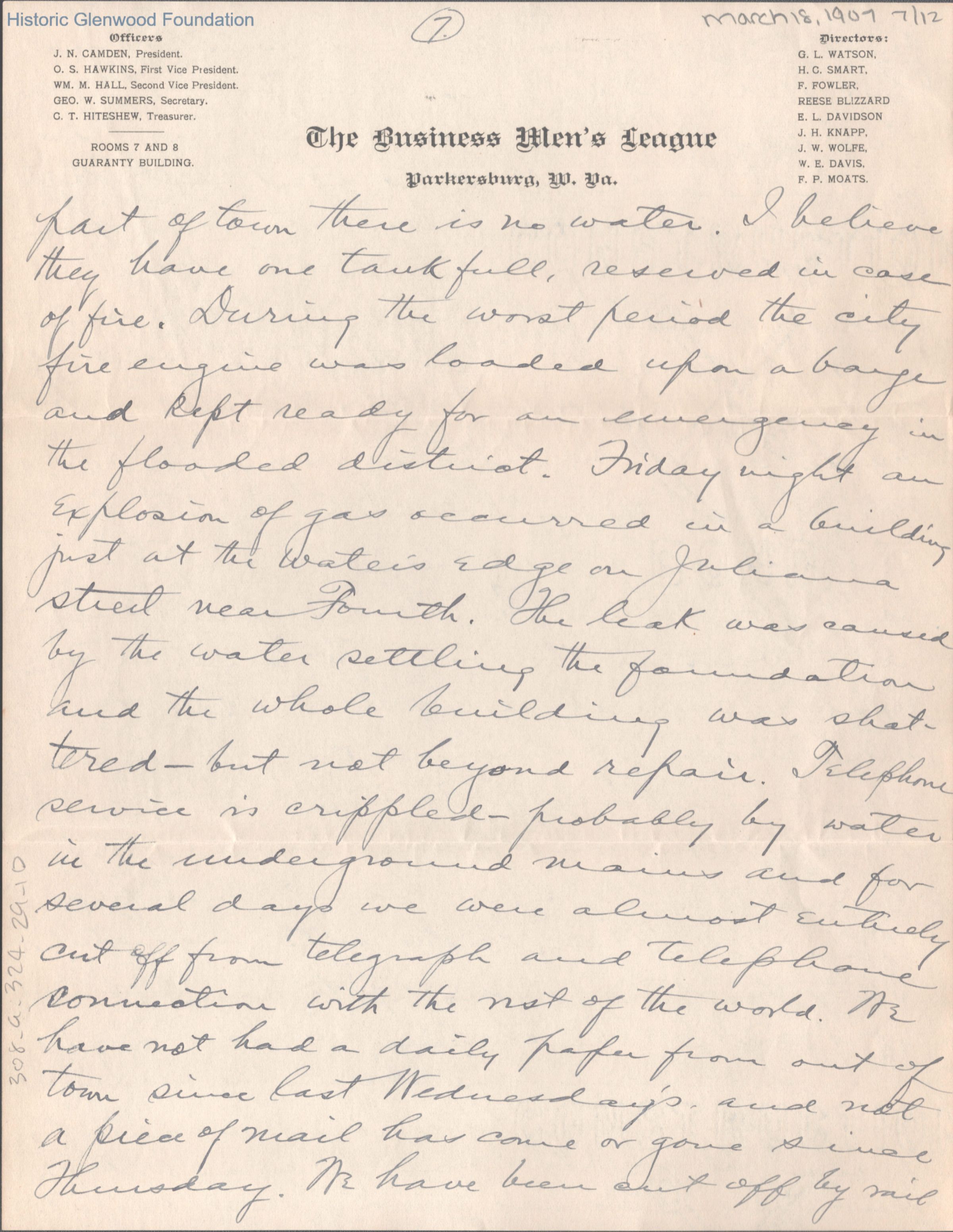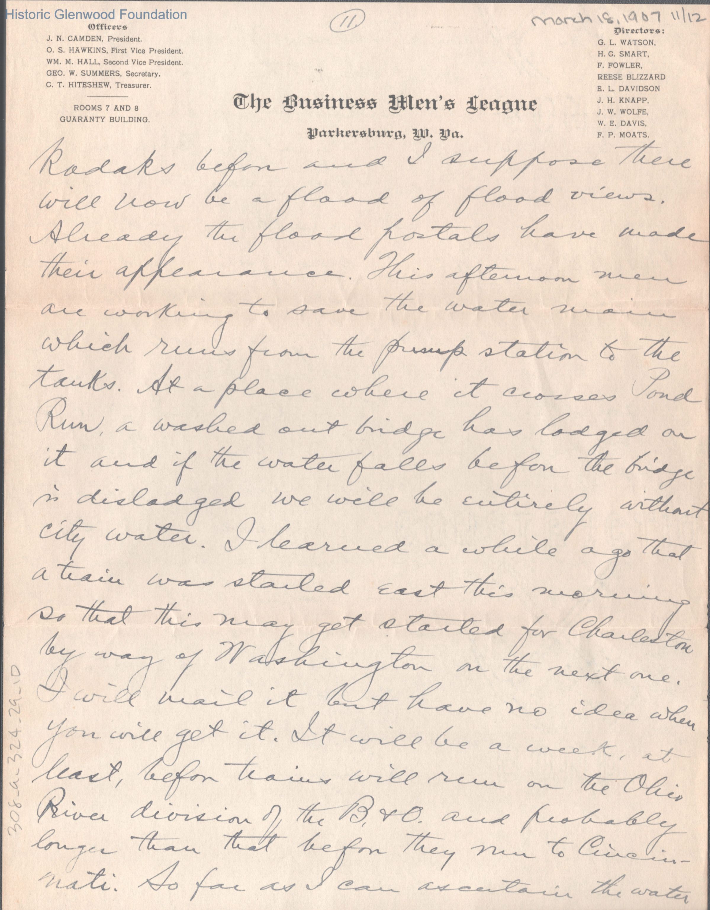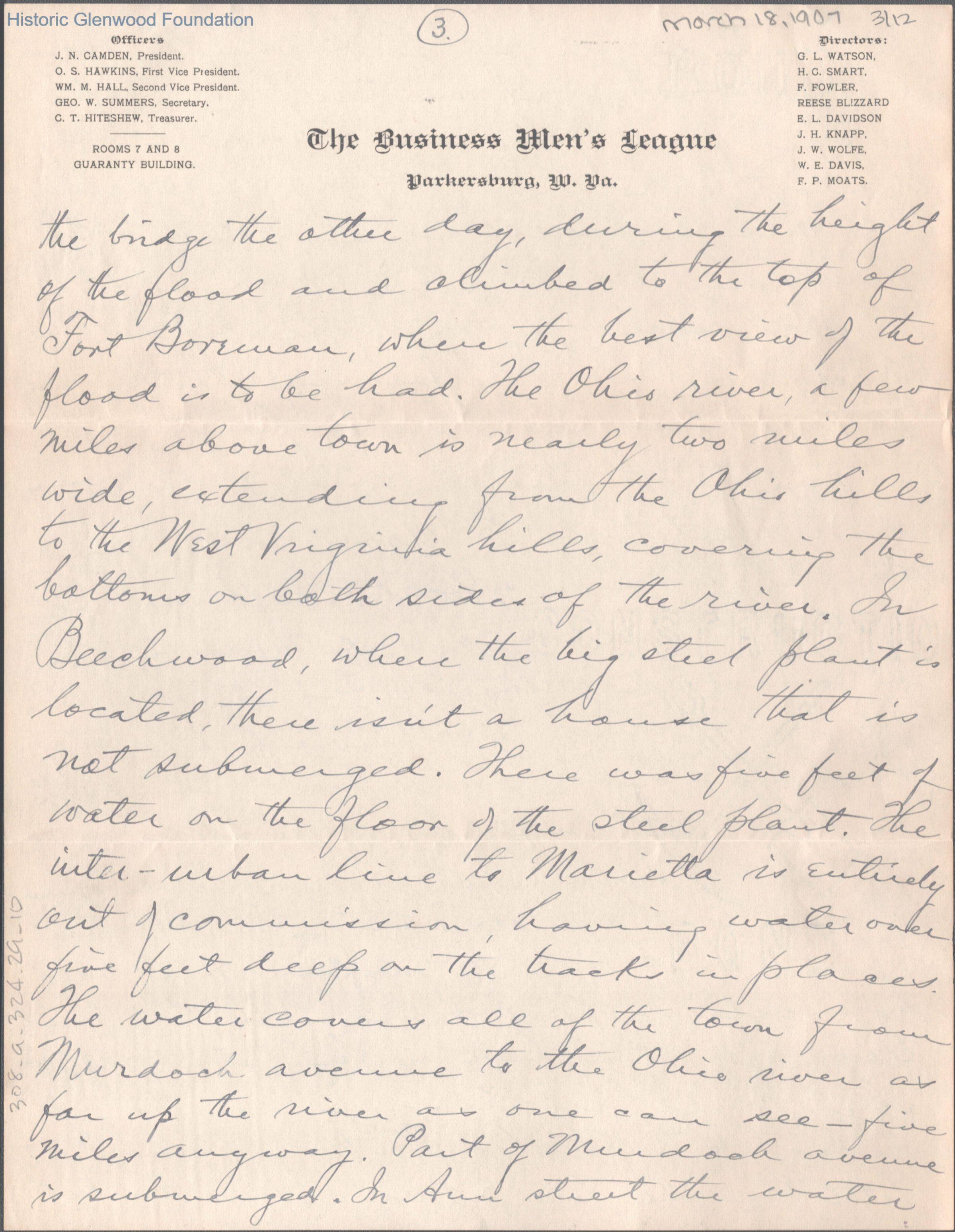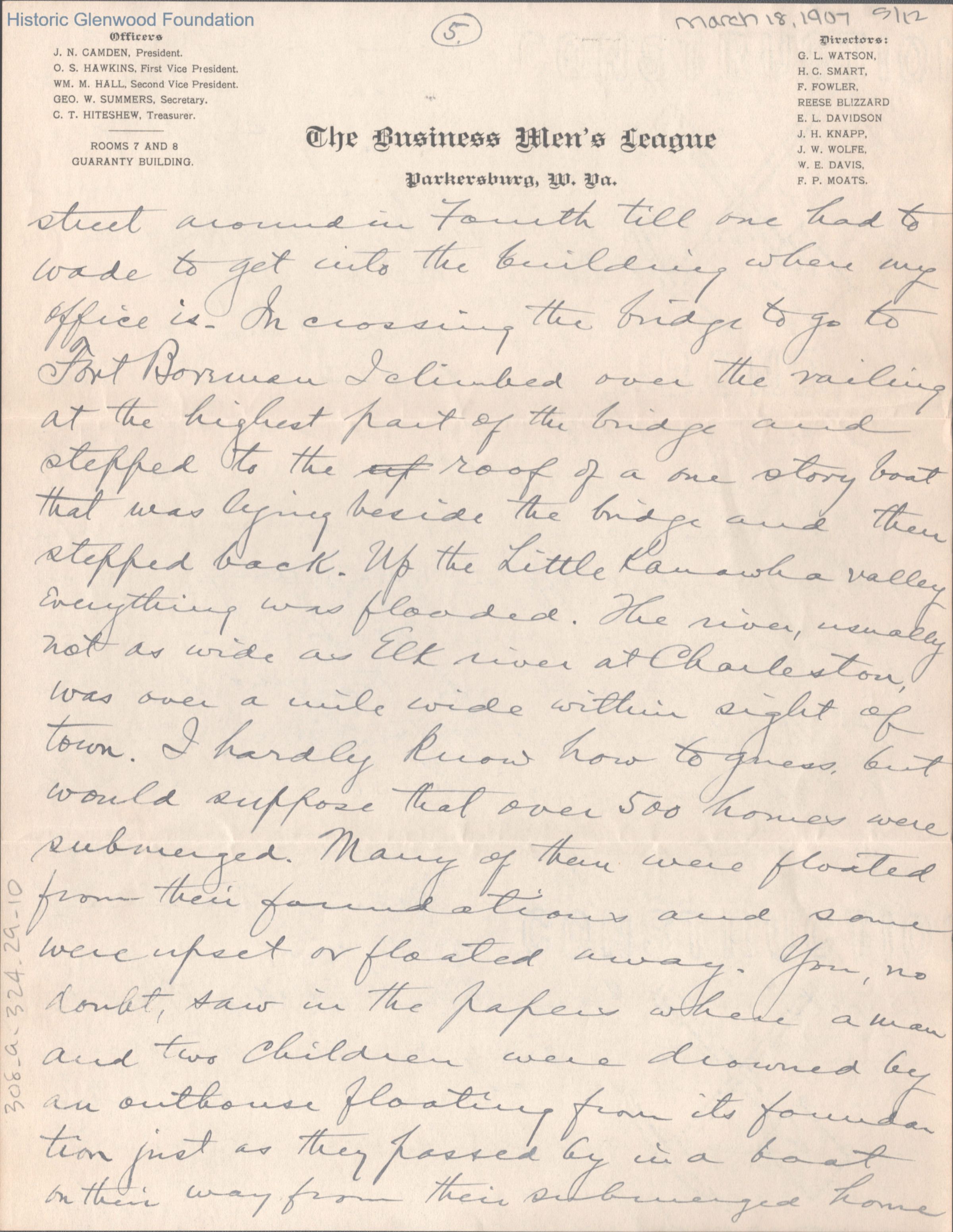 Twelve-page letter to Lucy W. Summers from her son George W. Summers, Mar 18, 1907.