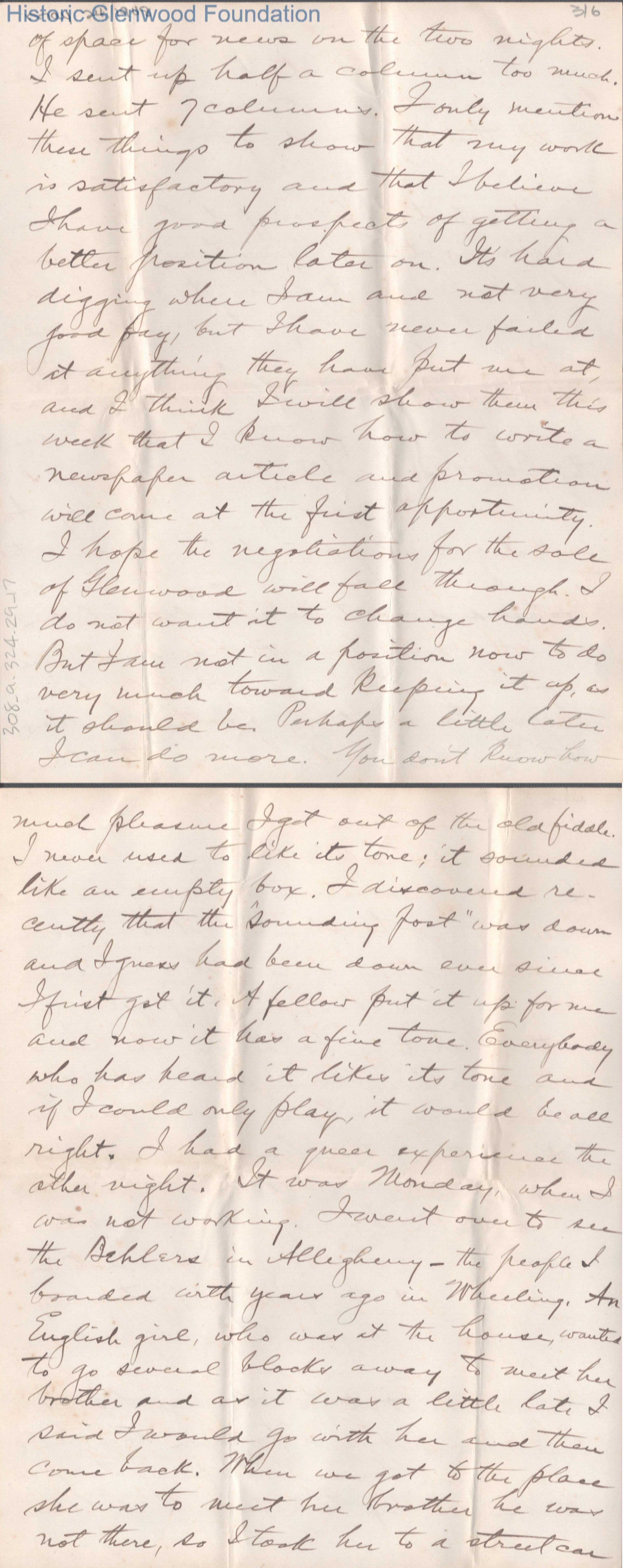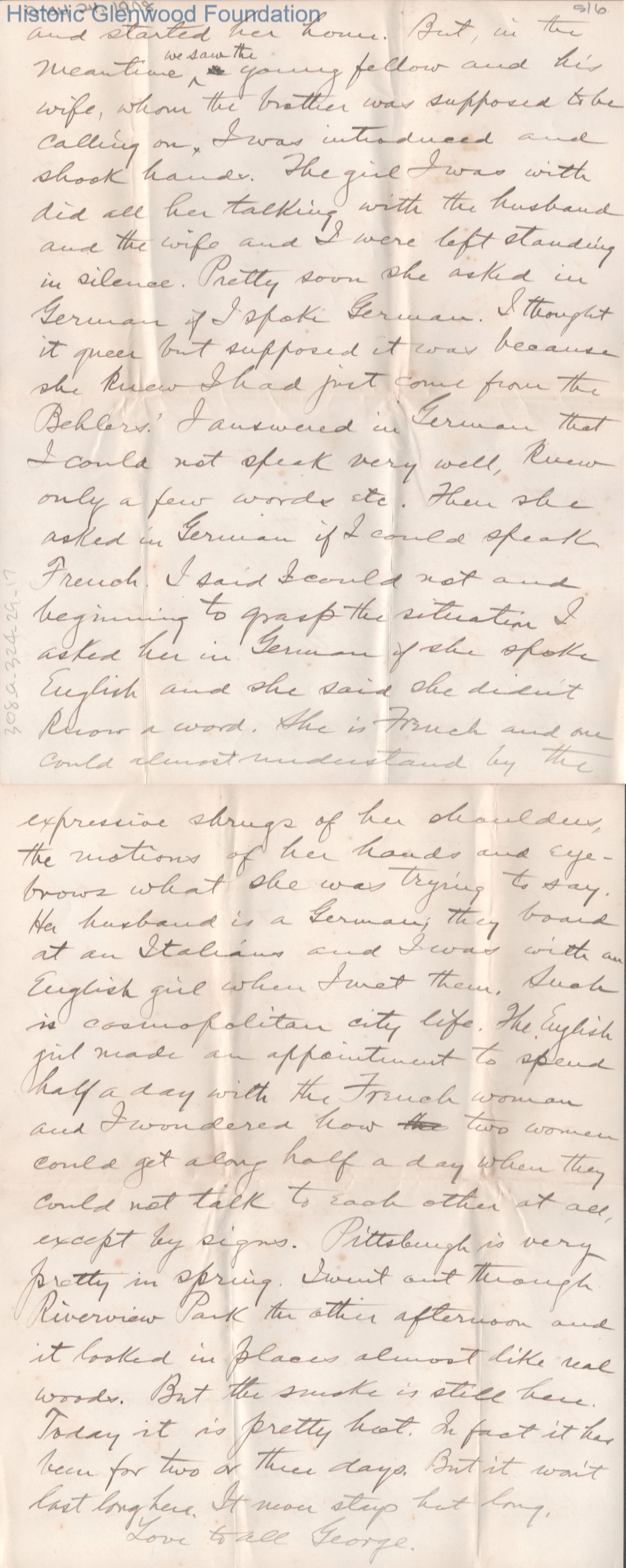 Six-page letter to Lucy W. Summers from son George W. Summers, May 24, 1908.