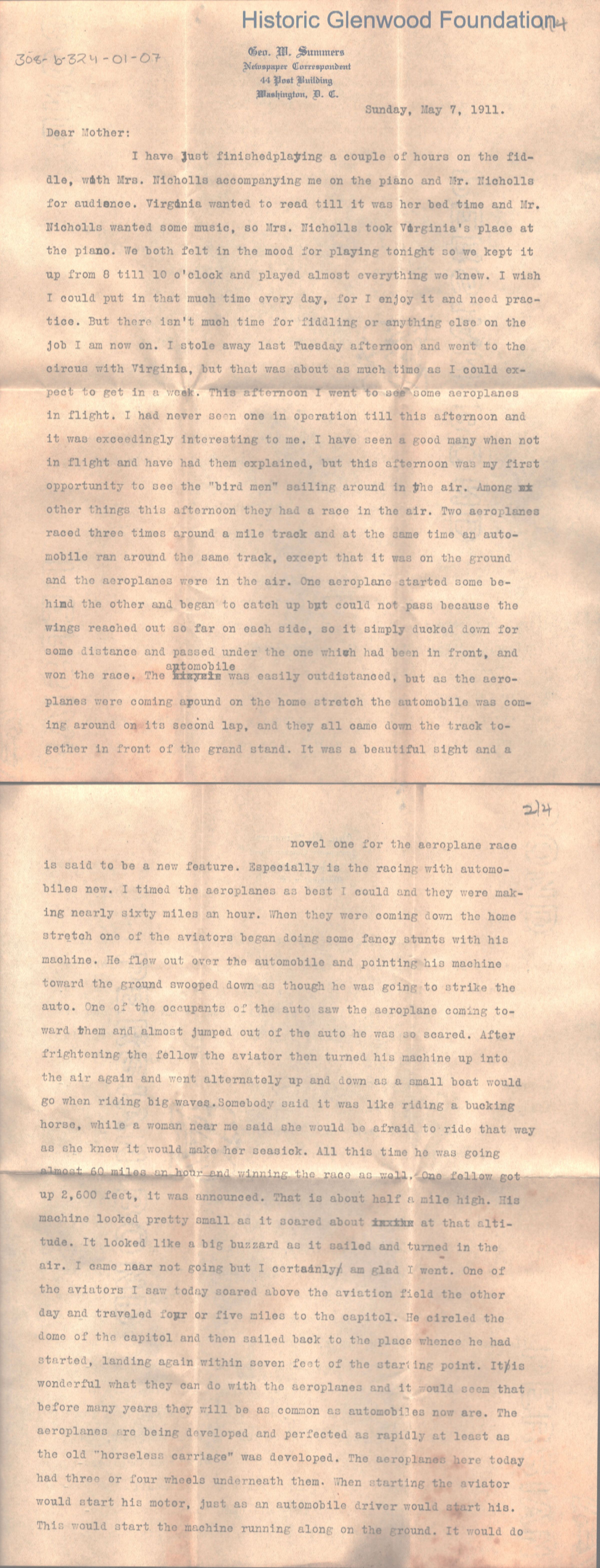 Lucy W. Summers from George W. Summers, May 7, 1911