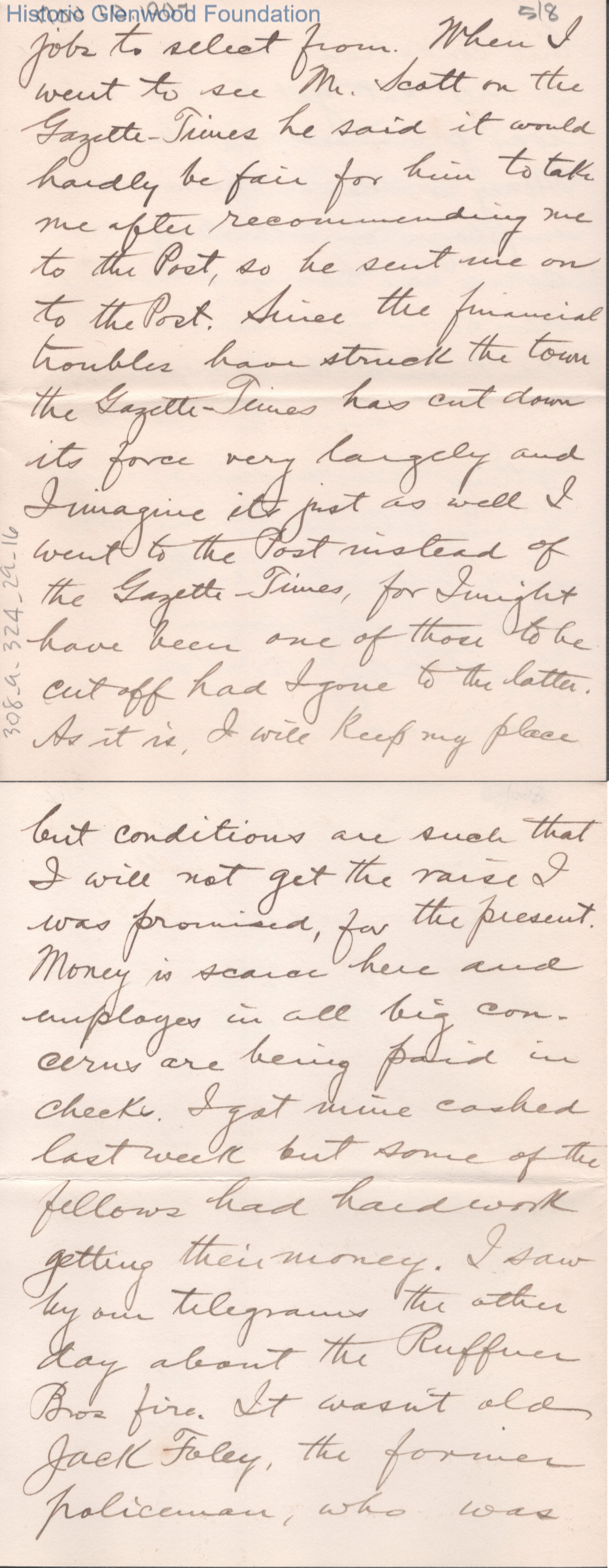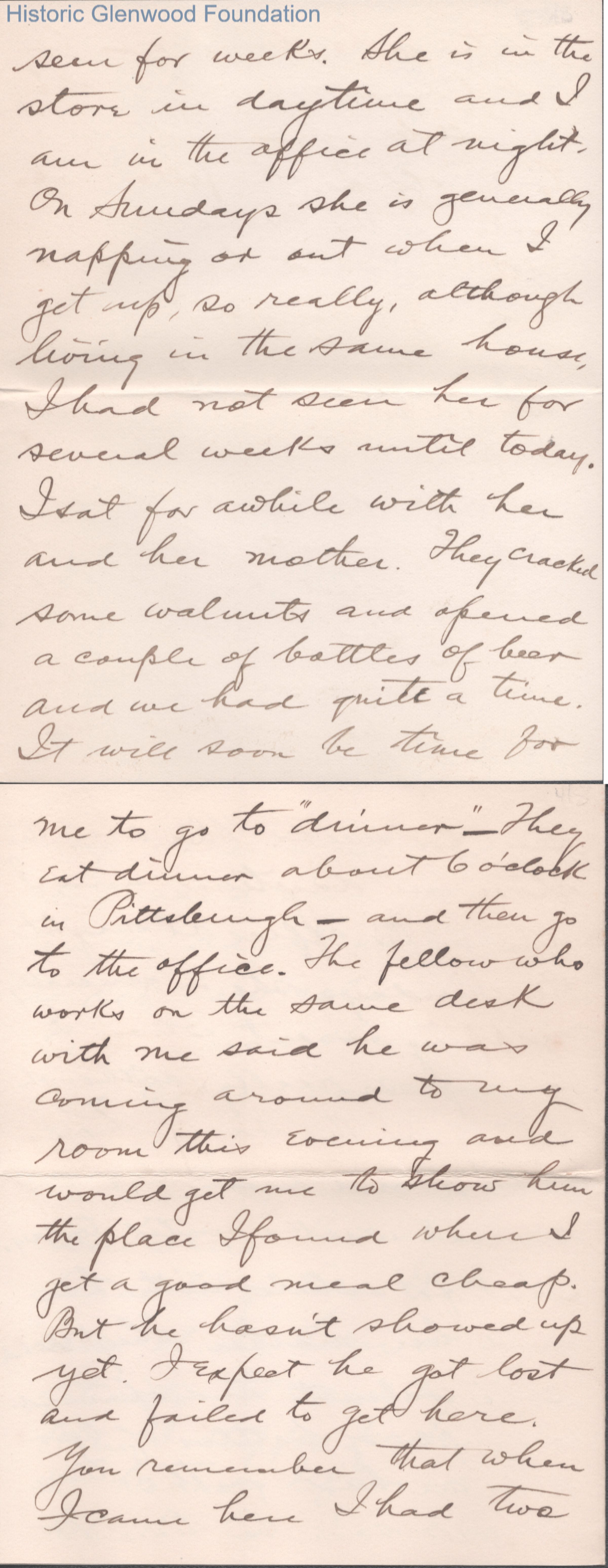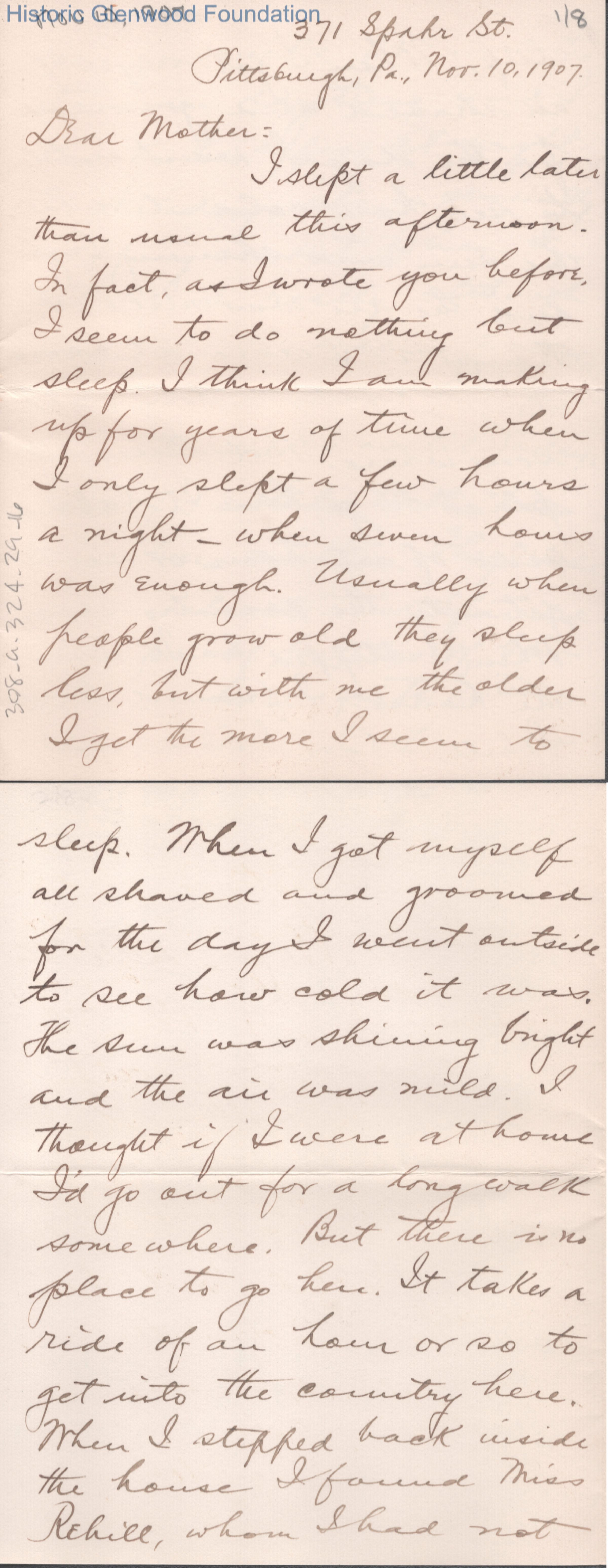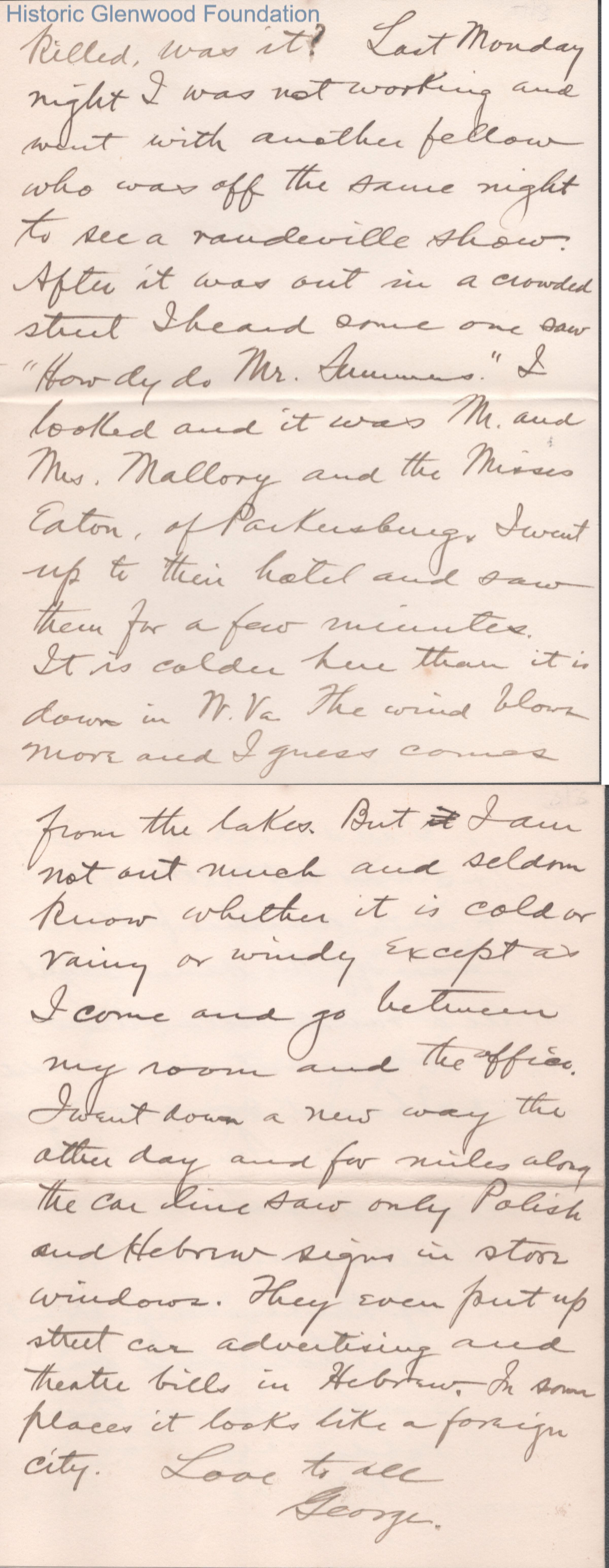 Eight-page letter to Lucy W. Summers from her son George W. Summers, Nov 10, 1907.