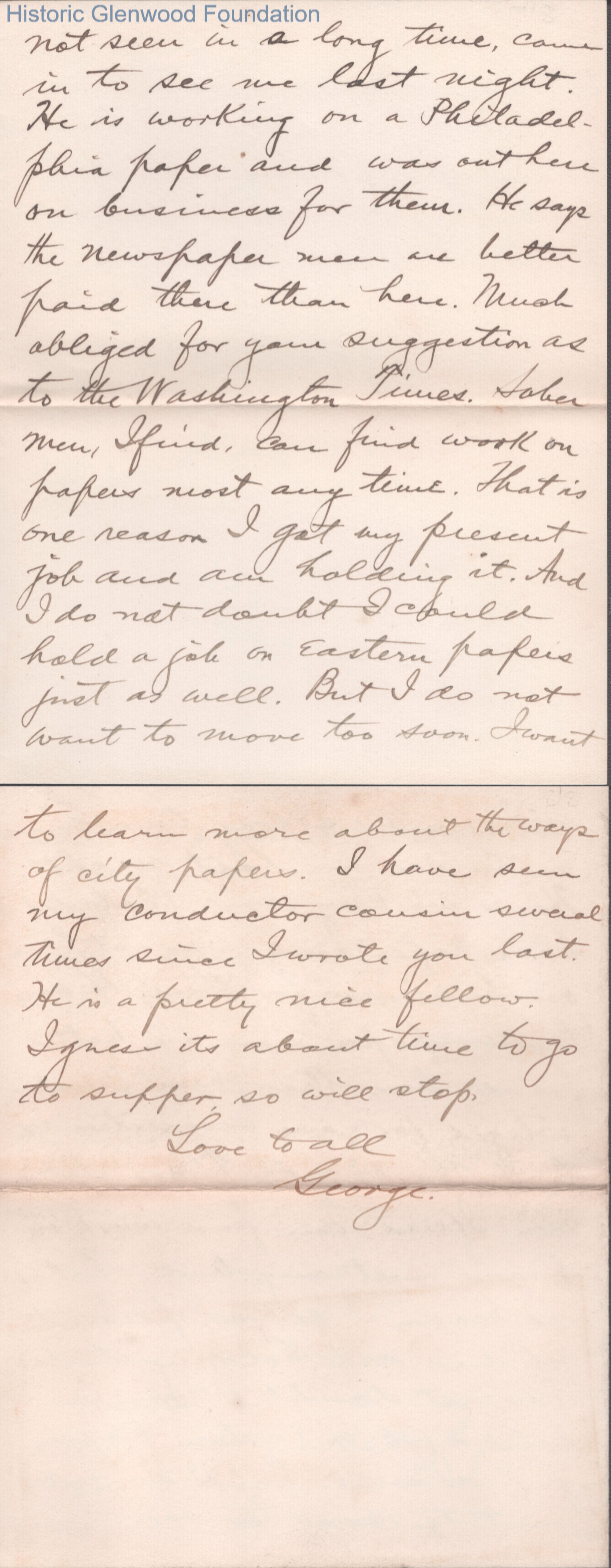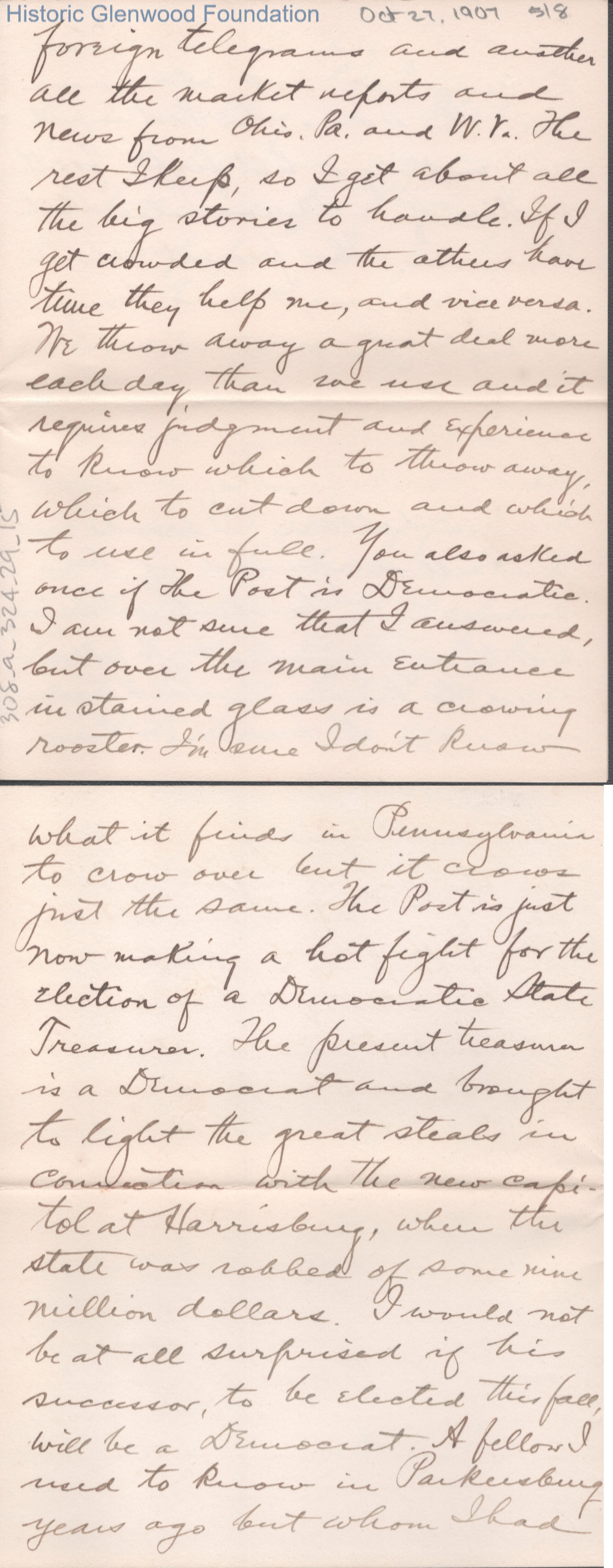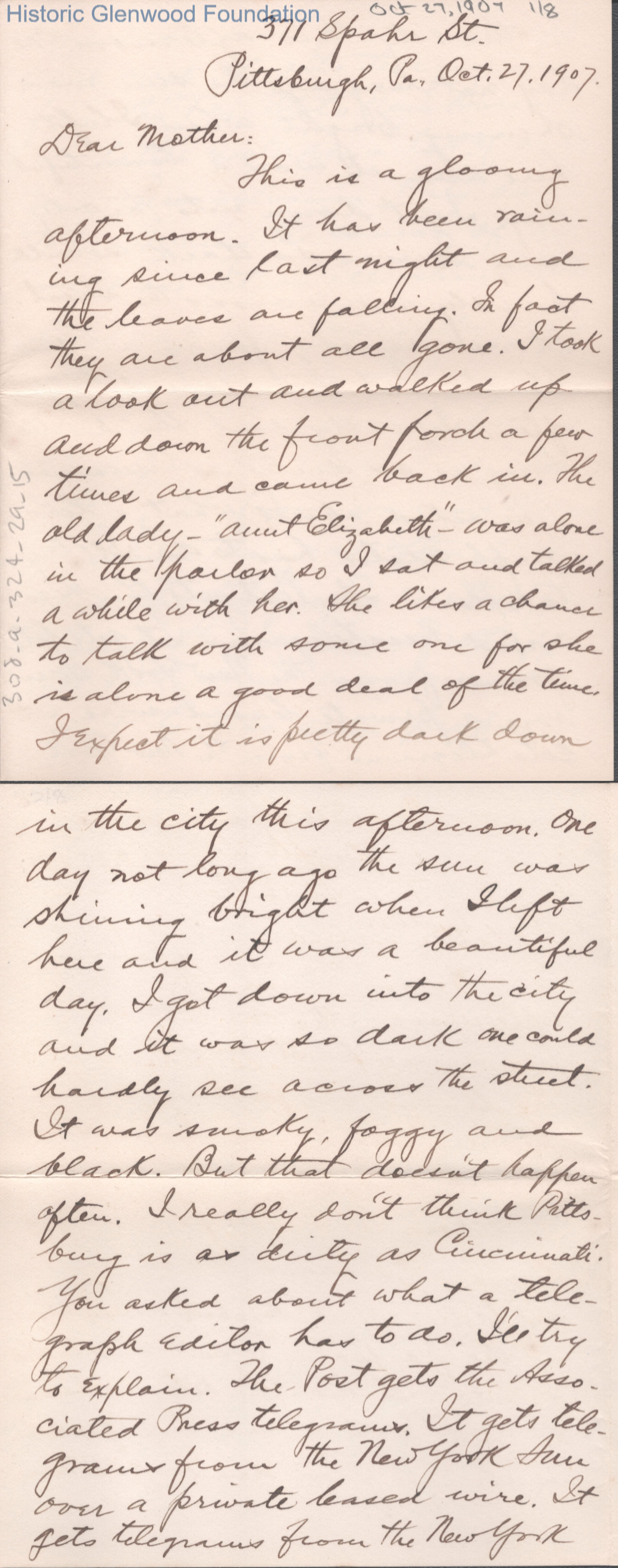 Eight-page letter to Lucy W. Summers from her son George W. Summers, Oct 27, 1907.