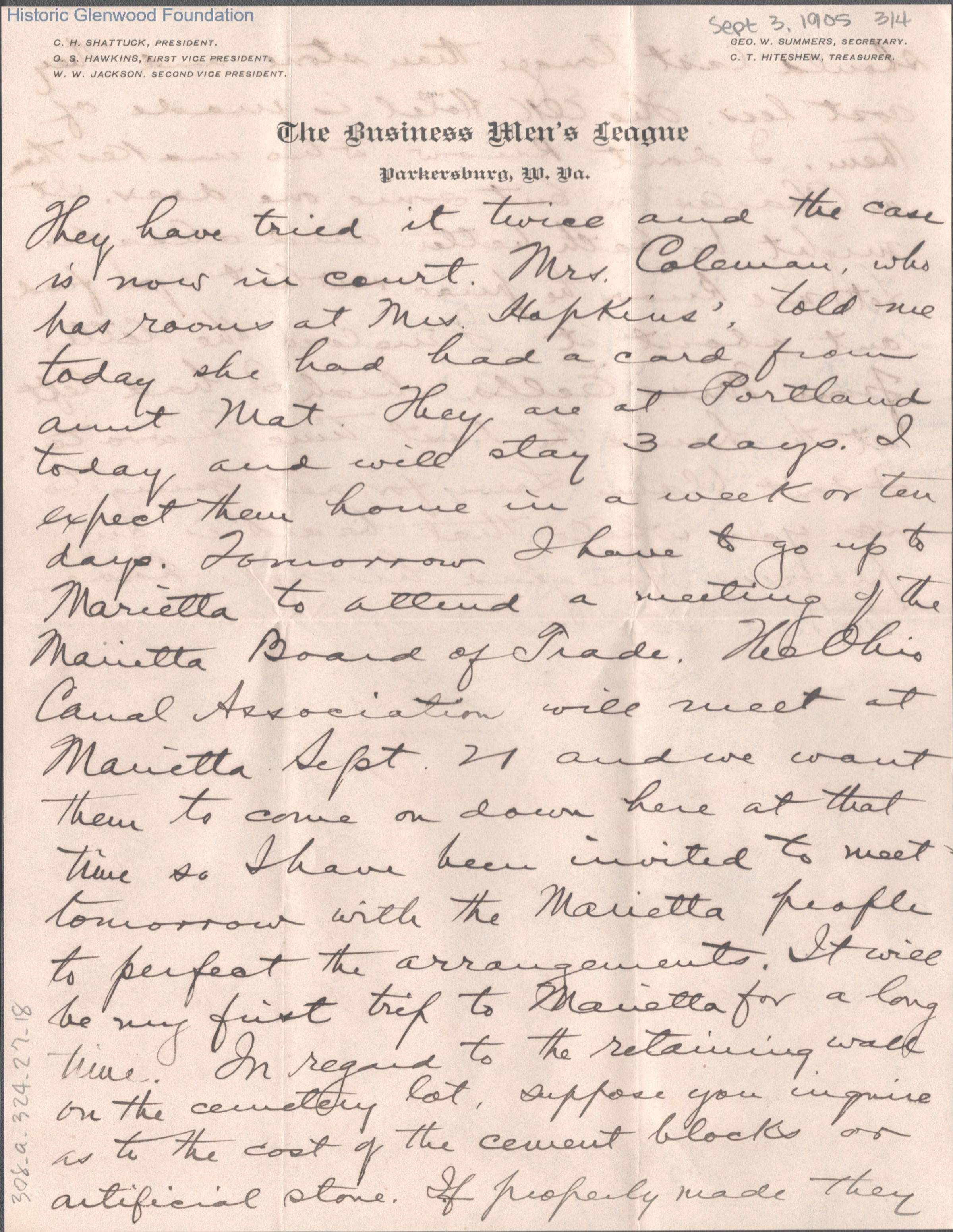 Lucy W. Summers from George W. Summers, Sep 3, 1905