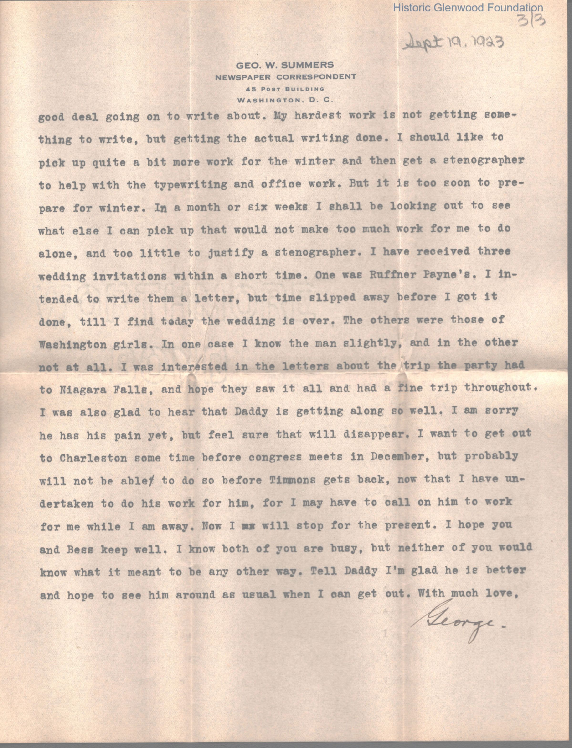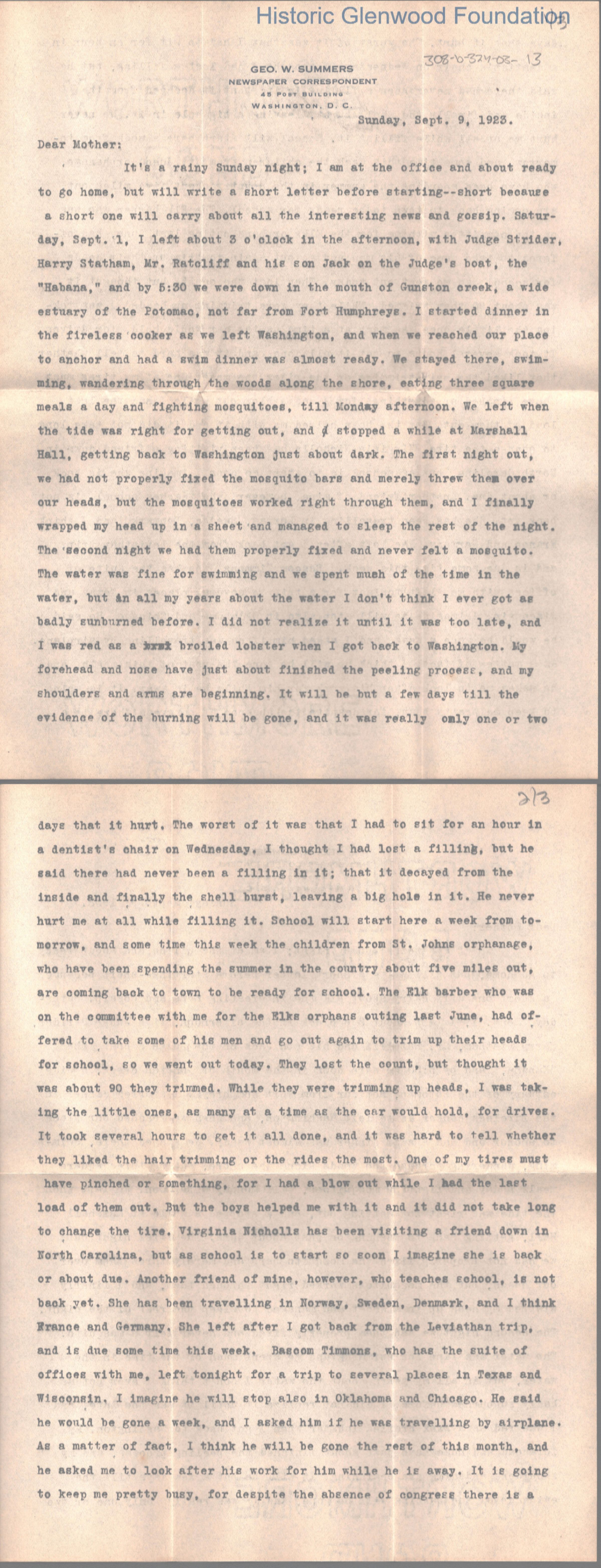 Lucy W. Summers from George W. Summers, September 9, 1923Entry/Object ID